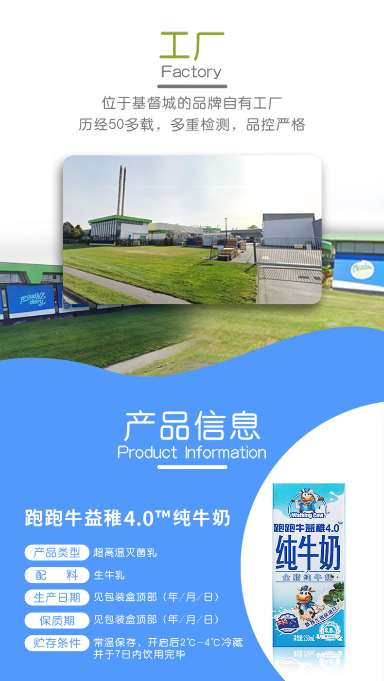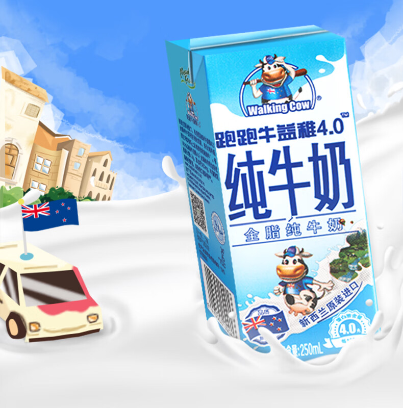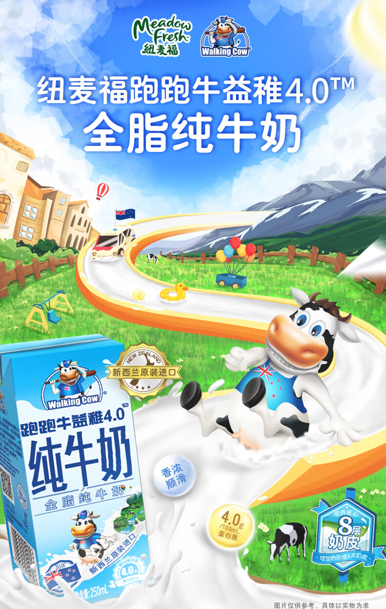 纽麦福(Meadow fresh)新西兰进口牛奶跑跑牛益稚4.0g蛋白全脂牛奶高钙儿童奶250ml*24盒