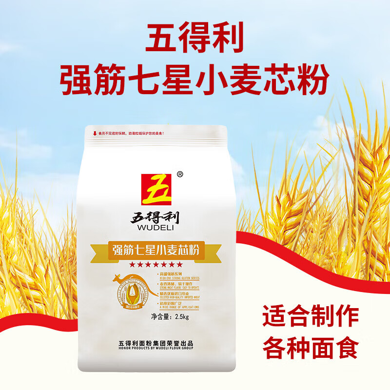 五得利强筋七星小麦粉5斤 家用烘焙通用优质面粉