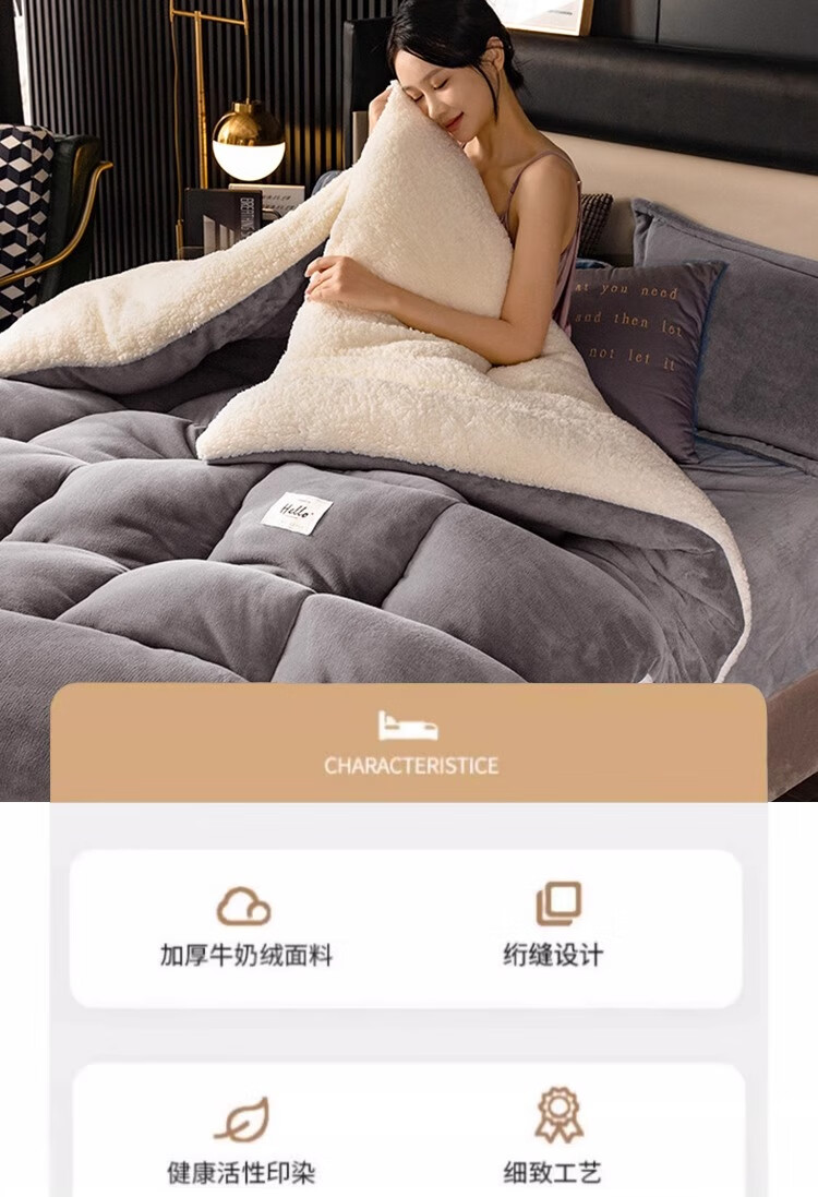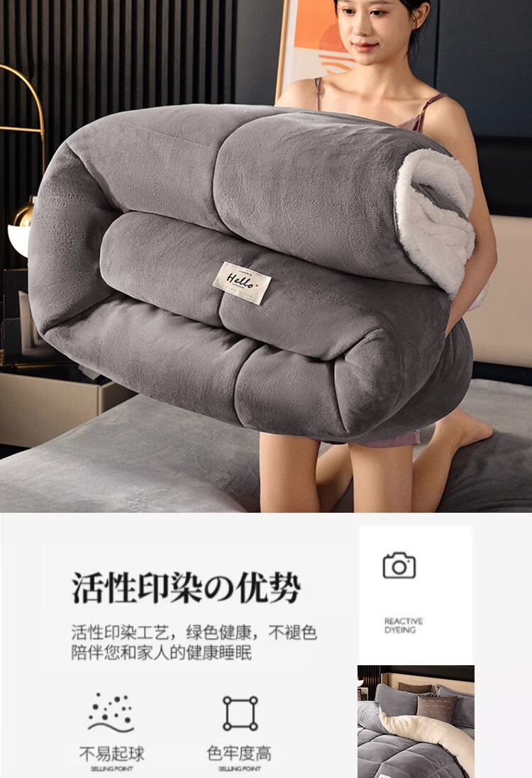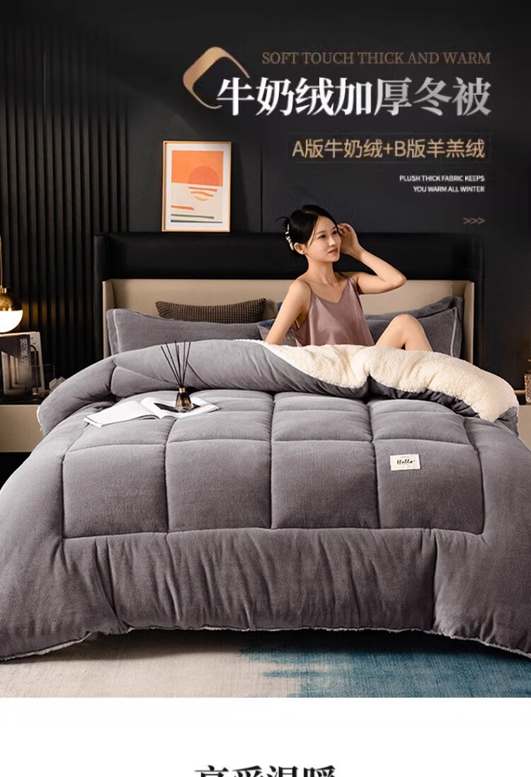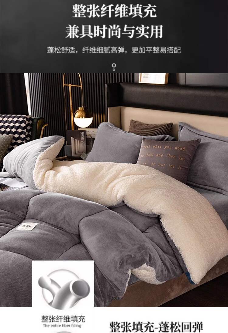 羊羔绒被子冬被棉被被芯牛奶绒加厚保暖冬天宿舍单人学生冬季被褥 灰色 1.5*2.0米-约6斤