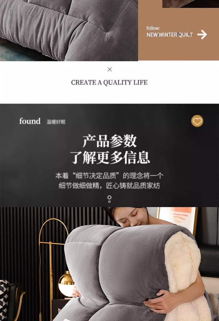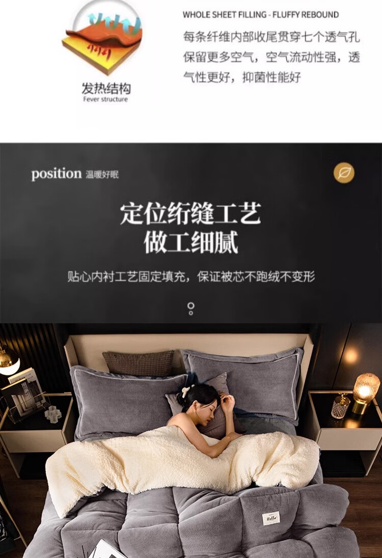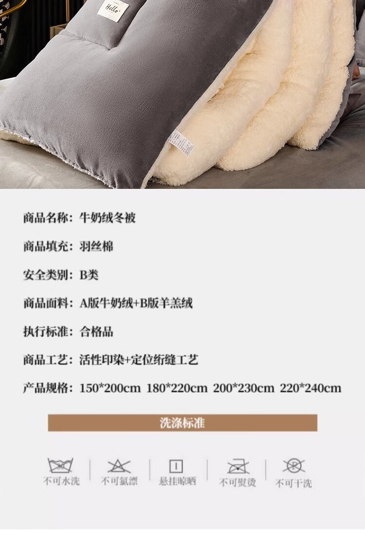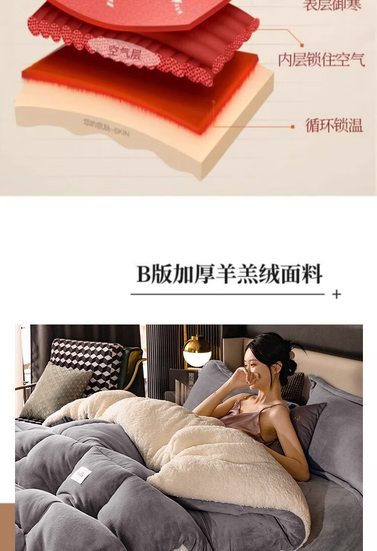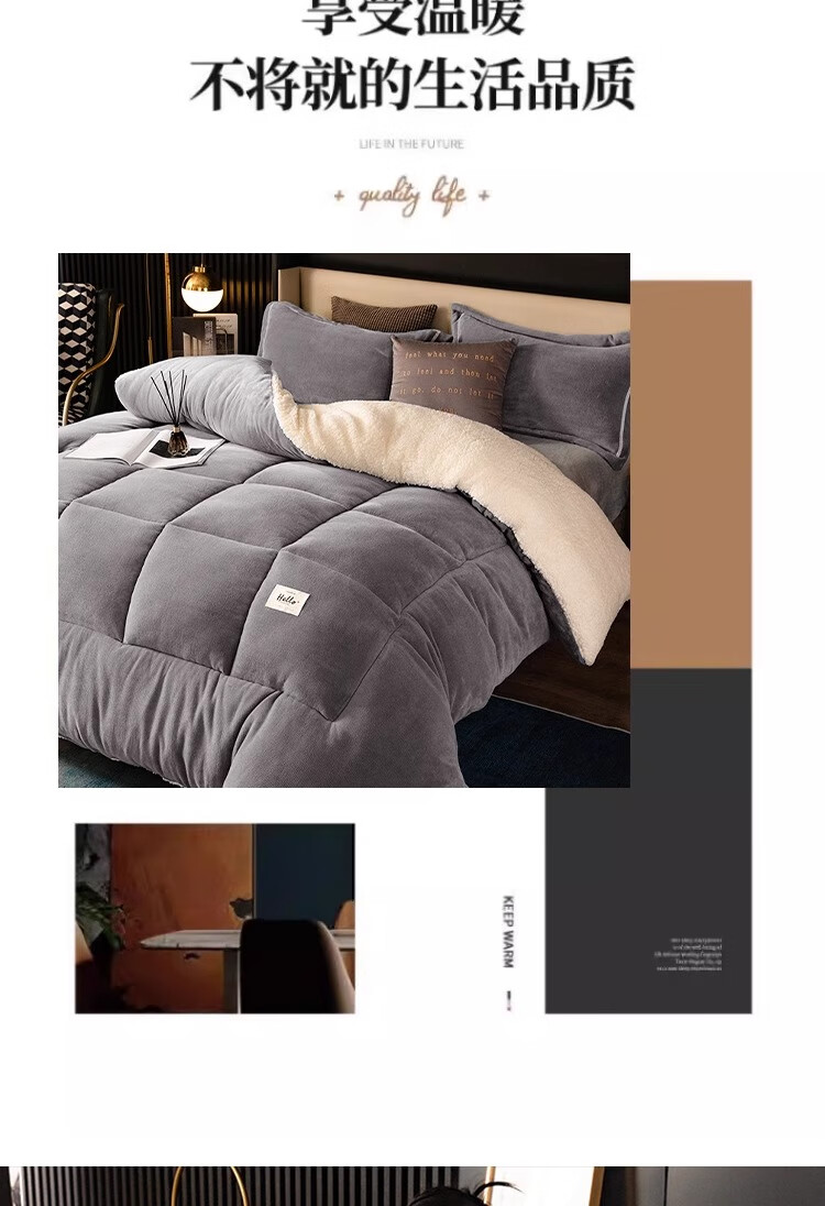羊羔绒被子冬被棉被被芯牛奶绒加厚保暖冬天宿舍单人学生冬季被褥 灰色 1.5*2.0米-约6斤