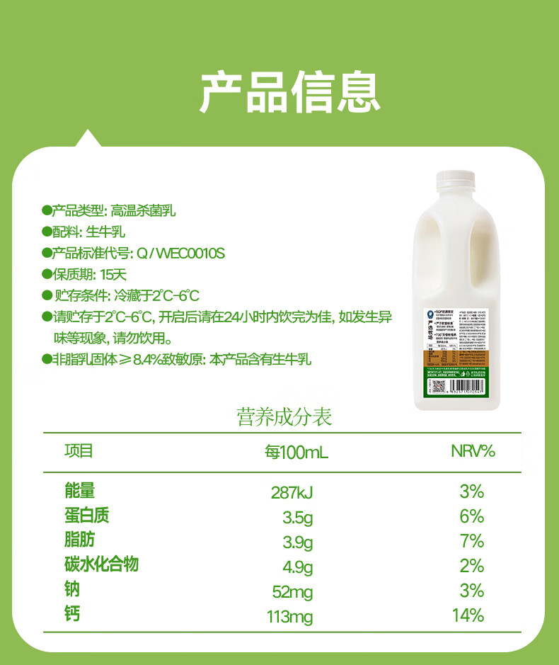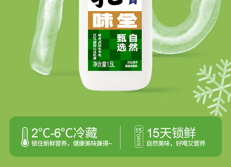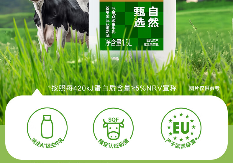 味全 严选牧场牛乳鲜牛奶 1.5L 低温奶早餐奶高品质鲜奶【SQF认证】