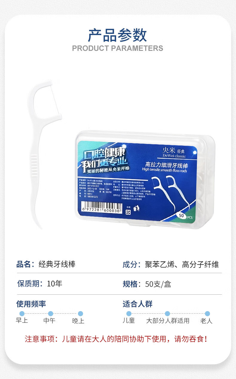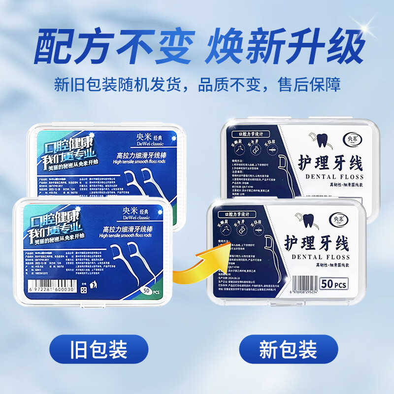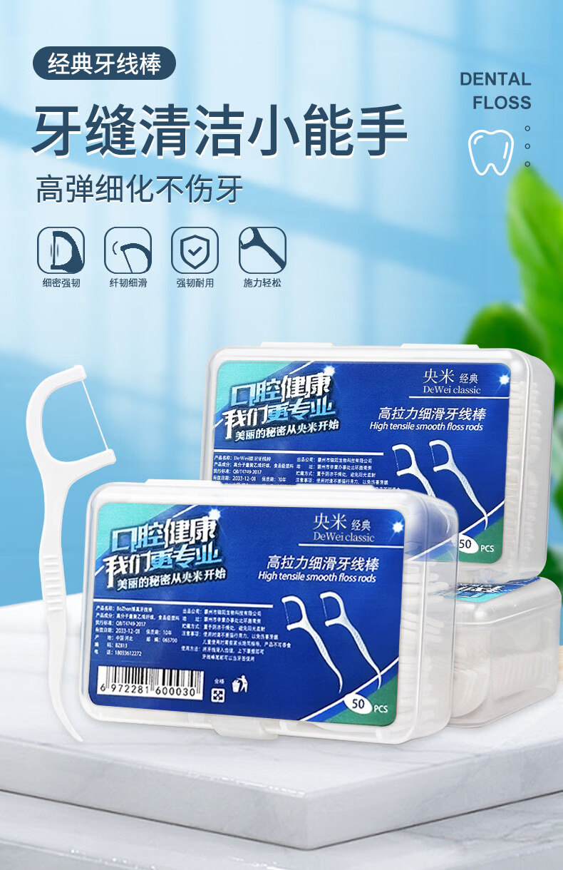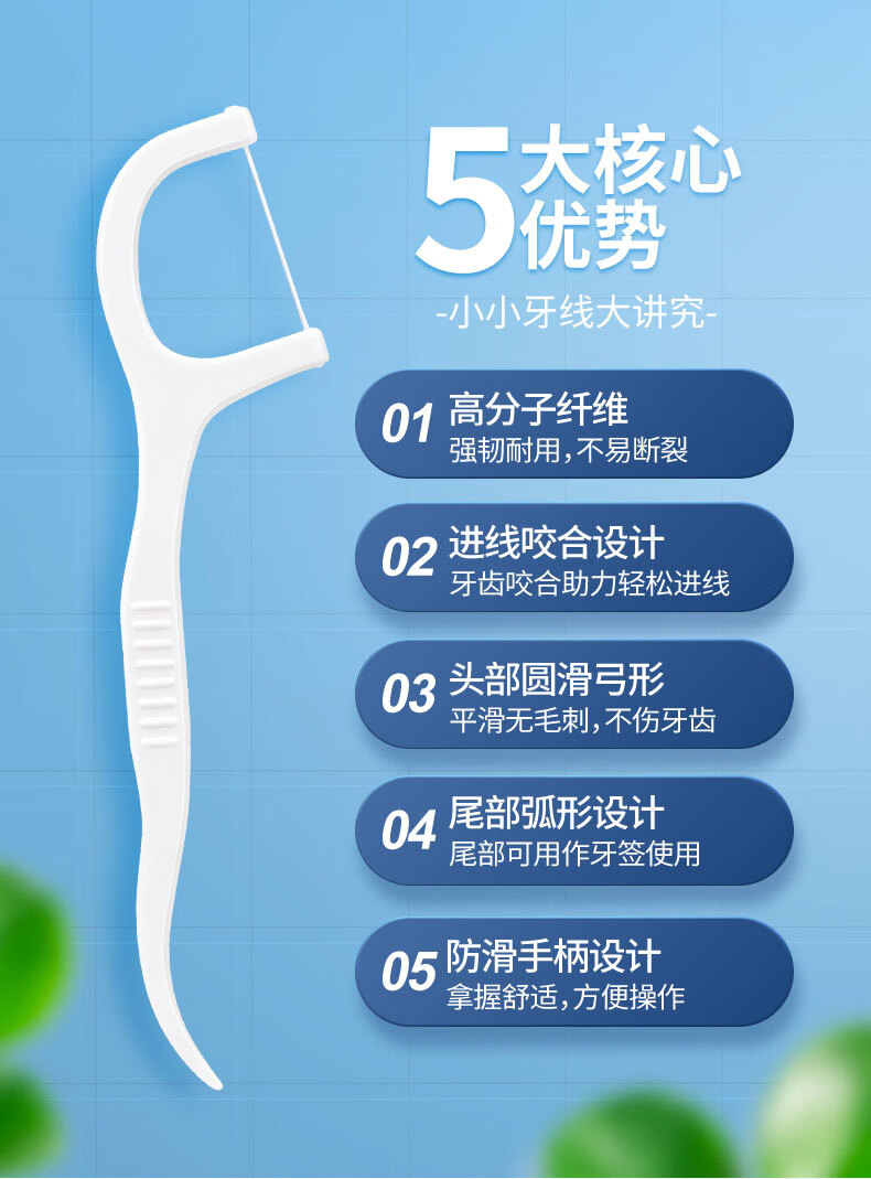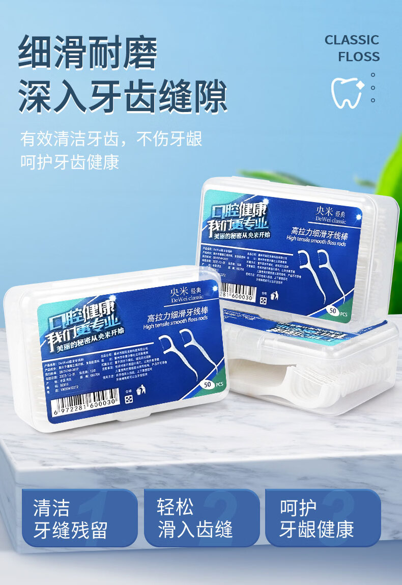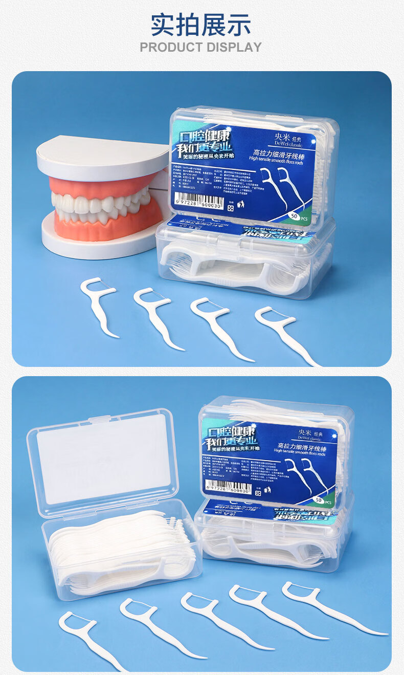 央米牙线棒超细耐磨成人牙签便携清洁牙垢剔牙家庭盒装口腔护理 【250支】国民牙线棒共5盒