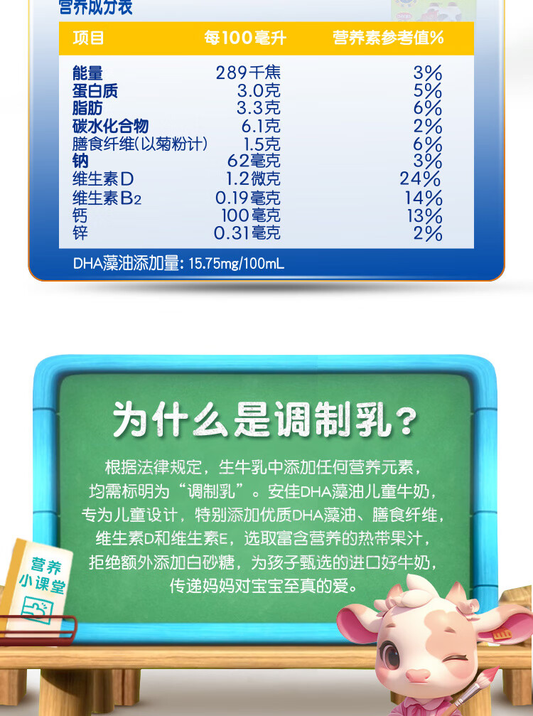 安佳(Anchor)儿童牛奶 190ml*27盒 新西兰原装进口草饲 DHA藻油+益生元