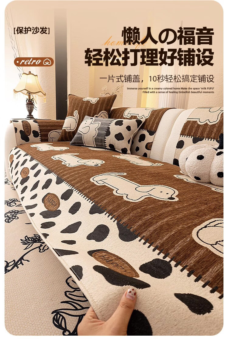 金拾美月卡通雪尼尔四季通用沙发垫2025新款加厚防滑直排套罩靠背盖布巾 快乐腊肠狗-咖色 90cm*90cm