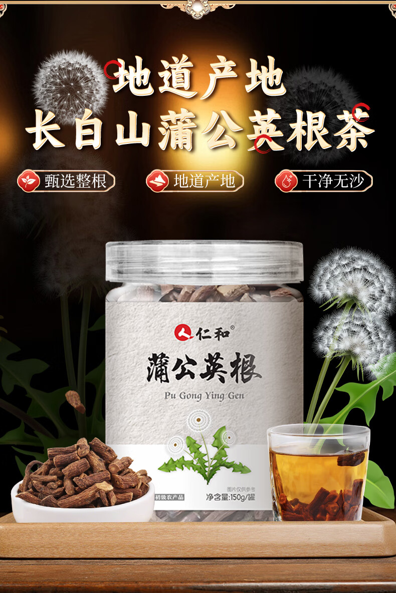 仁和蒲公英根茶野生150g天然蒲公英整根正品新茶干蒲公英茶大根 蒲公英根-1罐【精品】
