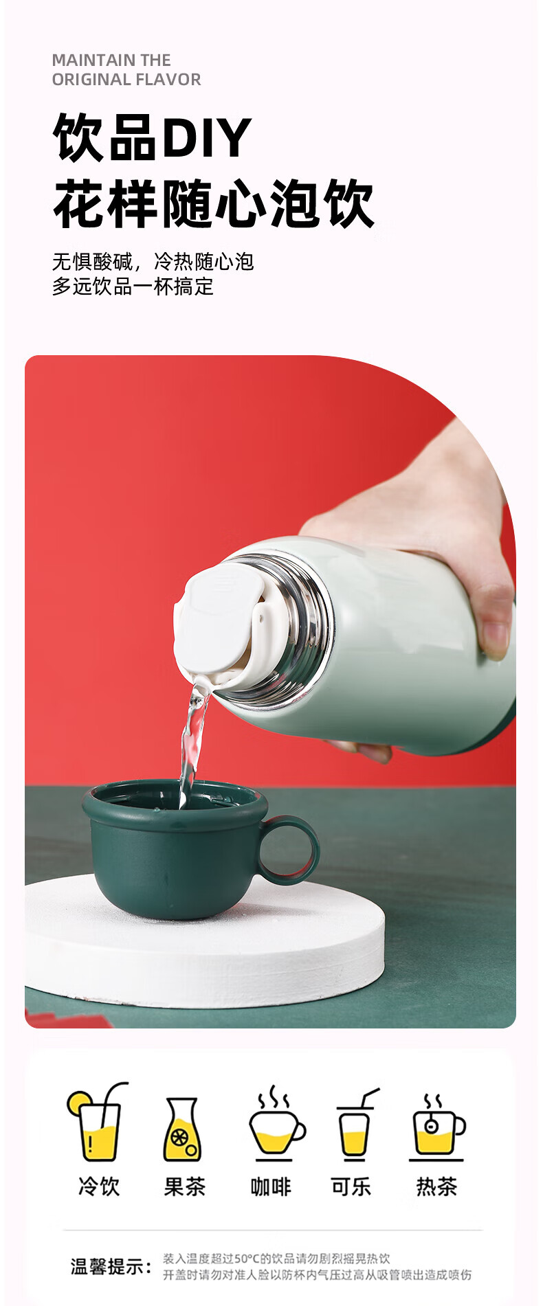 藤和树里保温杯水杯保温杯男款保温杯大容量杯子保温杯男士水杯保温杯 【粉渐绿】500ml