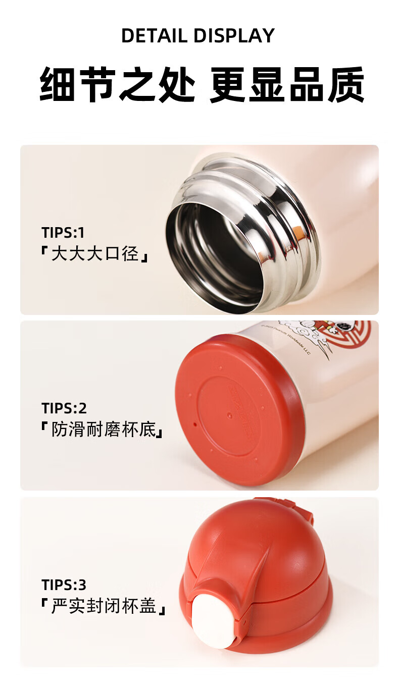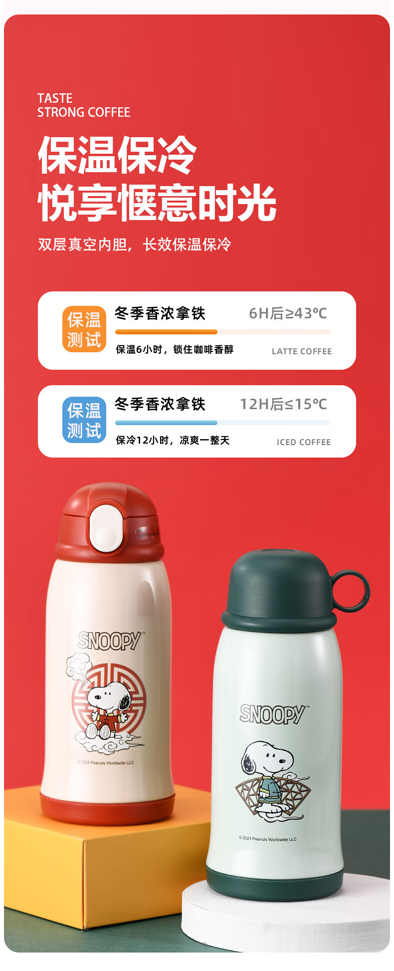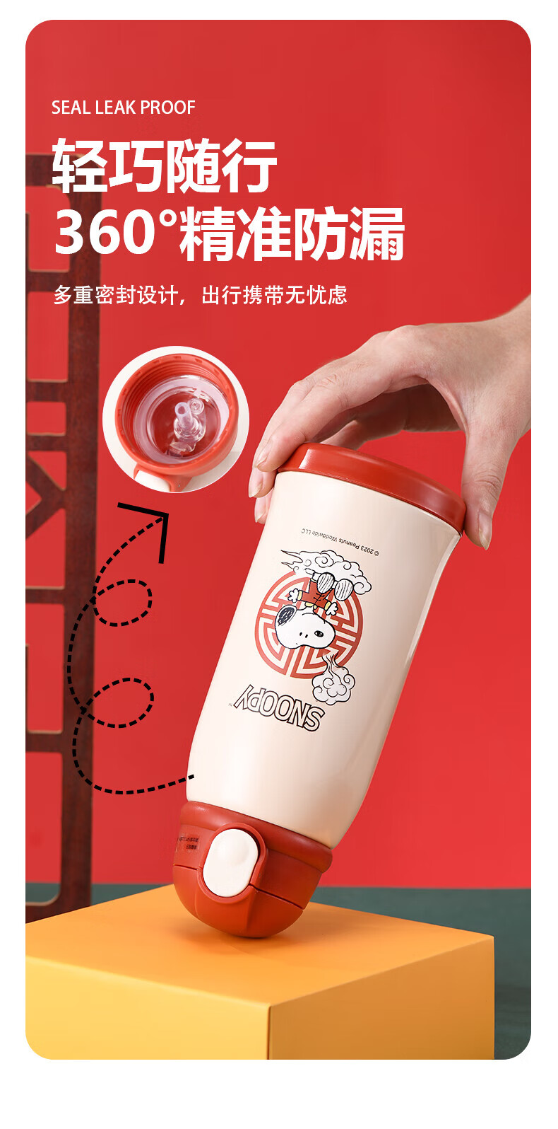 史努比儿童保温杯316不锈钢带吸管大容量水壶男女学生上学专用国潮水杯 蓝色-国潮【杯刷+吸管刷】