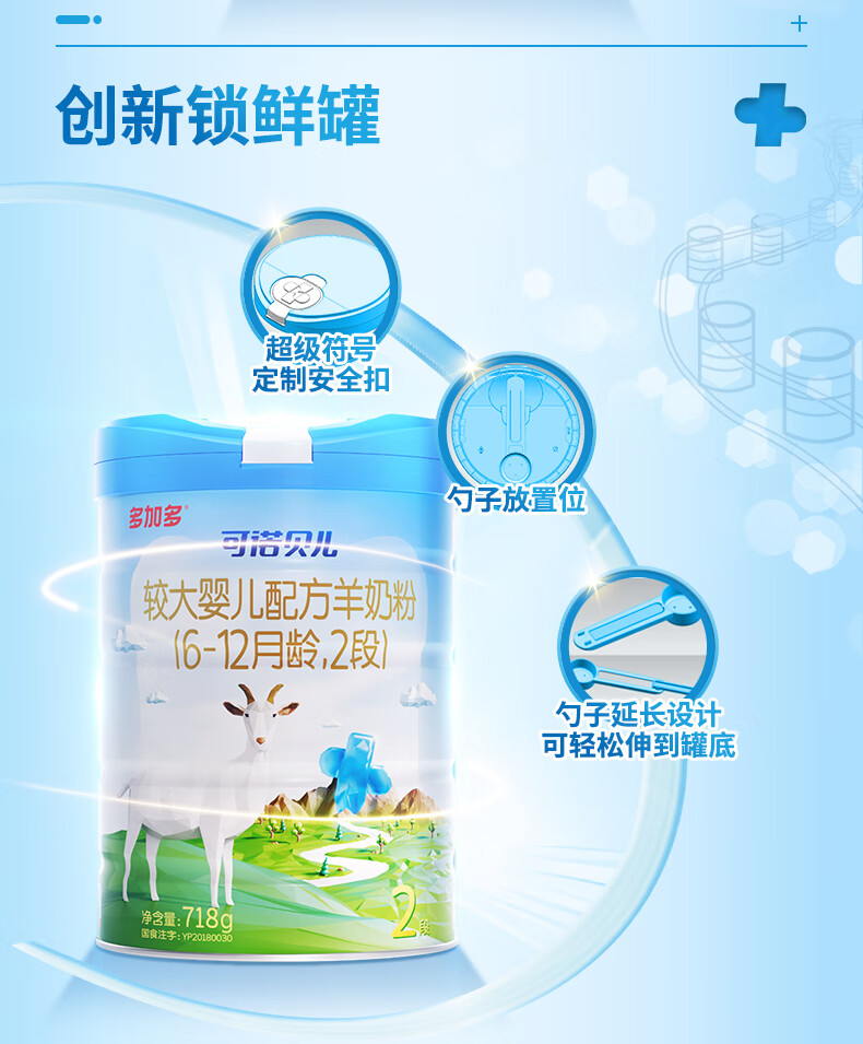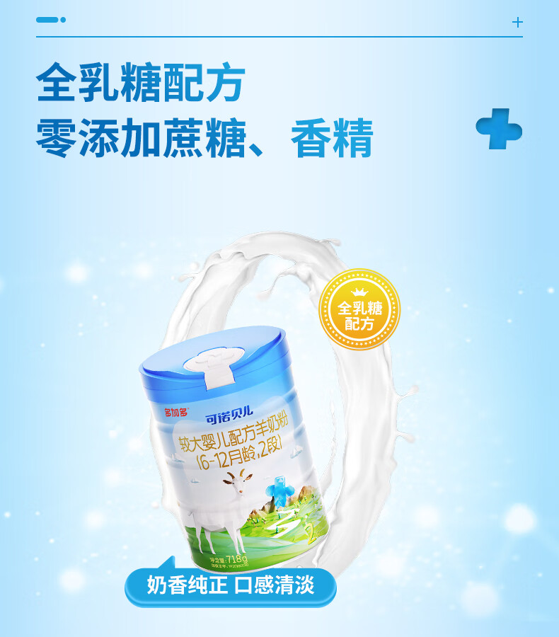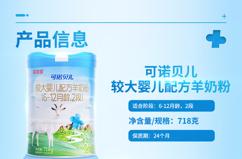 可诺贝儿多加多较大婴儿配方羊奶粉2段 6-12个月宝宝羊奶粉婴儿2段 718g 可诺2段718g*6