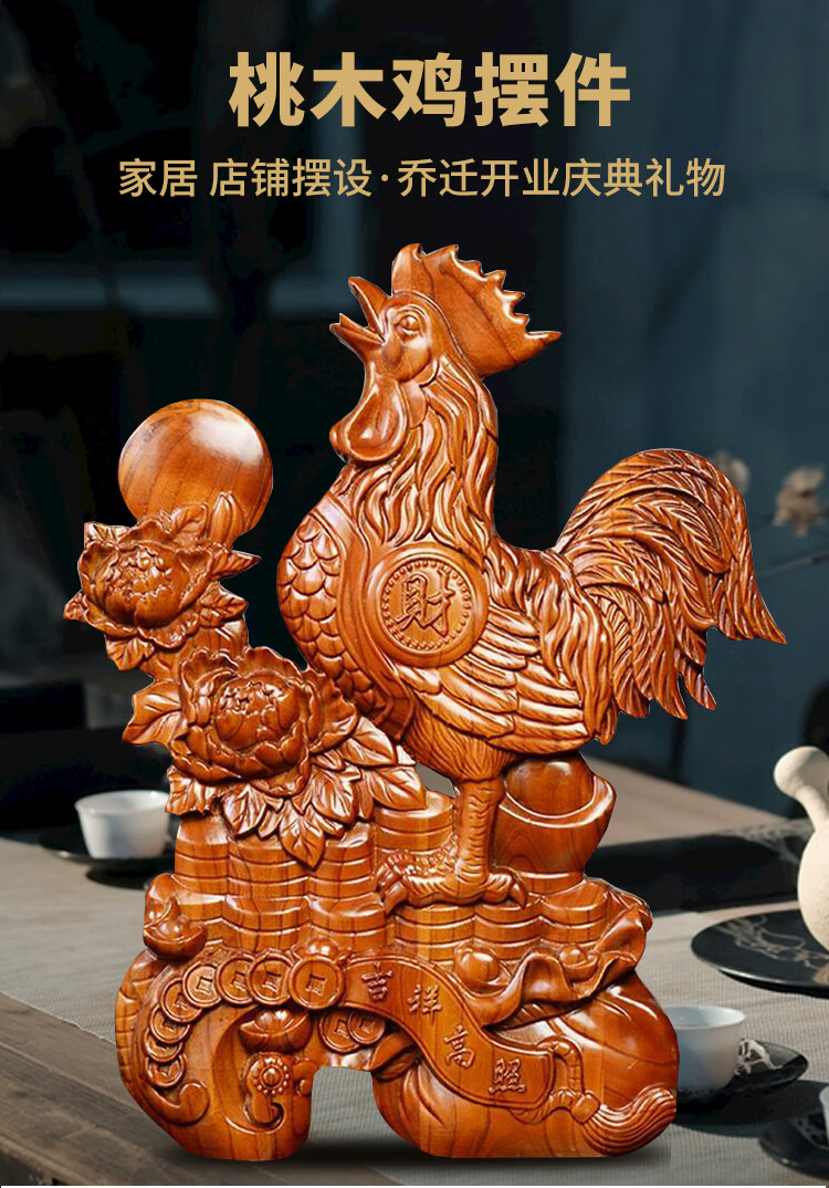 泰山桃木王(taishantaomuwang)肥城桃木鸡摆件浮雕刻山东非遗产品送礼盒装家居中华老字号 一马当先(桃木马)