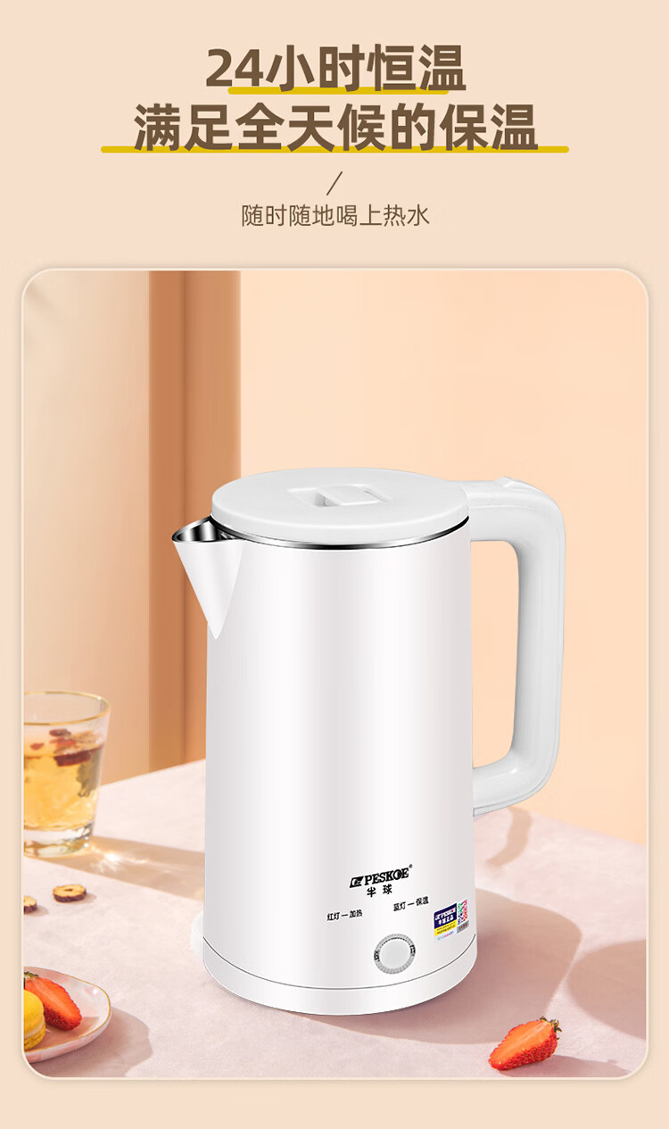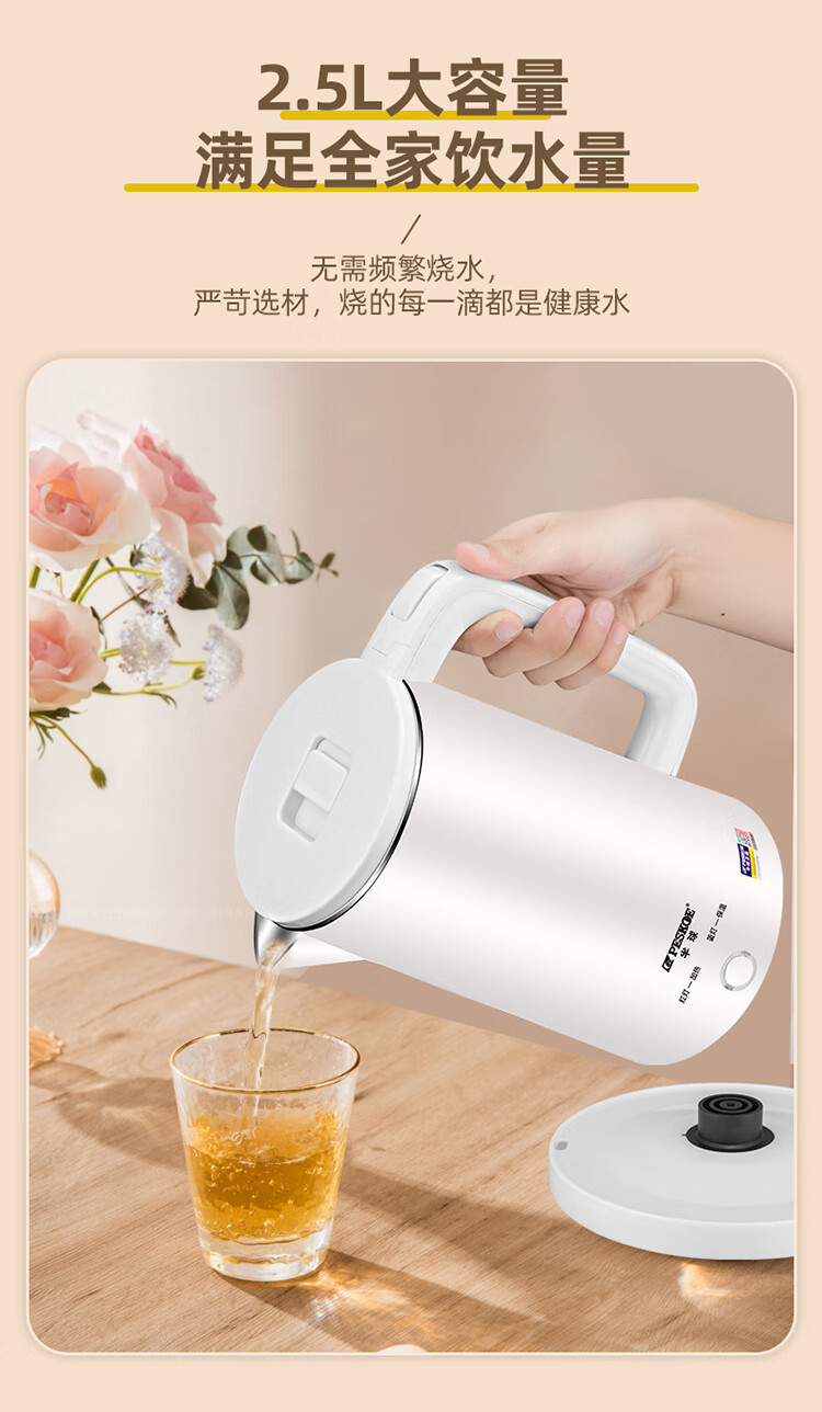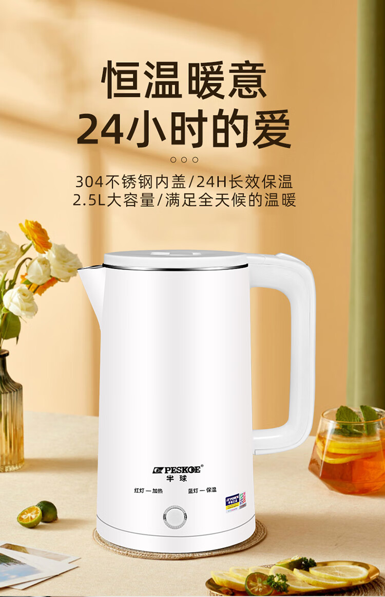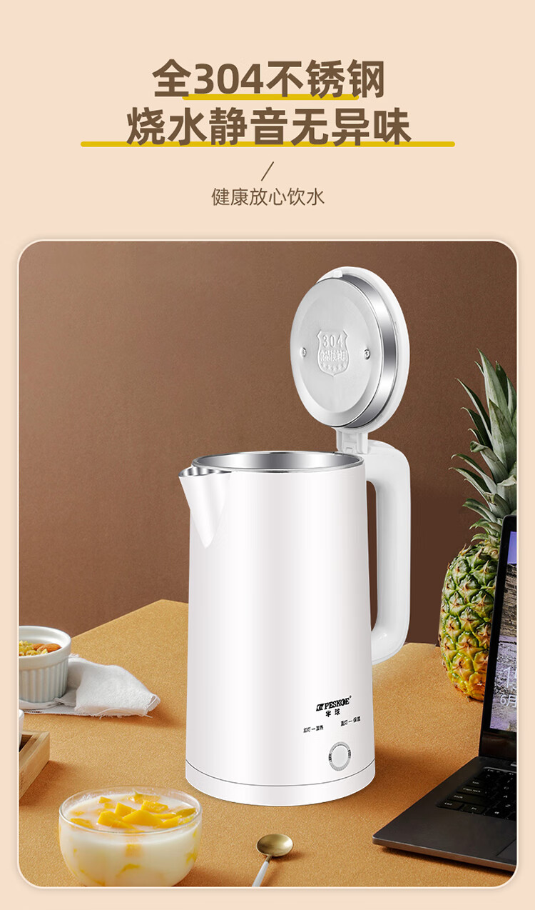半球【甄选百货】半球电热水壶多功能智能保温一体热水壶家用烧水壶2.5升大容量开水壶 2.5L 201不锈钢不保