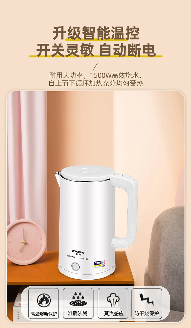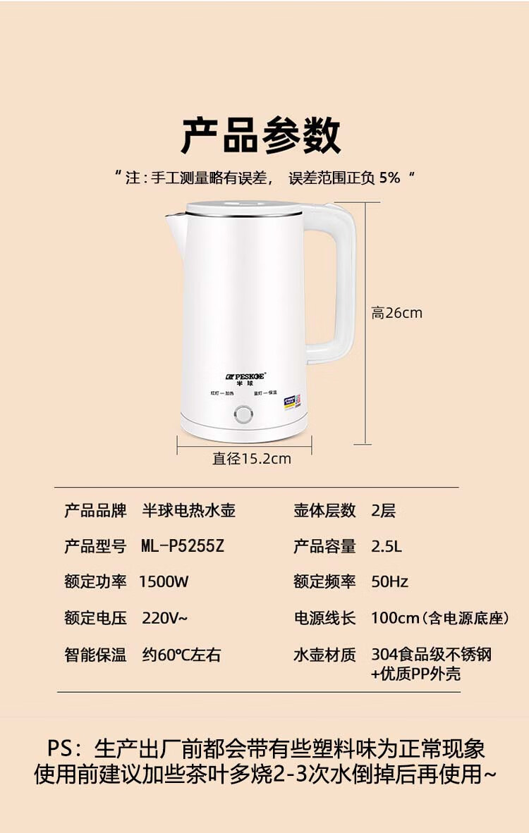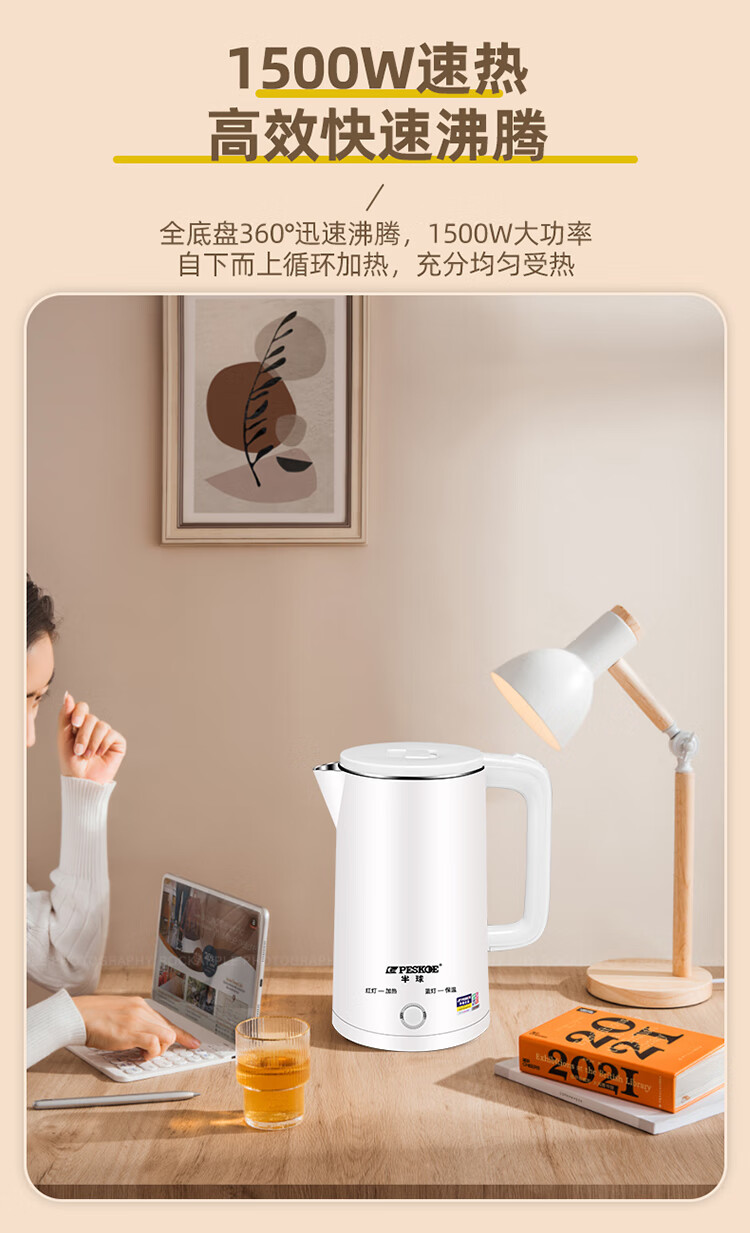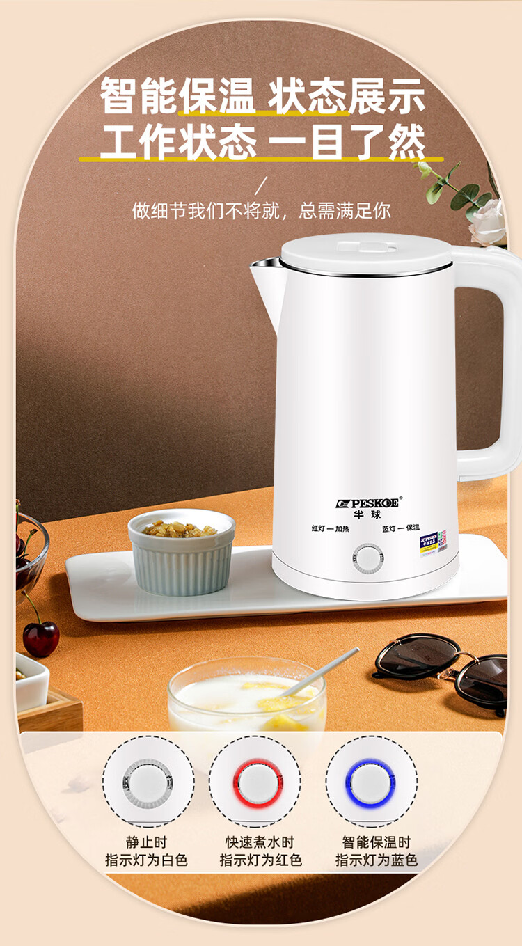 半球【甄选百货】半球电热水壶多功能智能保温一体热水壶家用烧水壶2.5升大容量开水壶 2.5L 201不锈钢不保