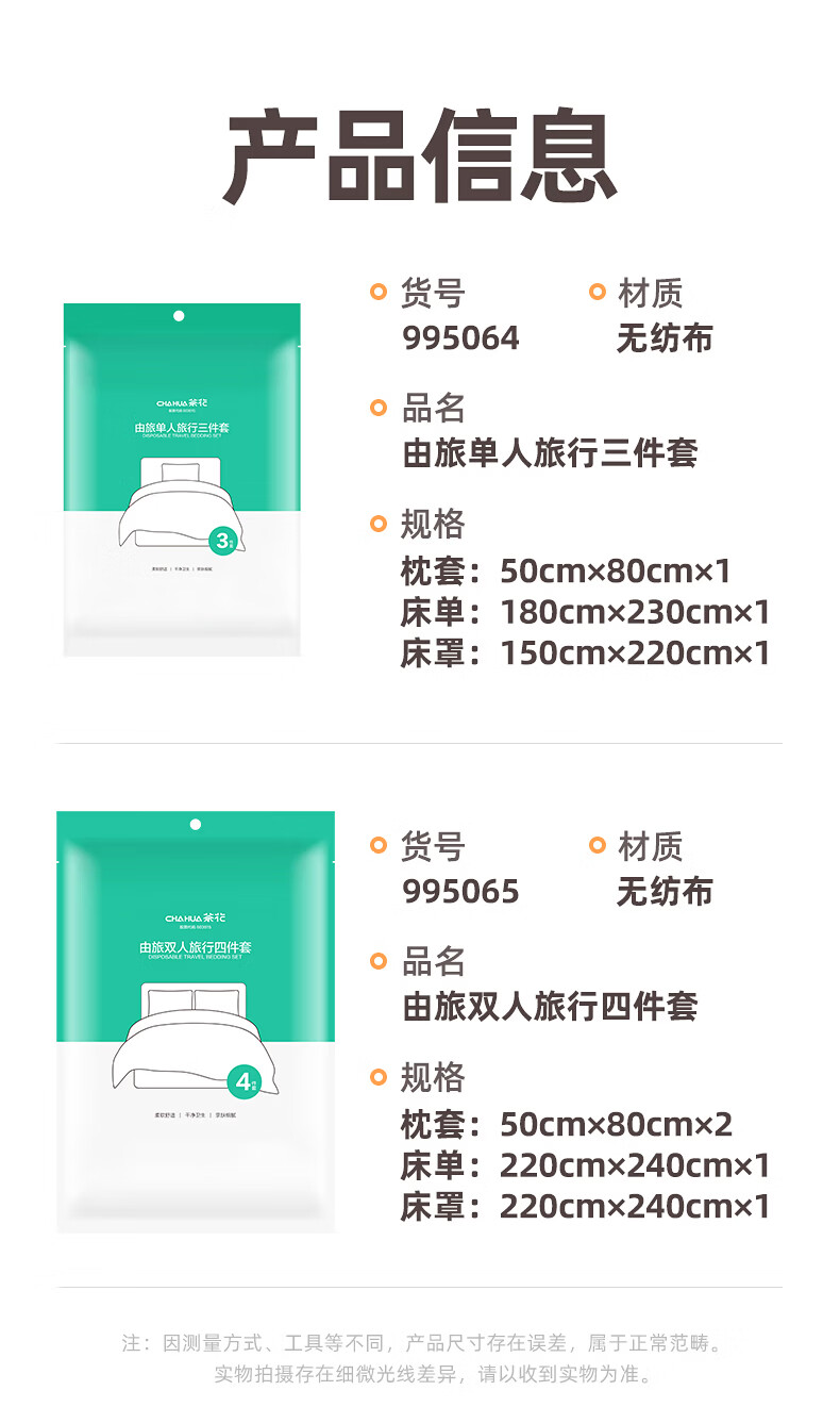 茶花(CHAHUA)旅行一次性床单四件套被罩枕套床单便携酒店床上用品隔脏防尘 四件套【枕套*2+床单+床罩】