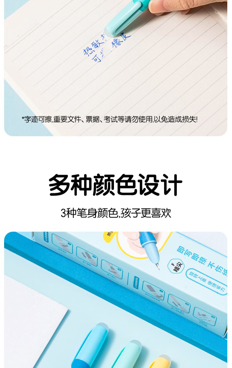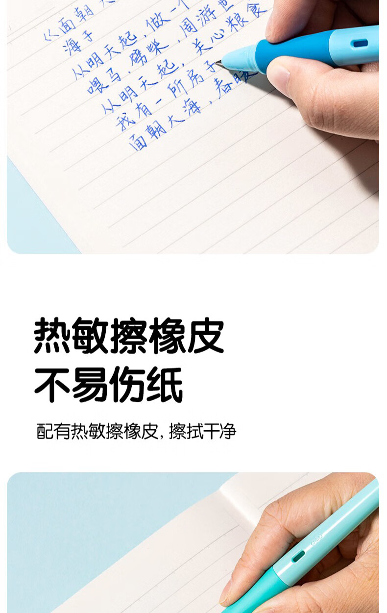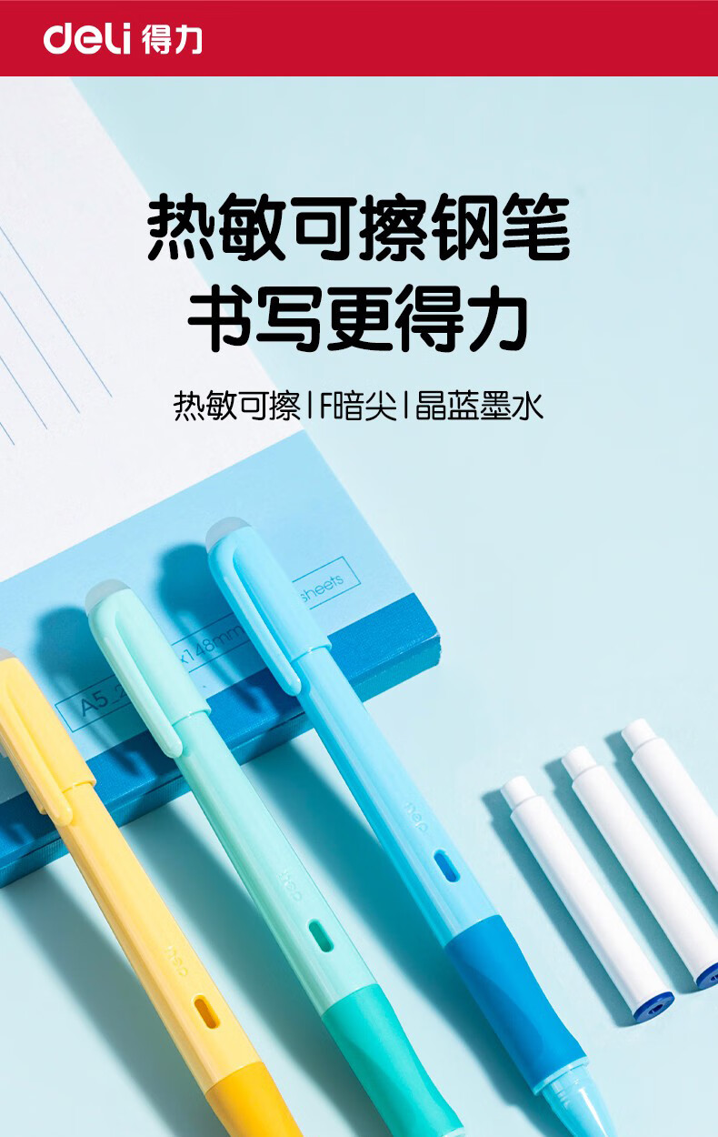 得力热可擦钢笔小学生三年级专用热敏可擦墨囊可替换儿童二三四年级上册初学者练字摩易擦橡皮擦的钢笔 【鸢尾蓝】2支笔