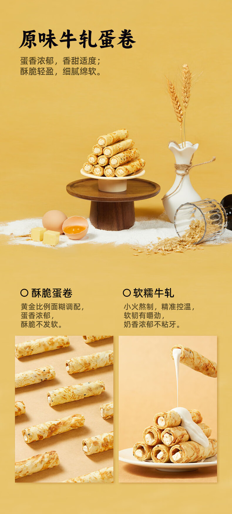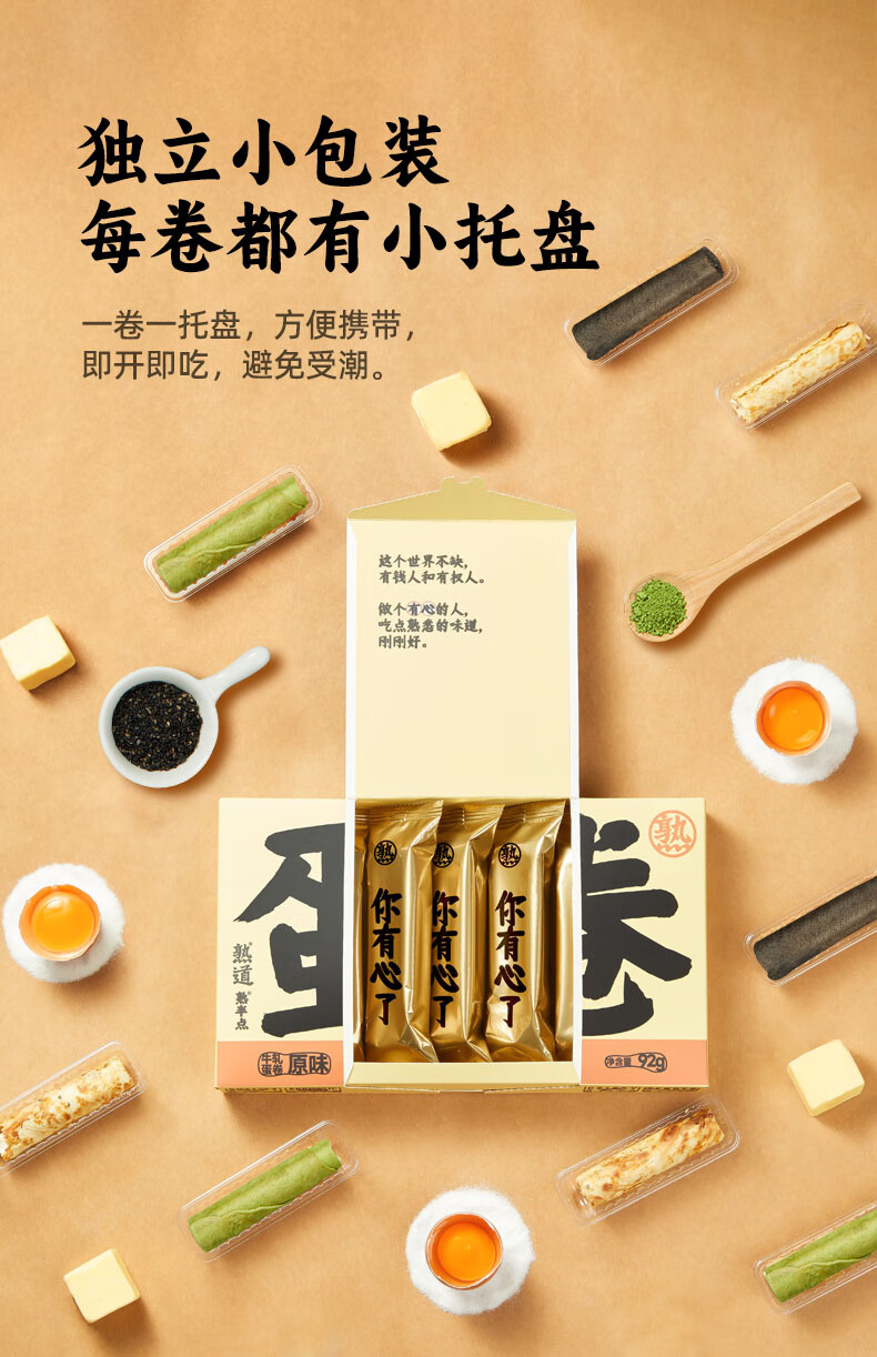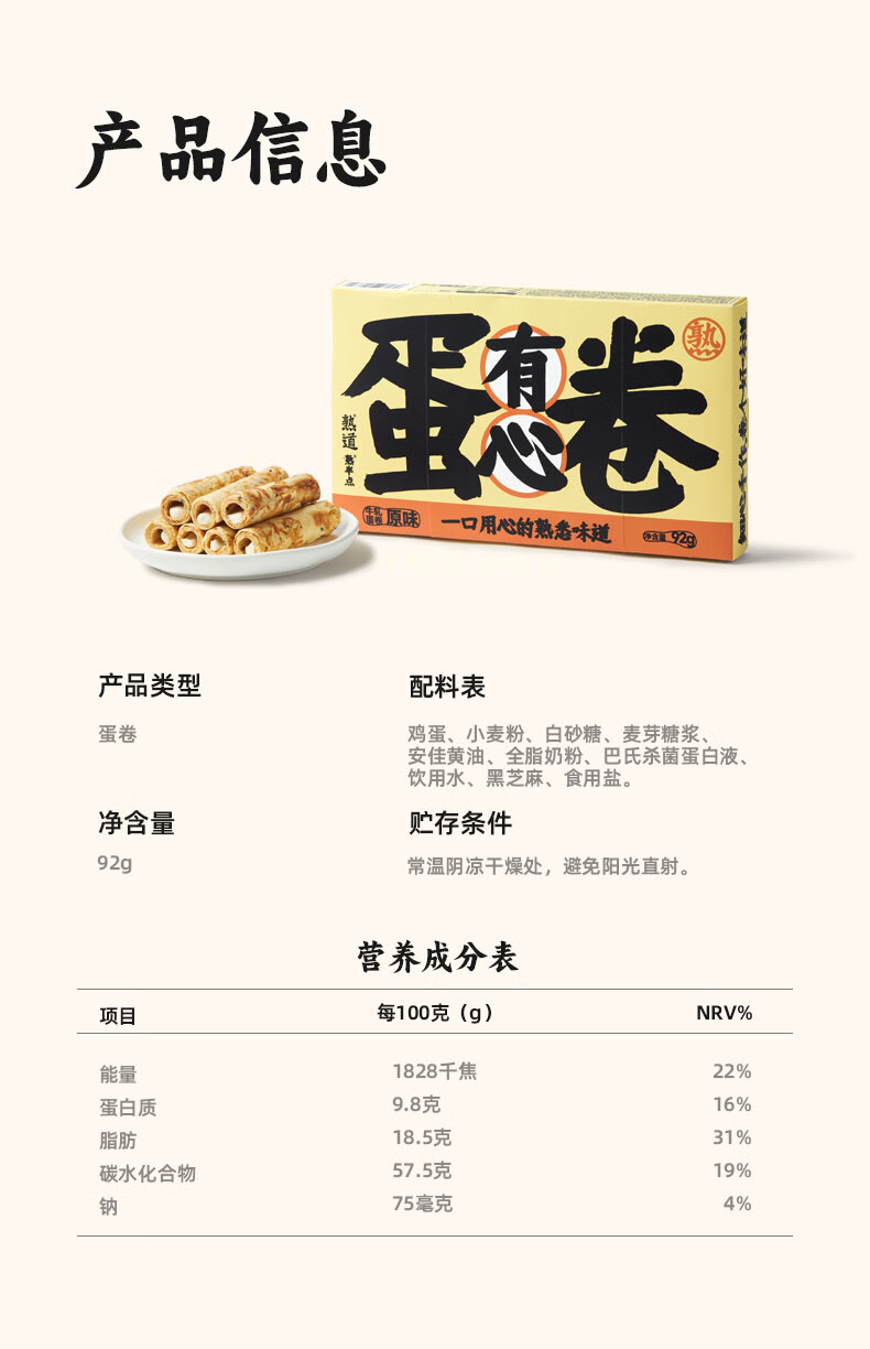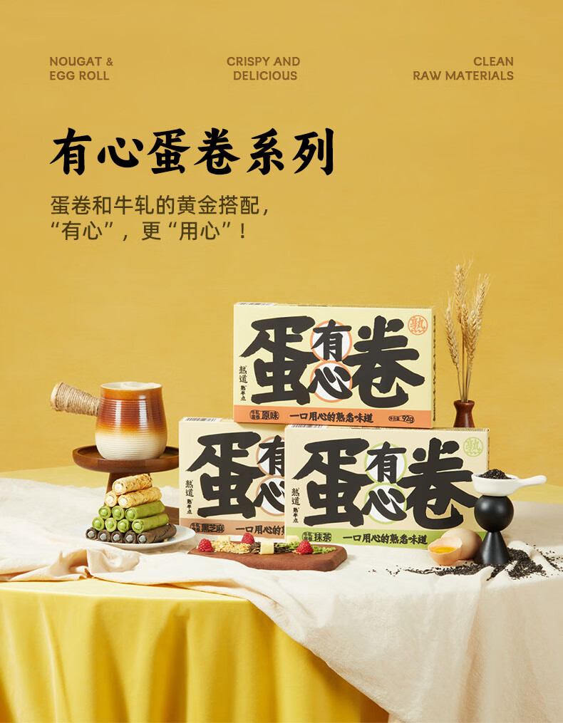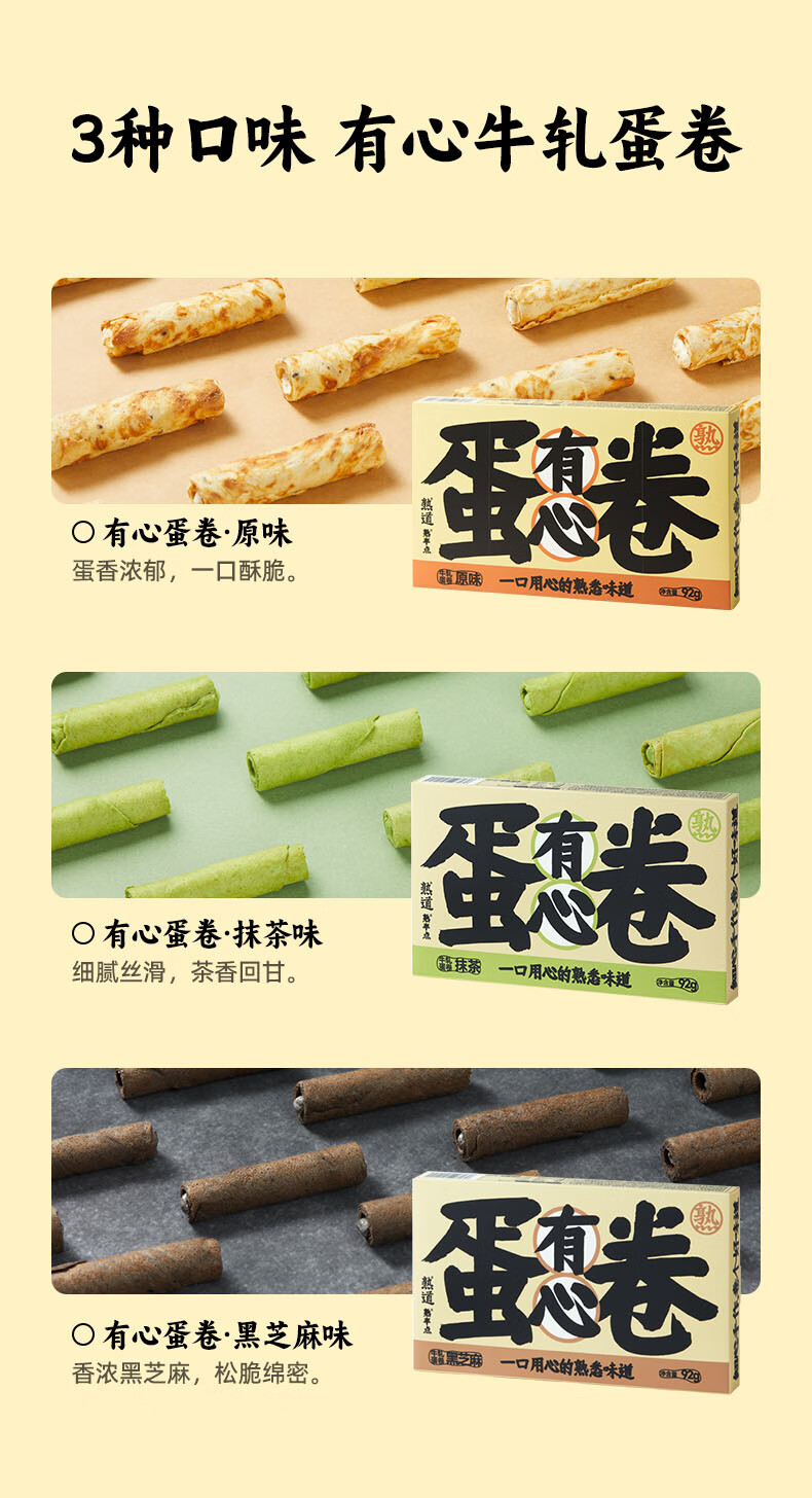 熟道牛轧注心鸡蛋卷酥3盒装营养早餐糕点网红零食 【原味】有心牛轧蛋卷92g*3盒