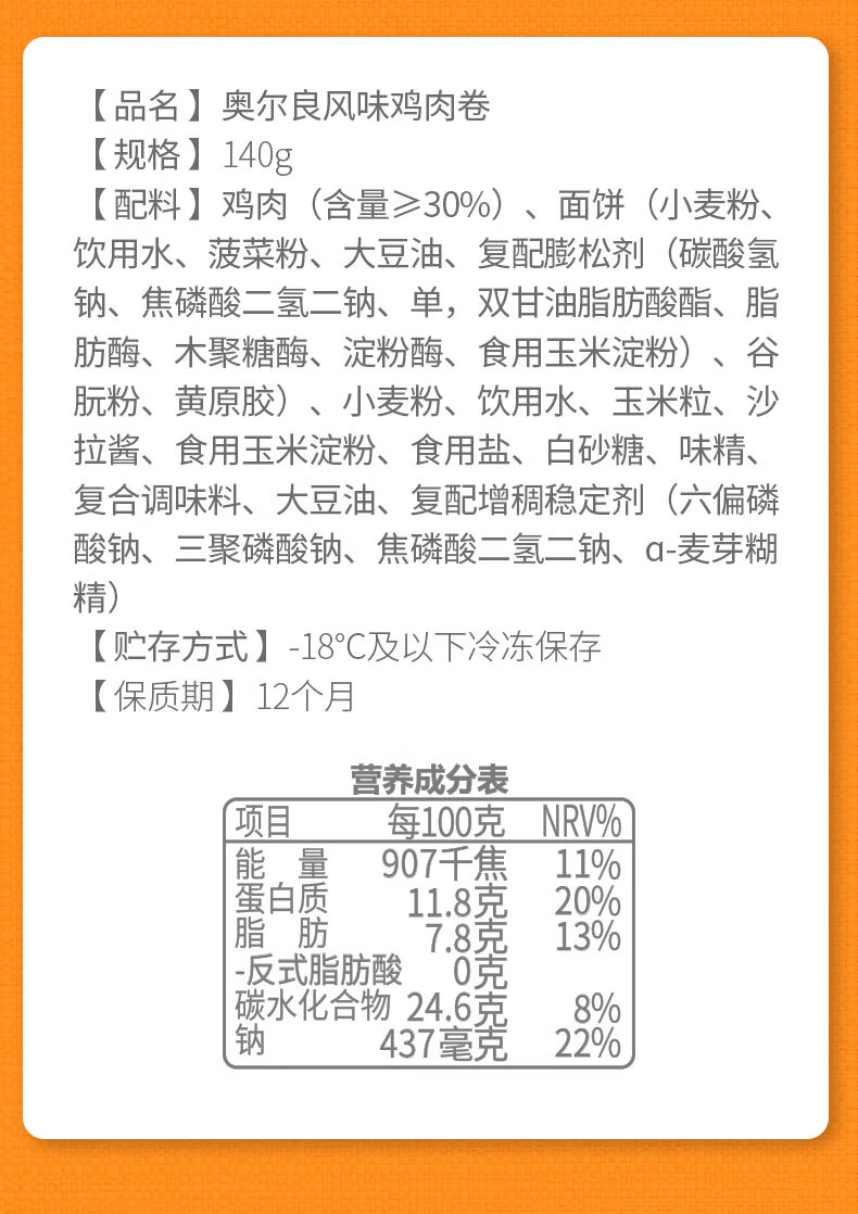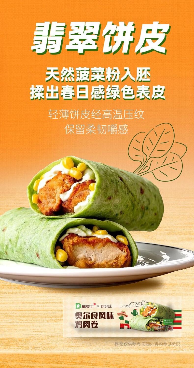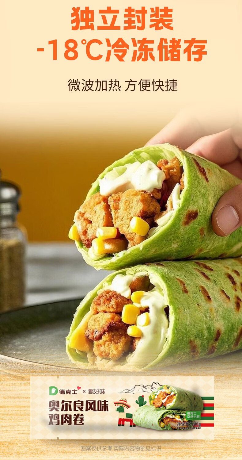 德克士奥尔良风味鸡肉卷饼低卡低热量手抓饼早下午餐微波炉加热早点小吃 鸡肉卷140g/袋 10袋装