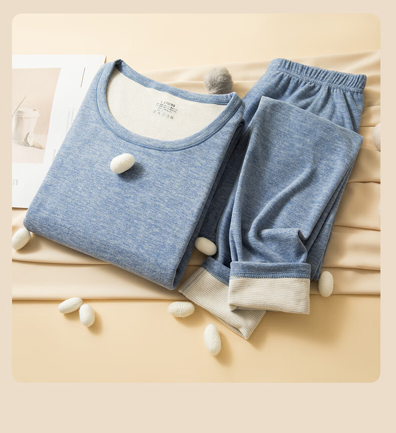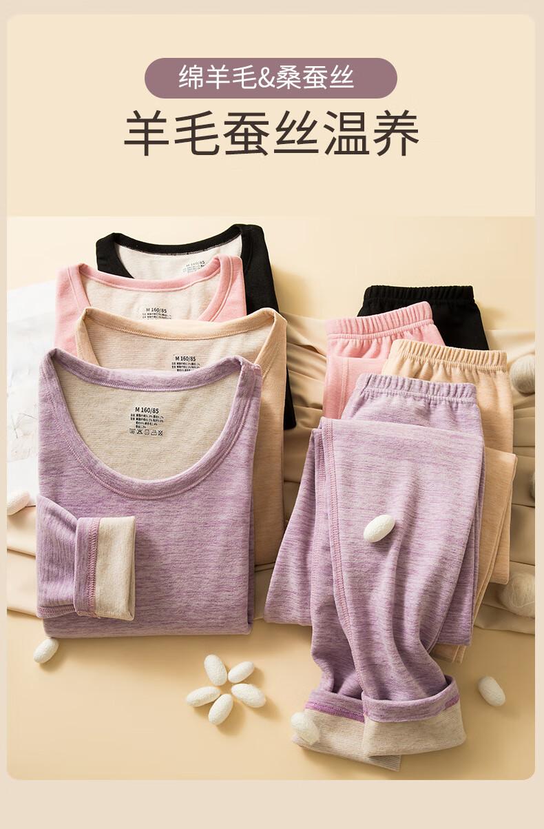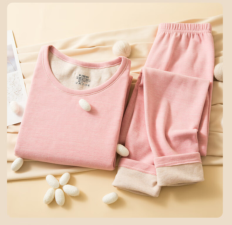 有只绵新款保暖内衣套装大码加绒加厚圆领磨毛秋衣秋裤纯色 羊绒蚕丝粉色女 L