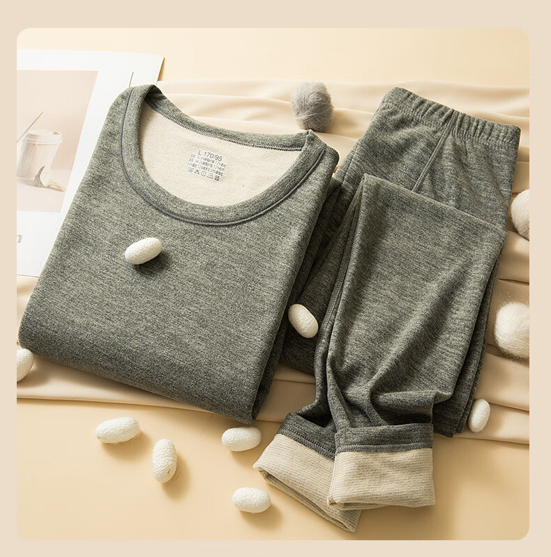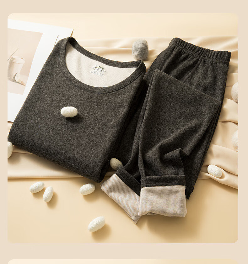 正品双面绒德绒保暖衣套装男中高领打底睡衣冬季防寒加厚秋衣秋裤 (升级版1套装-圆领-浅灰) 3XL 【175-205斤】