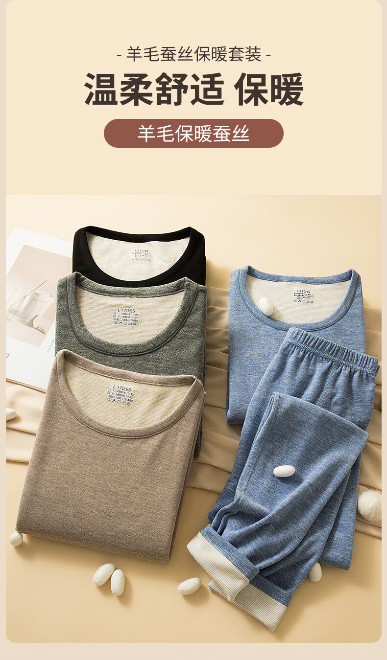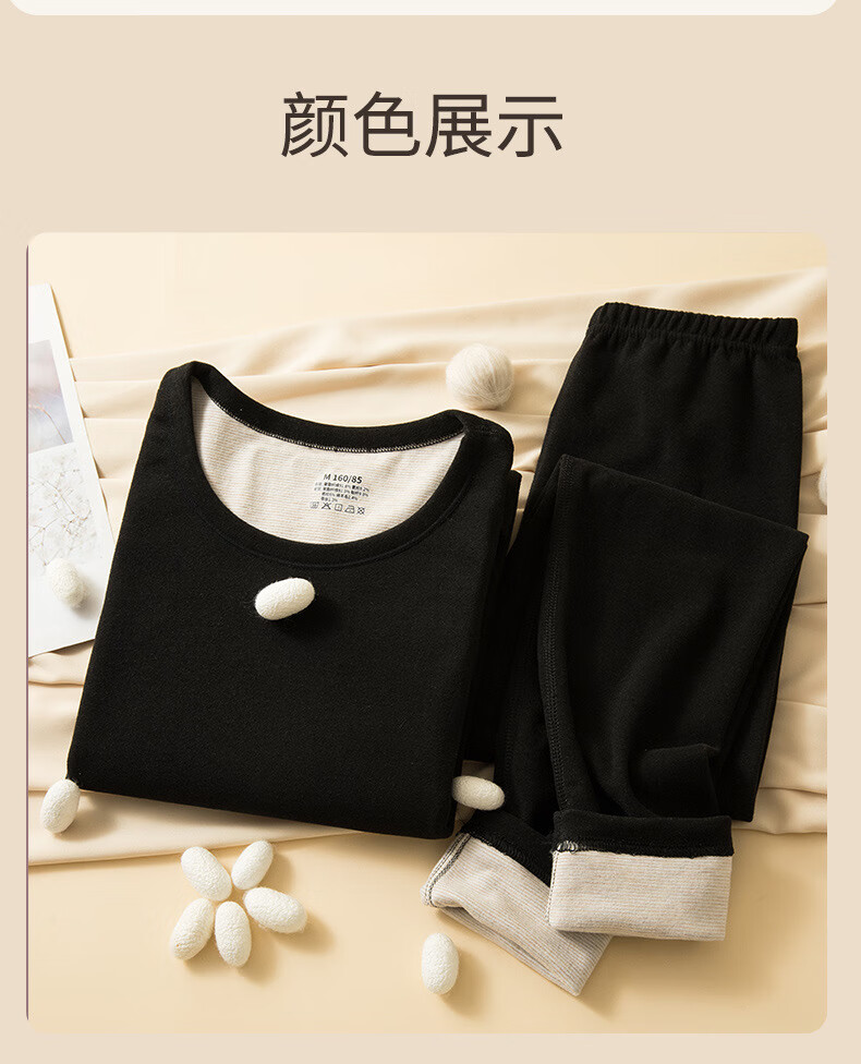顶瓜瓜玻尿酸秋冬男士保暖内衣打底套装长袖透气薄款无痕裸感修身显瘦 经典黑(套装) XL
