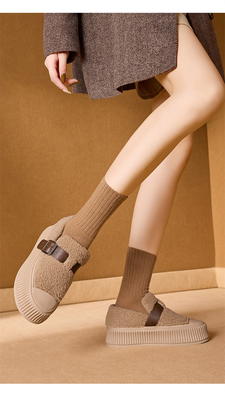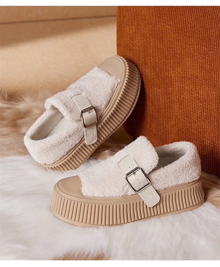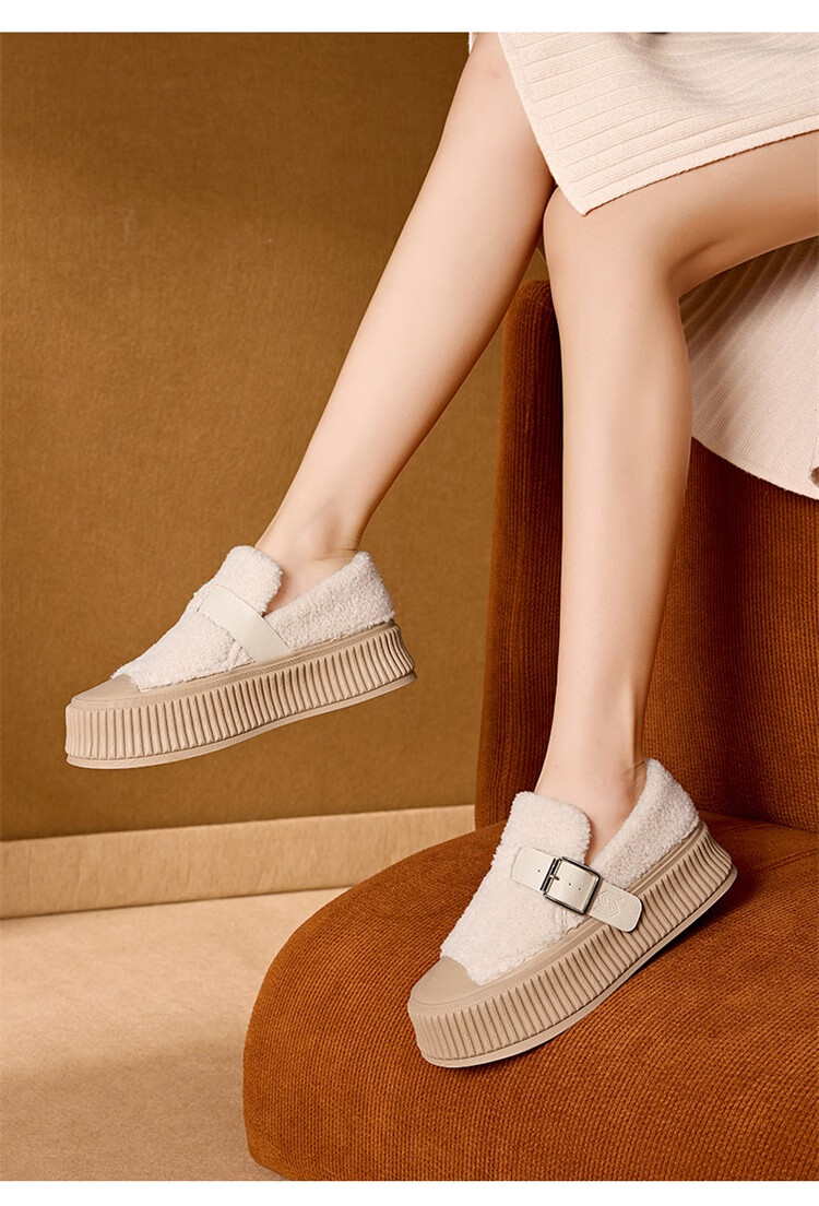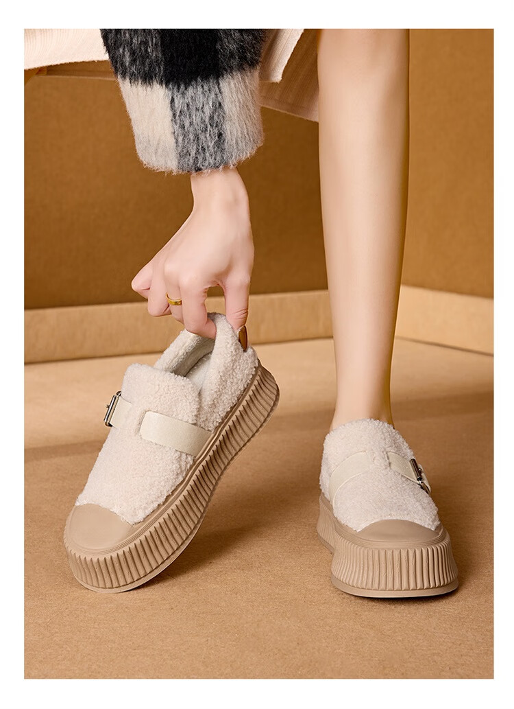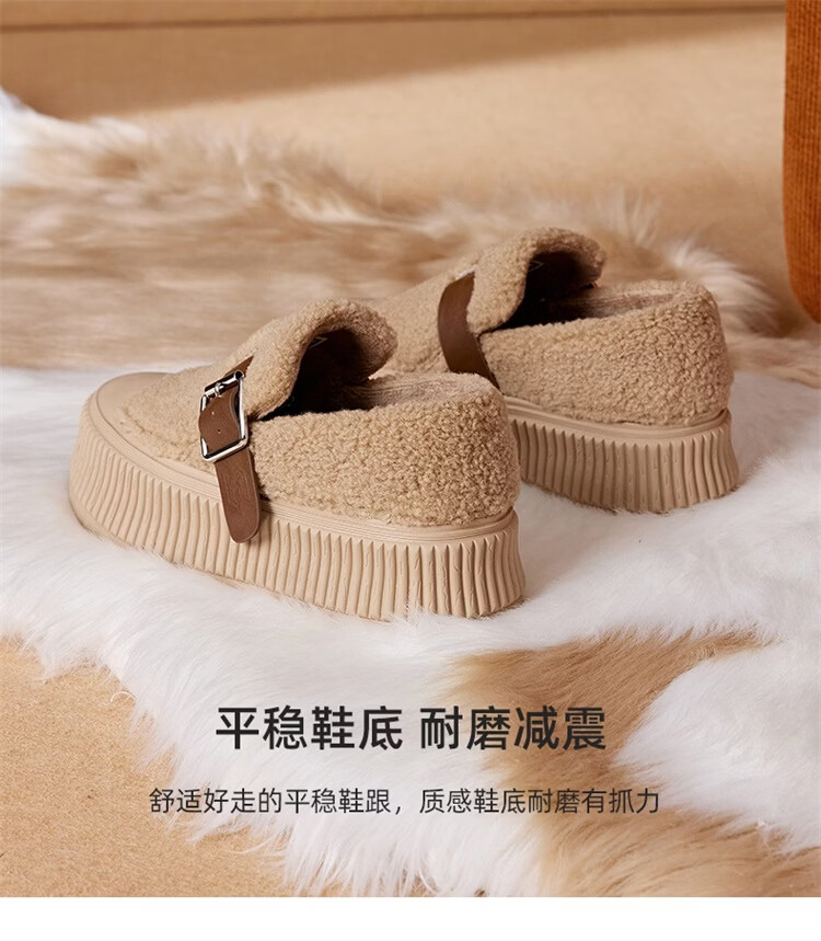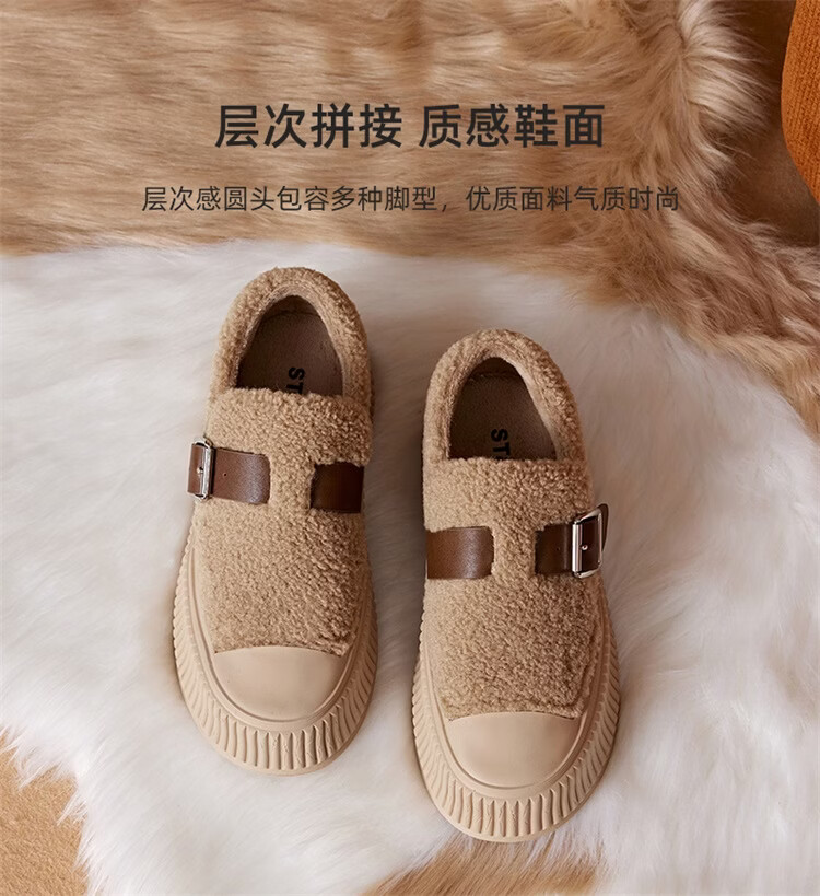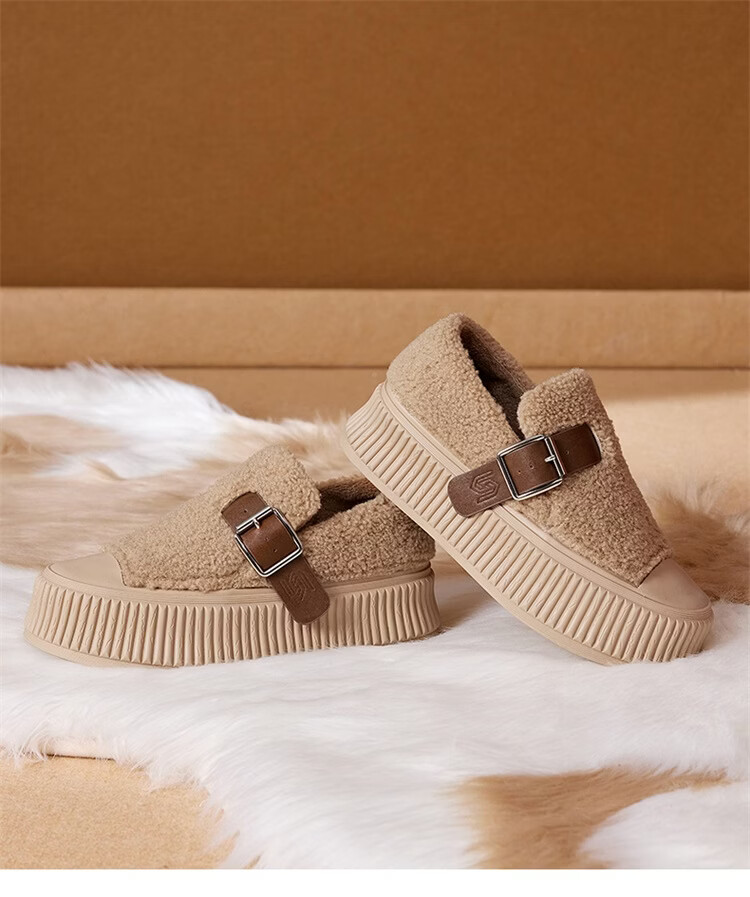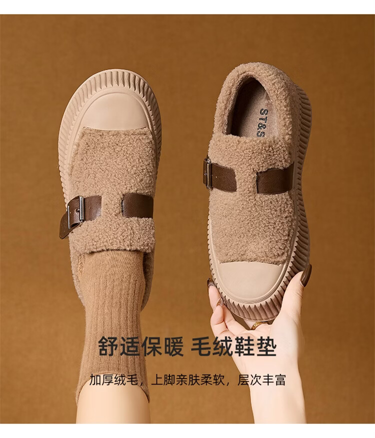 星期六女鞋厚底毛毛鞋女2025新款冬季加绒保暖棉鞋面包鞋休闲板鞋 驼色 【加绒保暖】 35