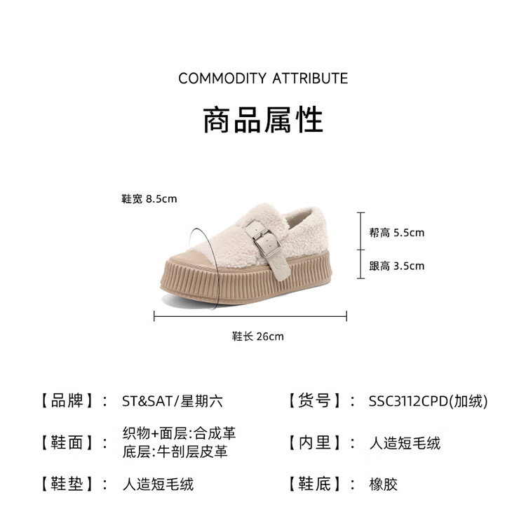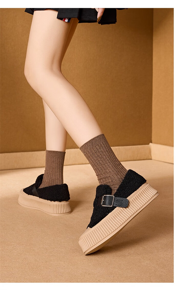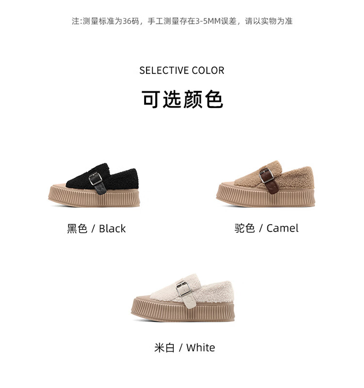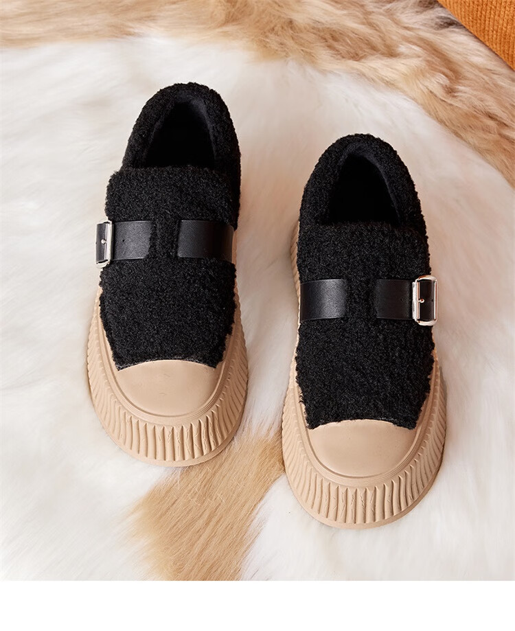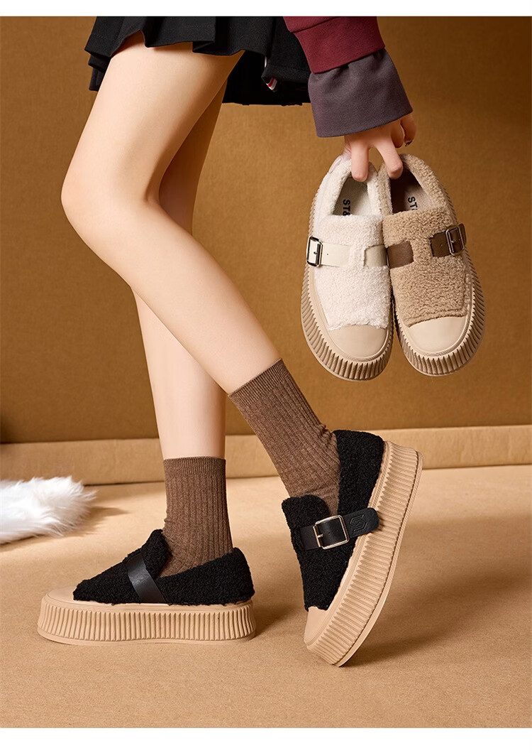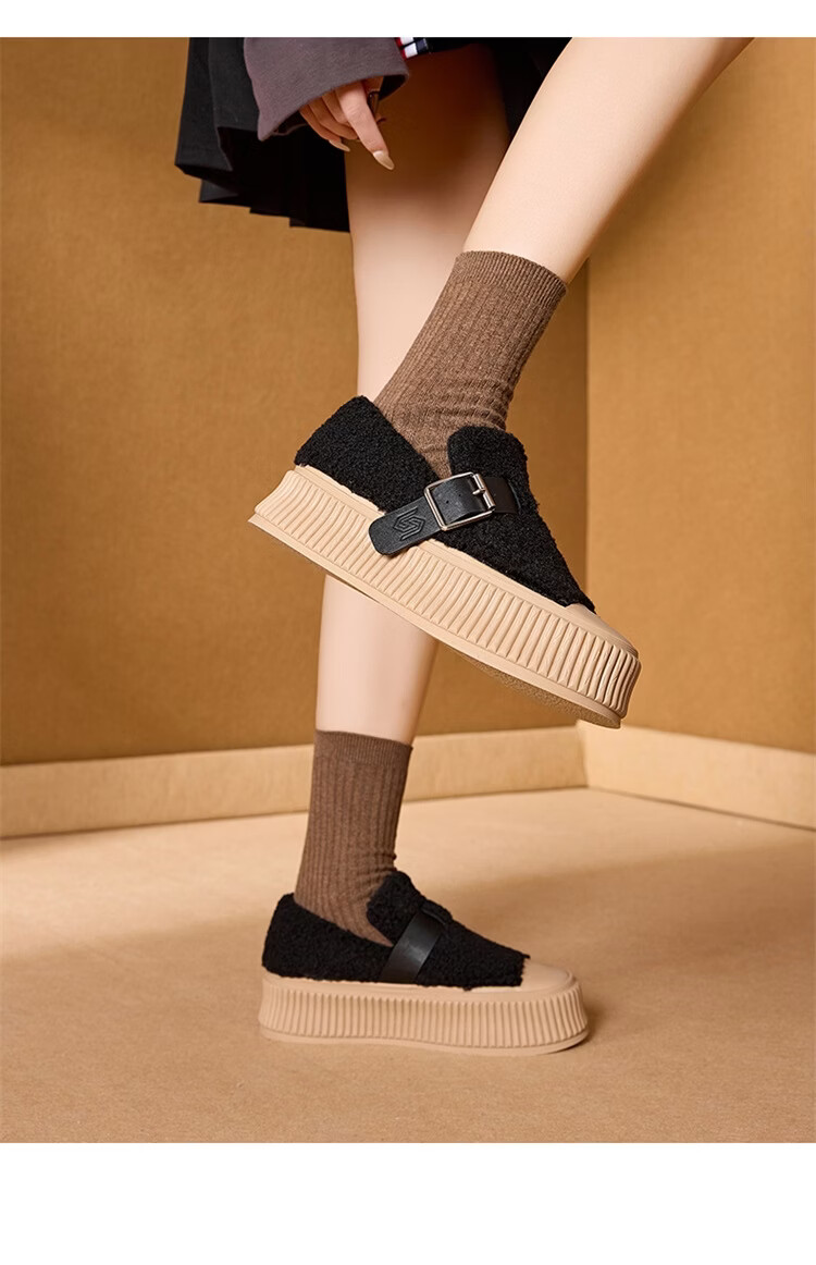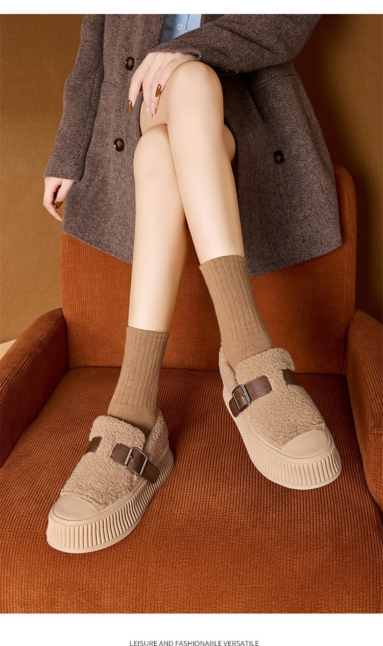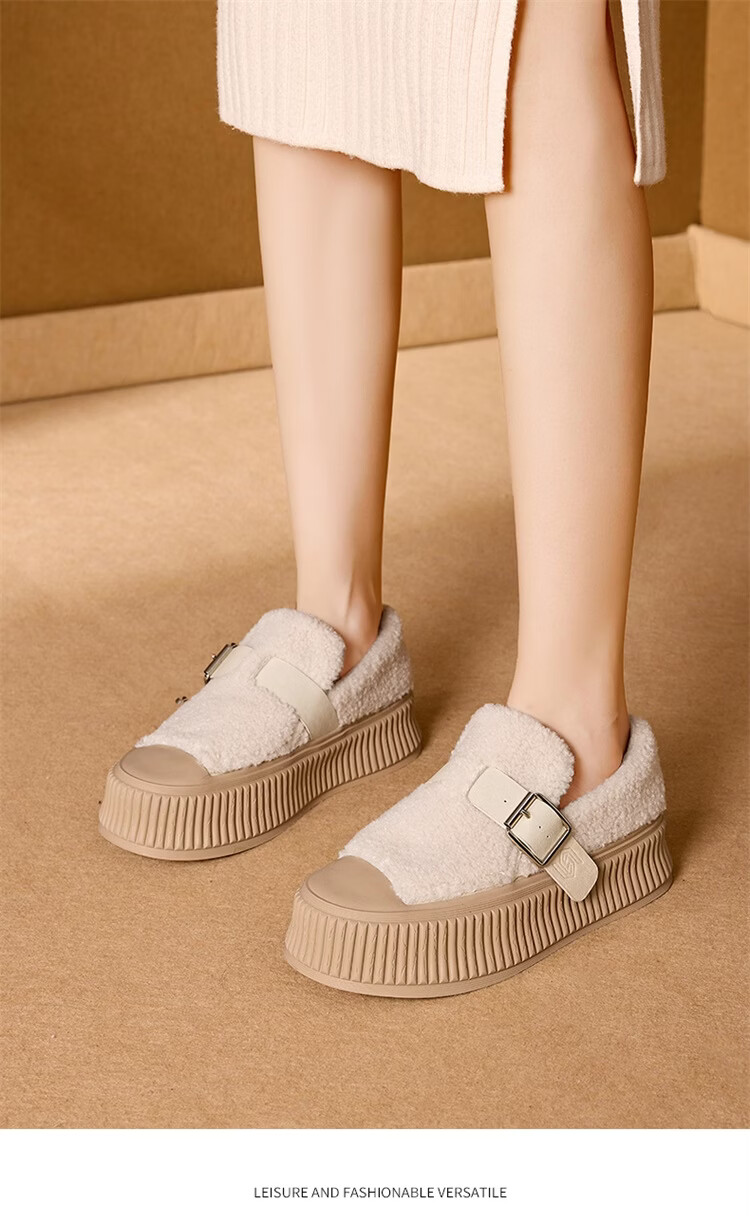 星期六女鞋厚底毛毛鞋女2025新款冬季加绒保暖棉鞋面包鞋休闲板鞋 驼色 【加绒保暖】 35
