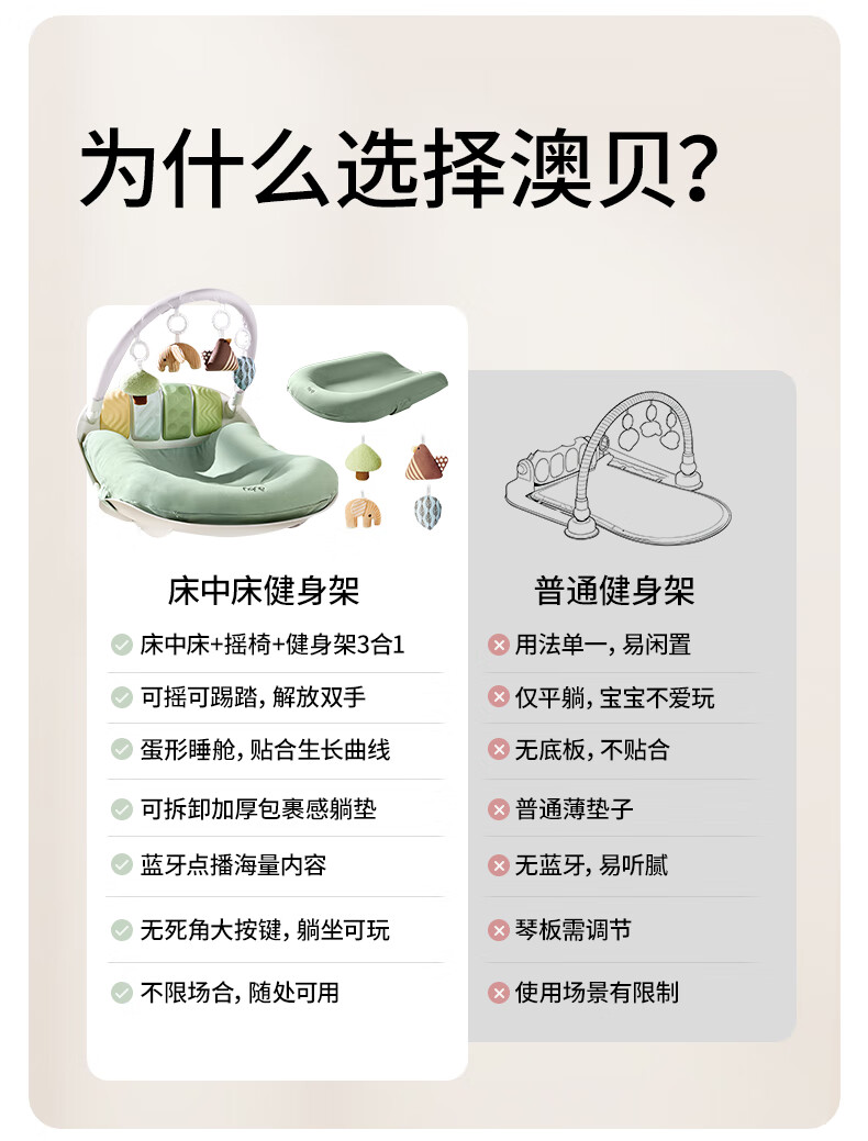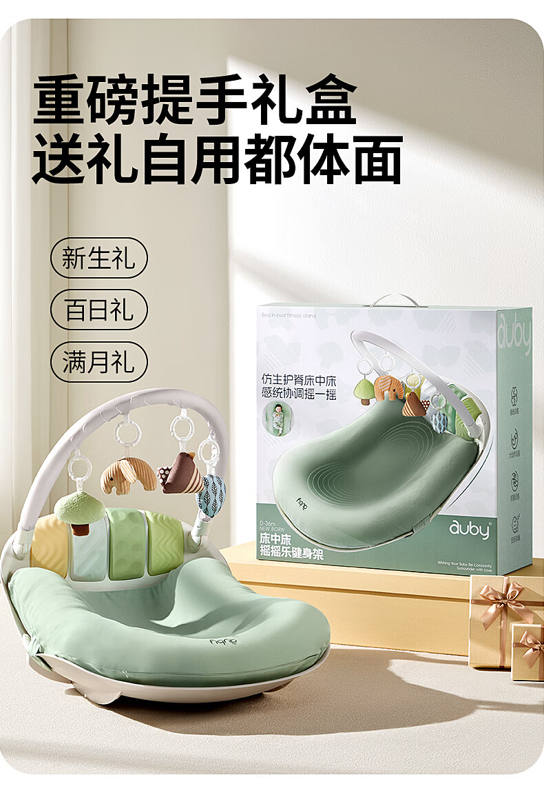 澳贝(auby)新生儿见面礼婴儿床中床摇摇乐健身架摇椅脚踏琴玩具满月新年礼盒