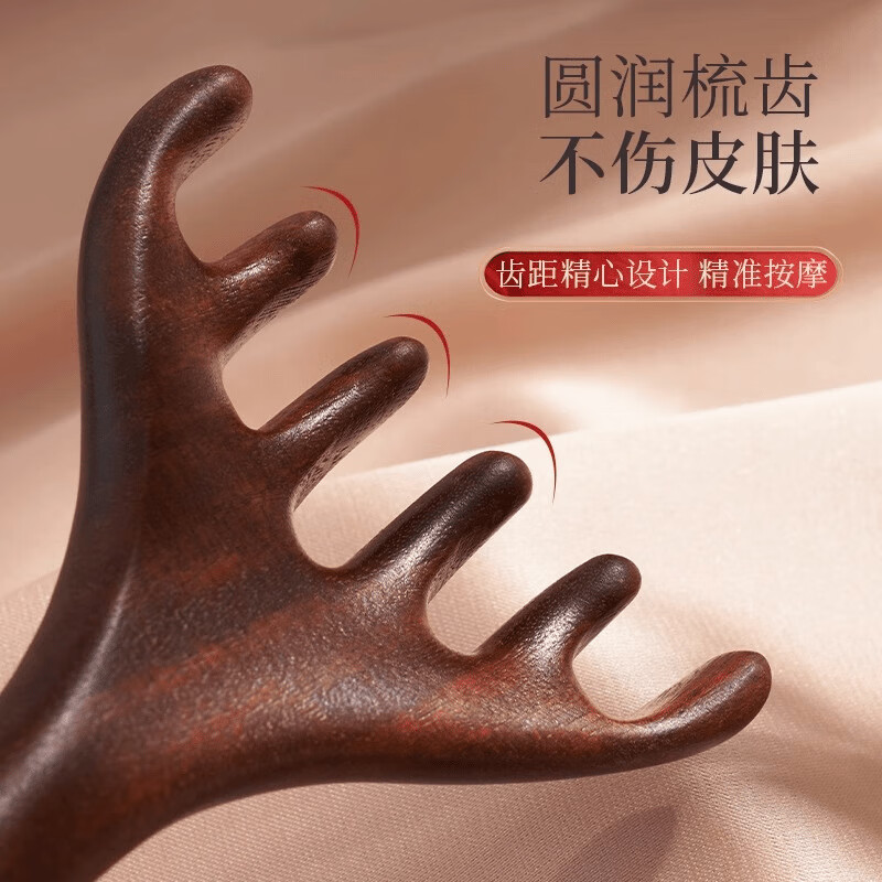 Jepoo鹿角梳六爪两用按摩梳子眼头部头皮按摩非原木经络梳头疗刮 一个装