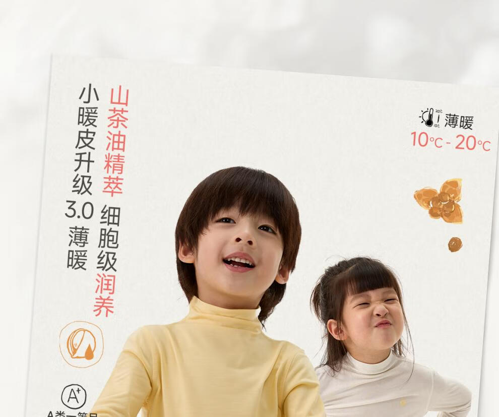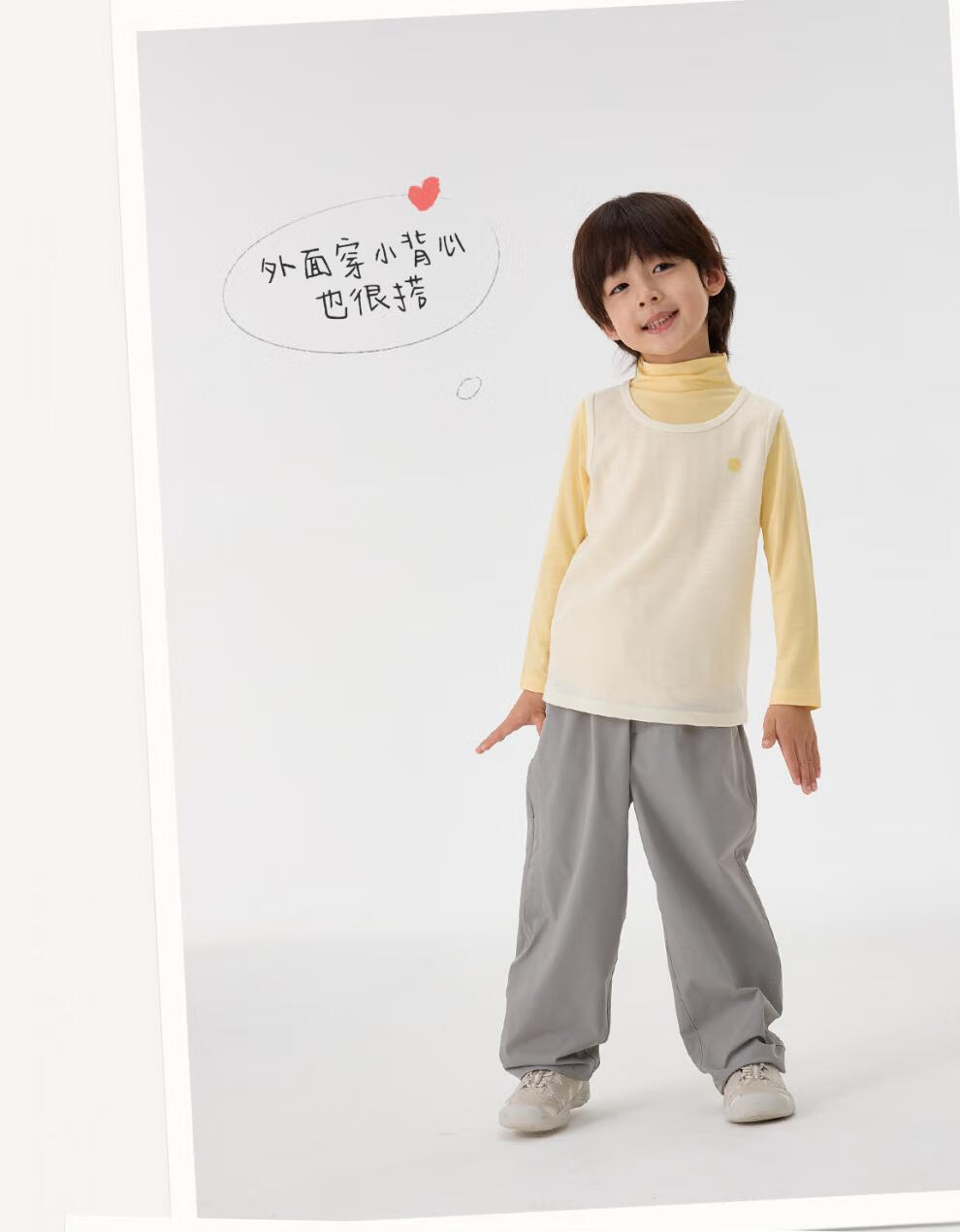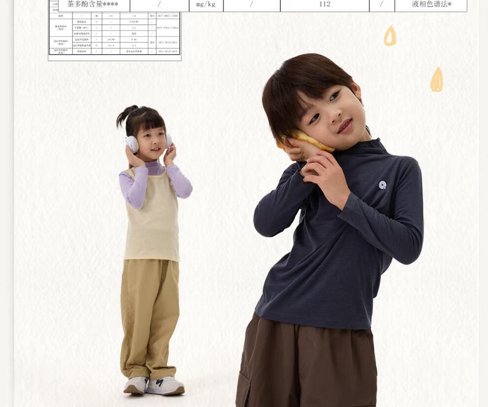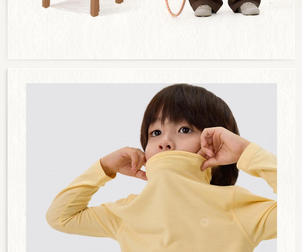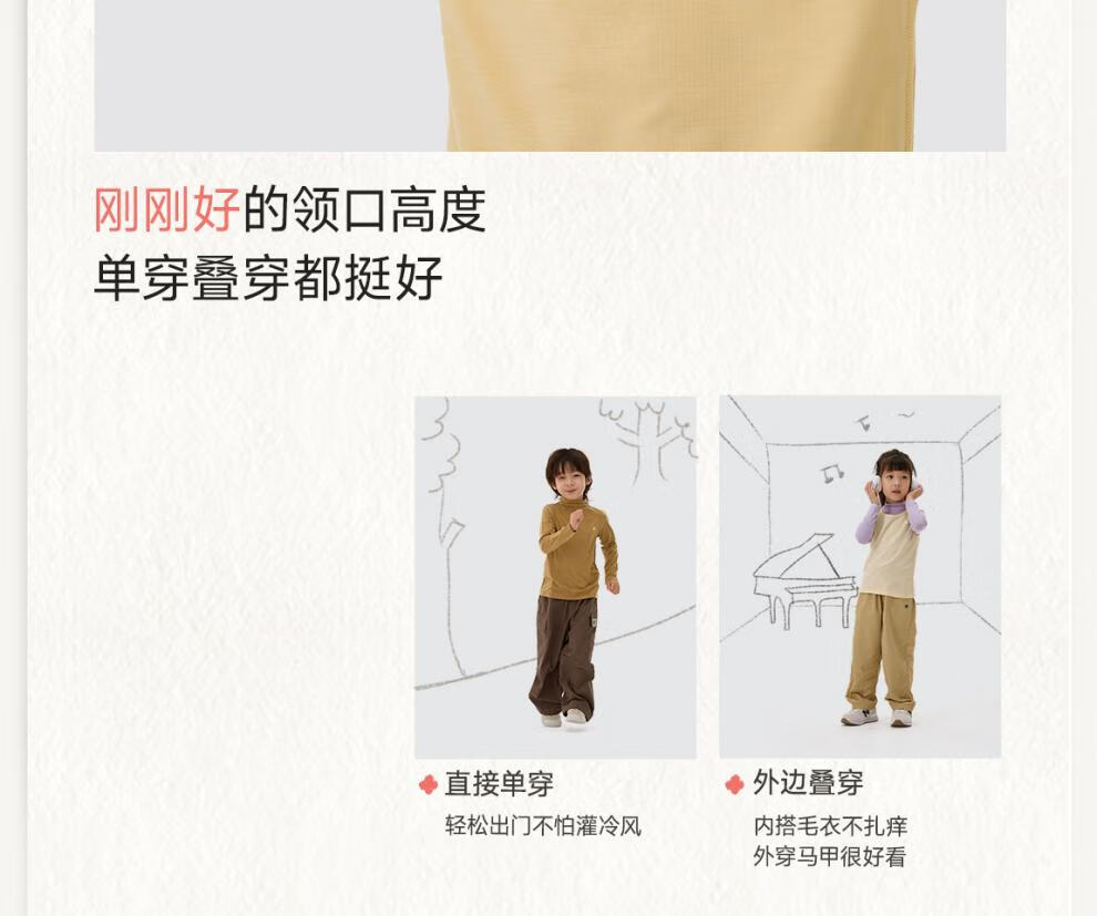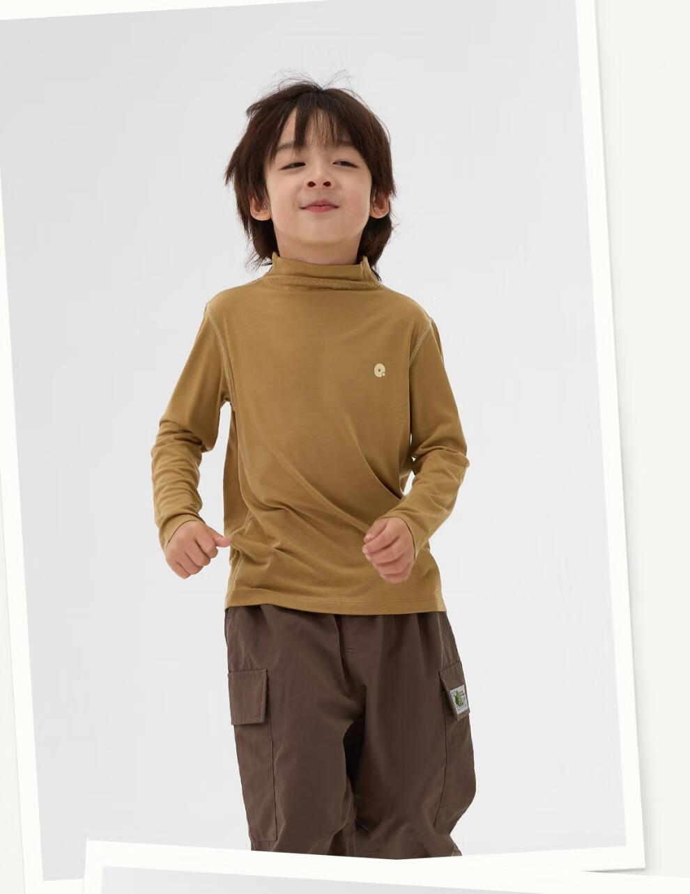 Q21【直播薄暖】Q21小暖皮山茶油儿童秋衣男女童小高领a类内搭打底 泥杏黄 90
