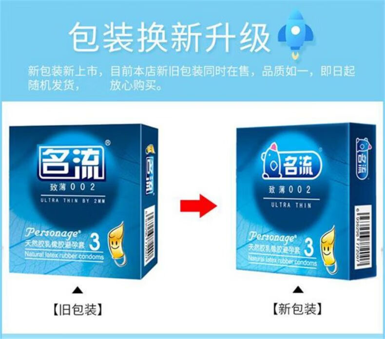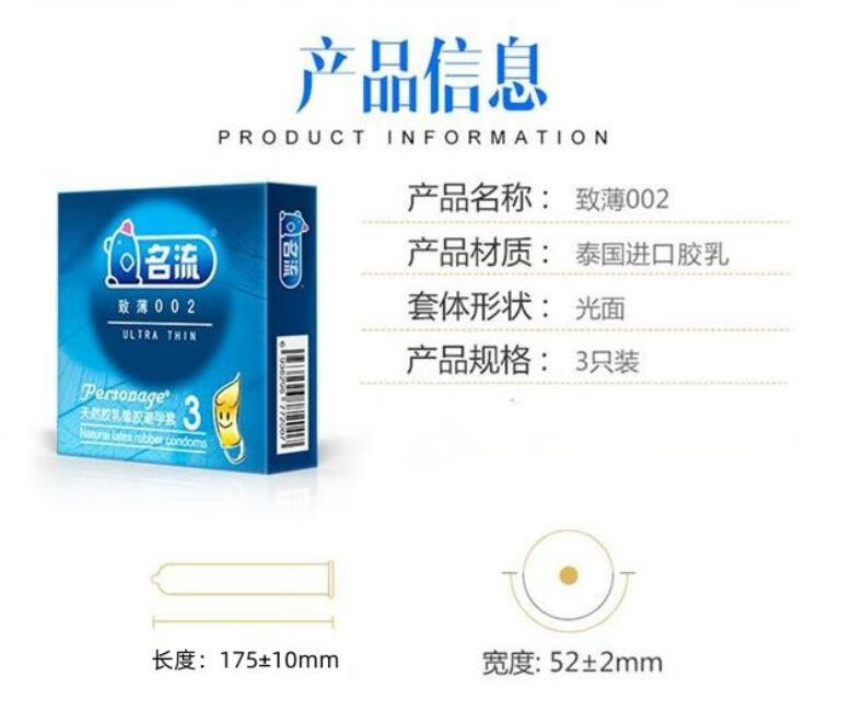 名流避孕套超薄致薄002安全套成人情趣性用品男用光面超薄中号3只装