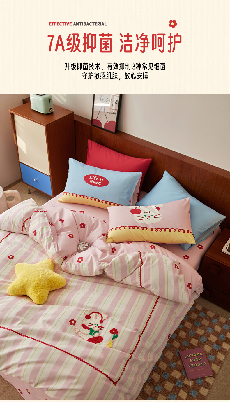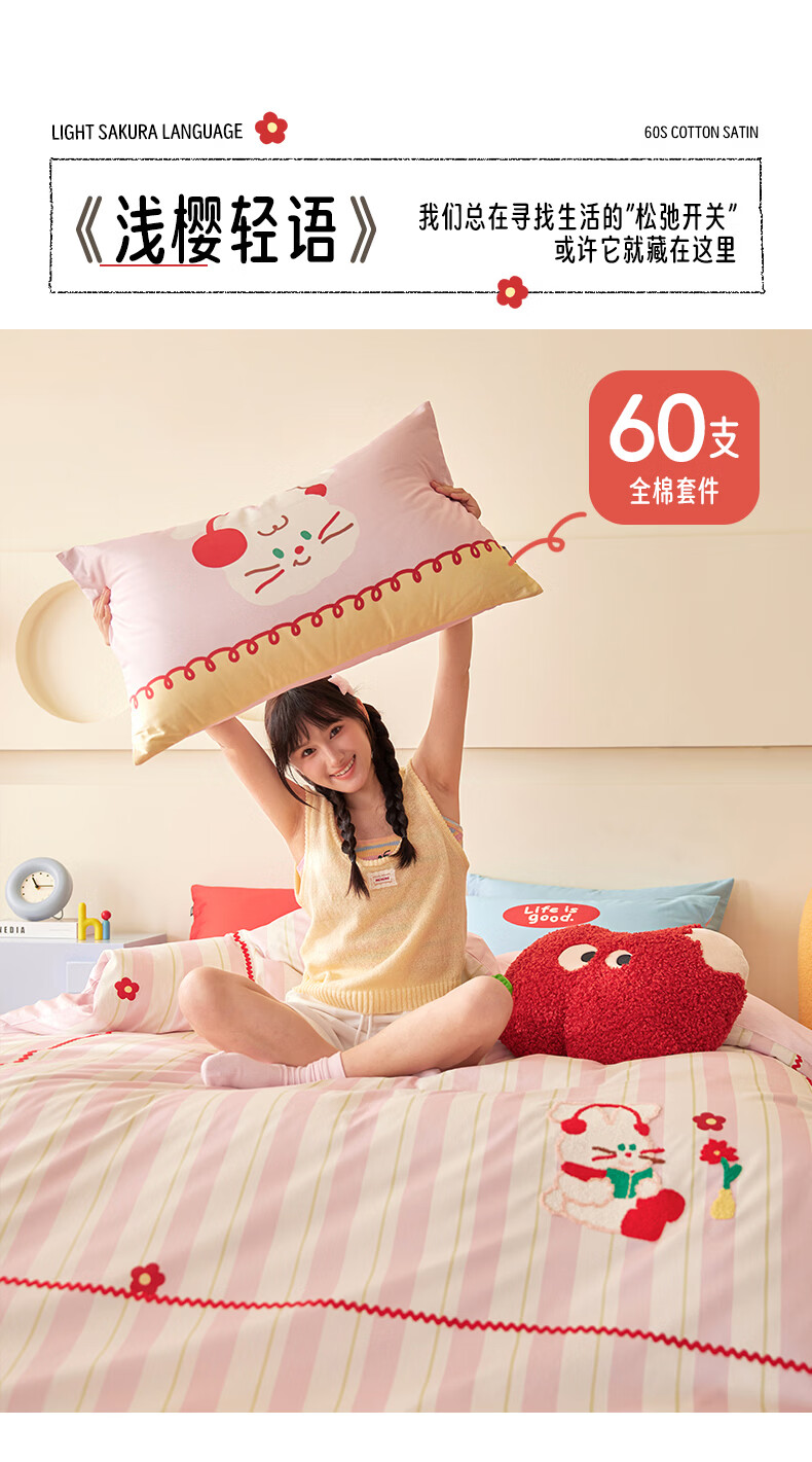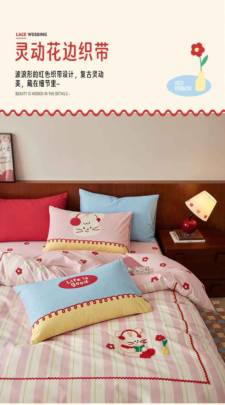 多喜爱家纺纯棉床上四件套 轻奢60支全棉贡缎刺绣双人床单被套床品套件1.5床203*229cm