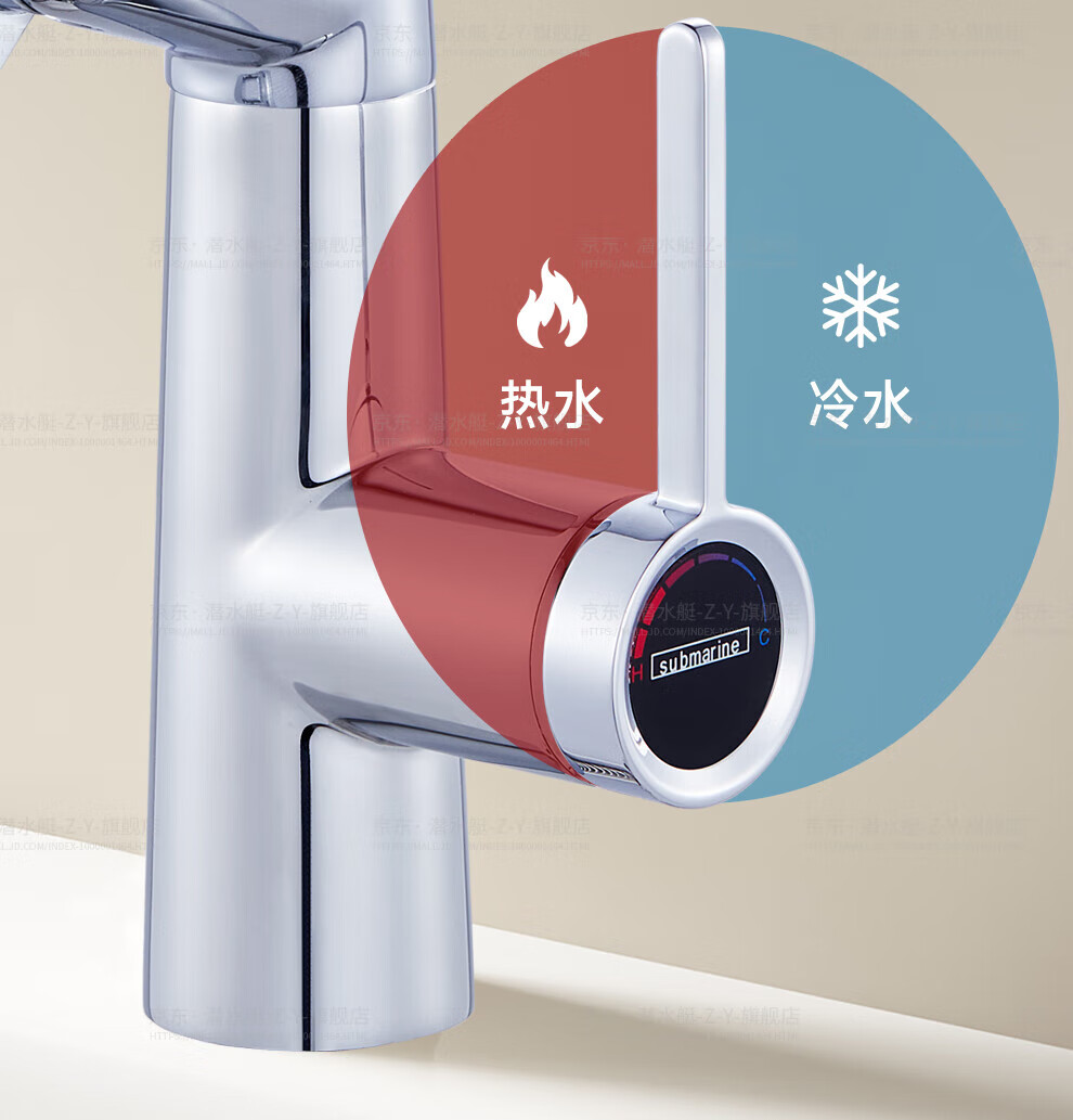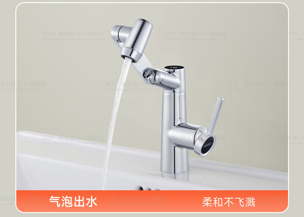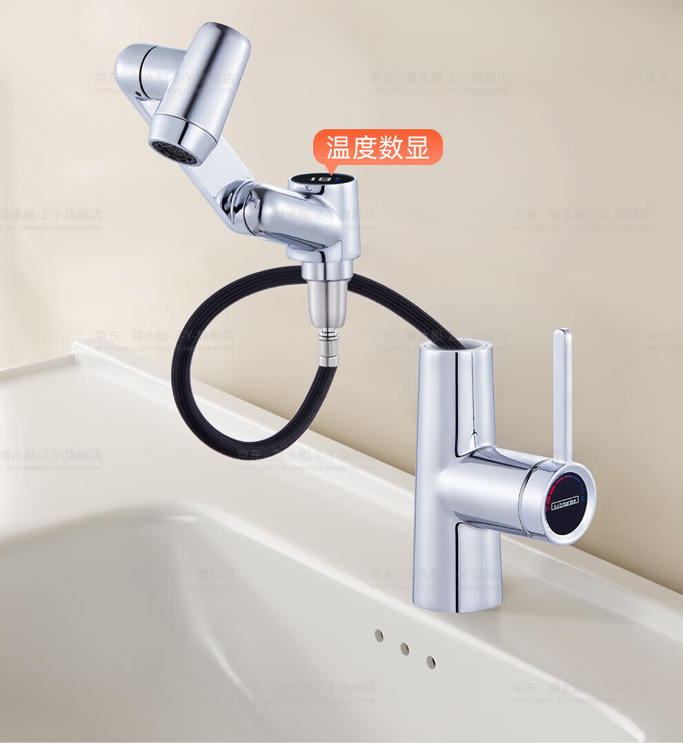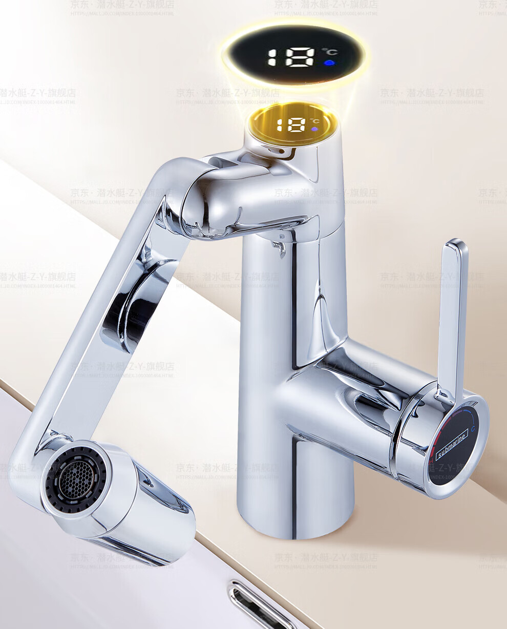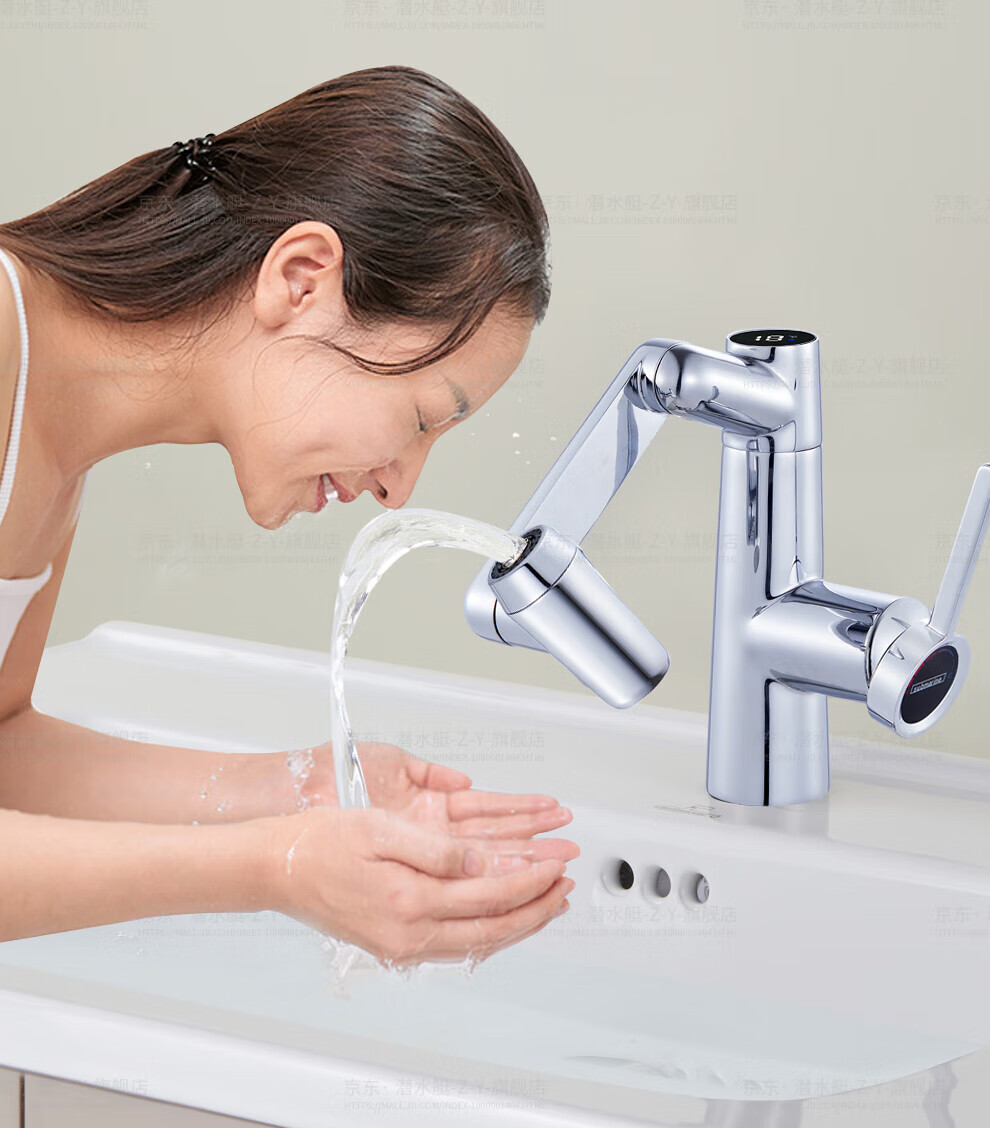 潜水艇(Submarine)抽拉洗手盆水龙头冷热水二合一洗脸面盆卫生间机械臂厨房台盆数显 枪灰色L2016H【创新上装】