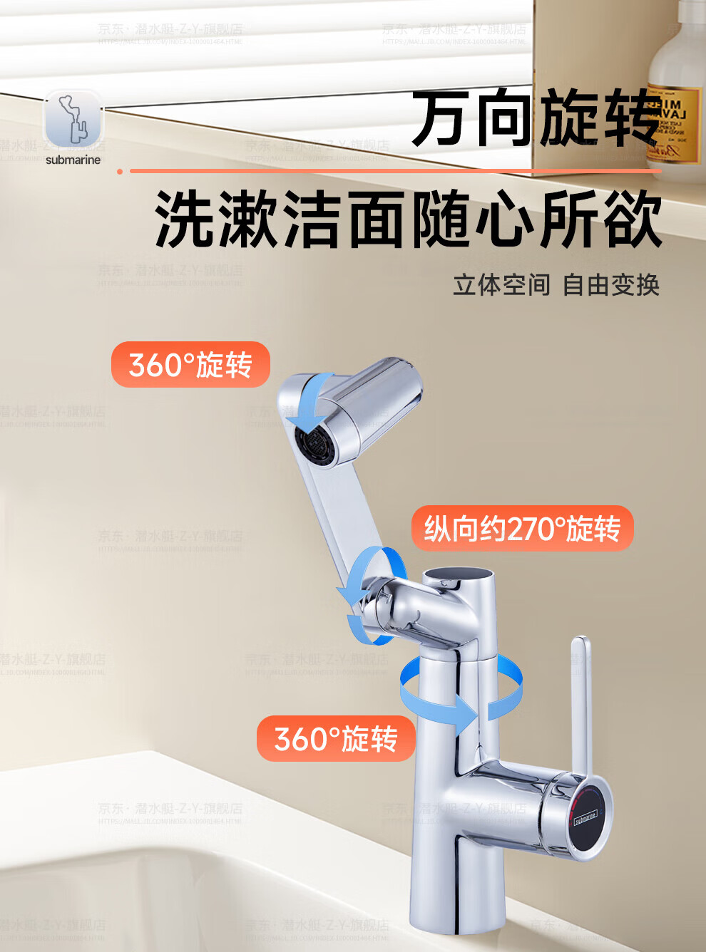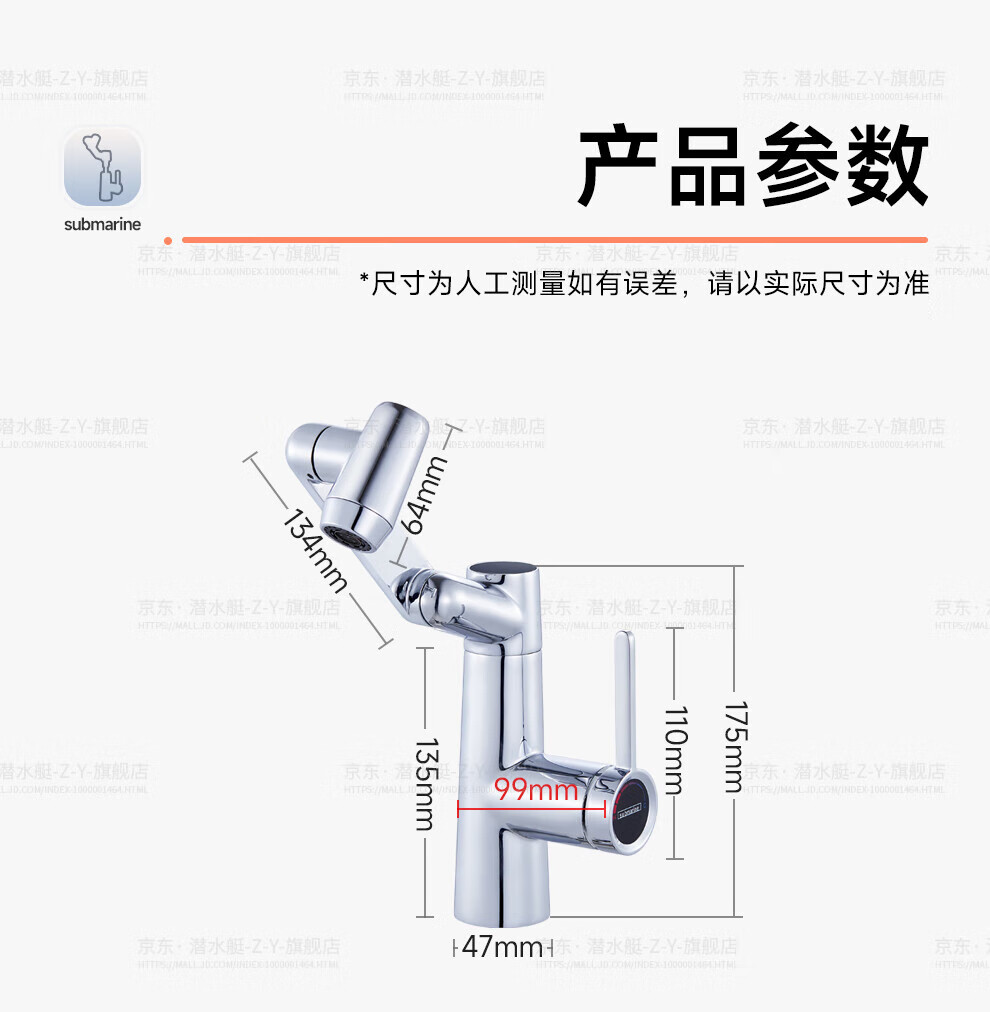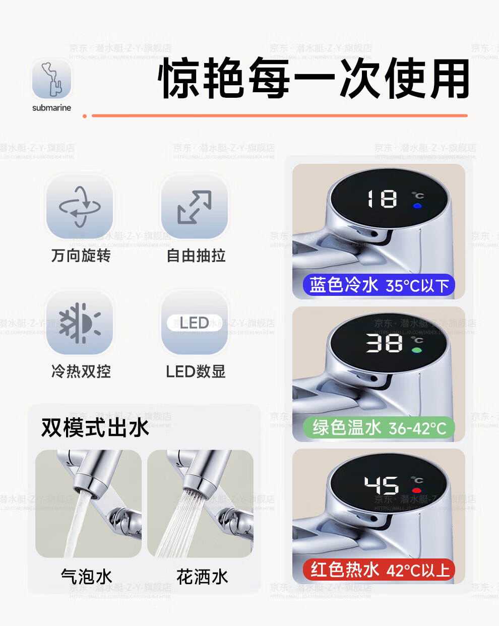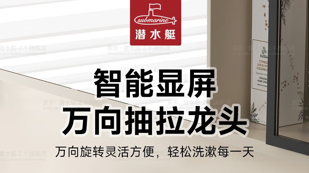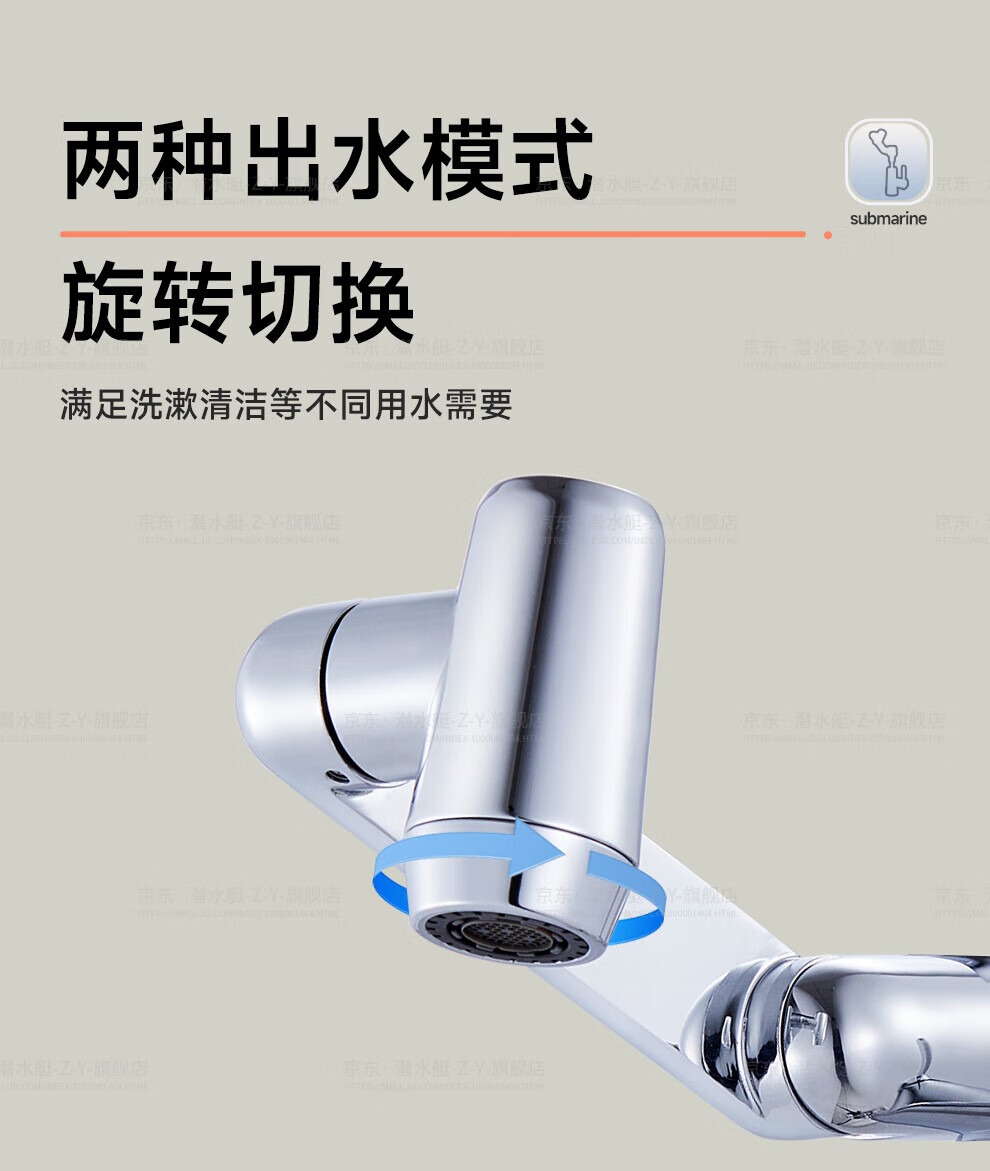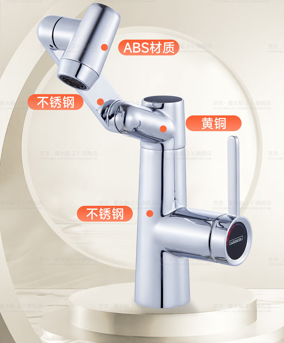 潜水艇(Submarine)抽拉洗手盆水龙头冷热水二合一洗脸面盆卫生间机械臂厨房台盆数显 枪灰色L2016H【创新上装】