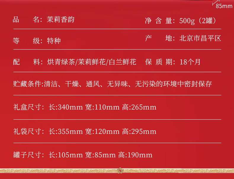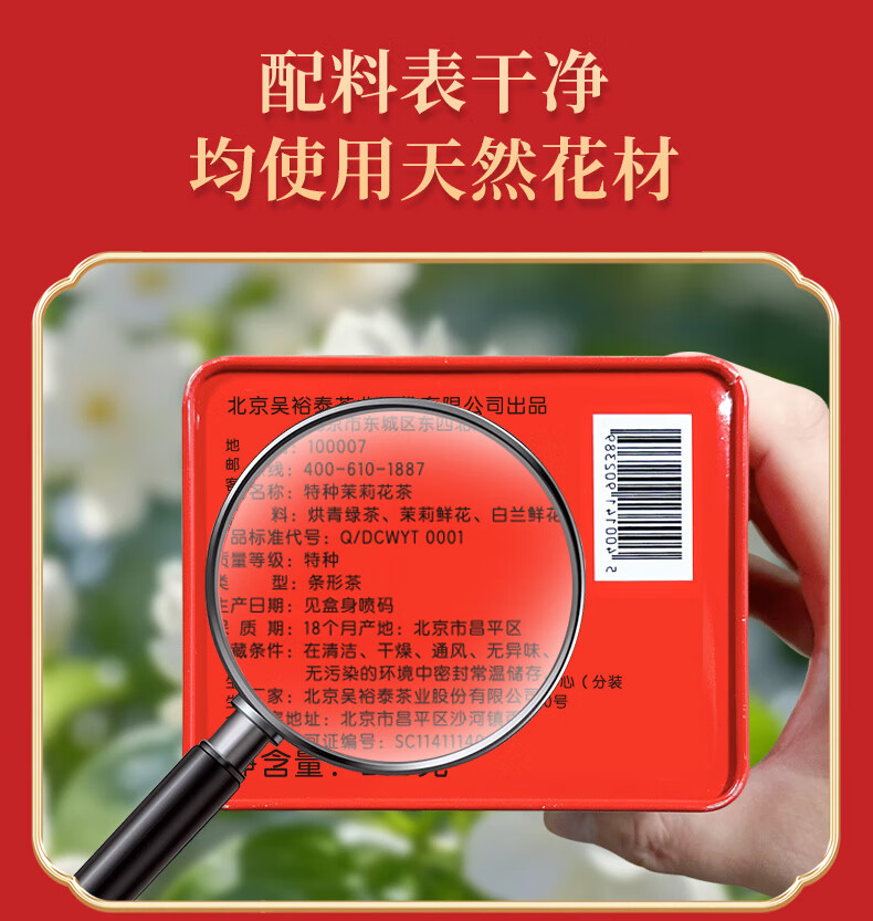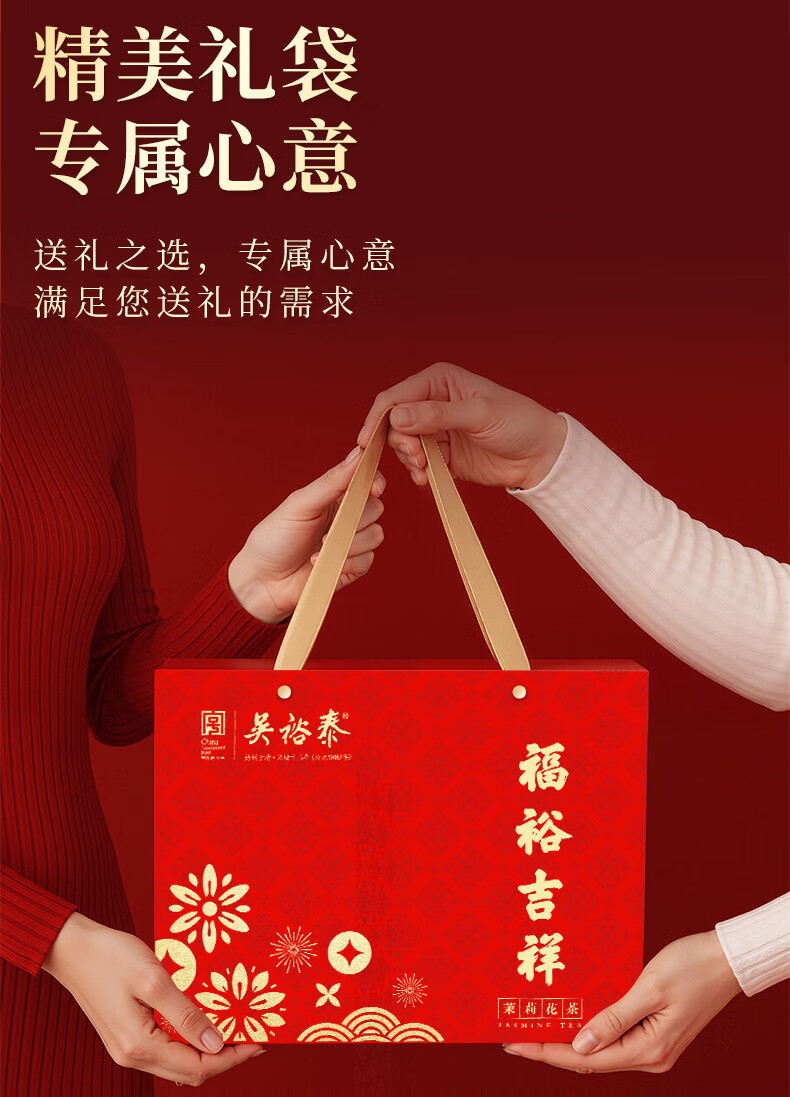 吴裕泰茉莉花茶福裕吉祥500g礼盒装特级花茶六窨含芽浓香耐泡自饮送礼