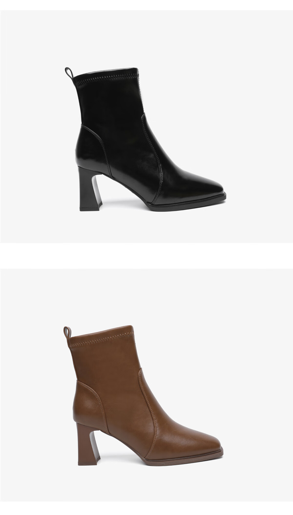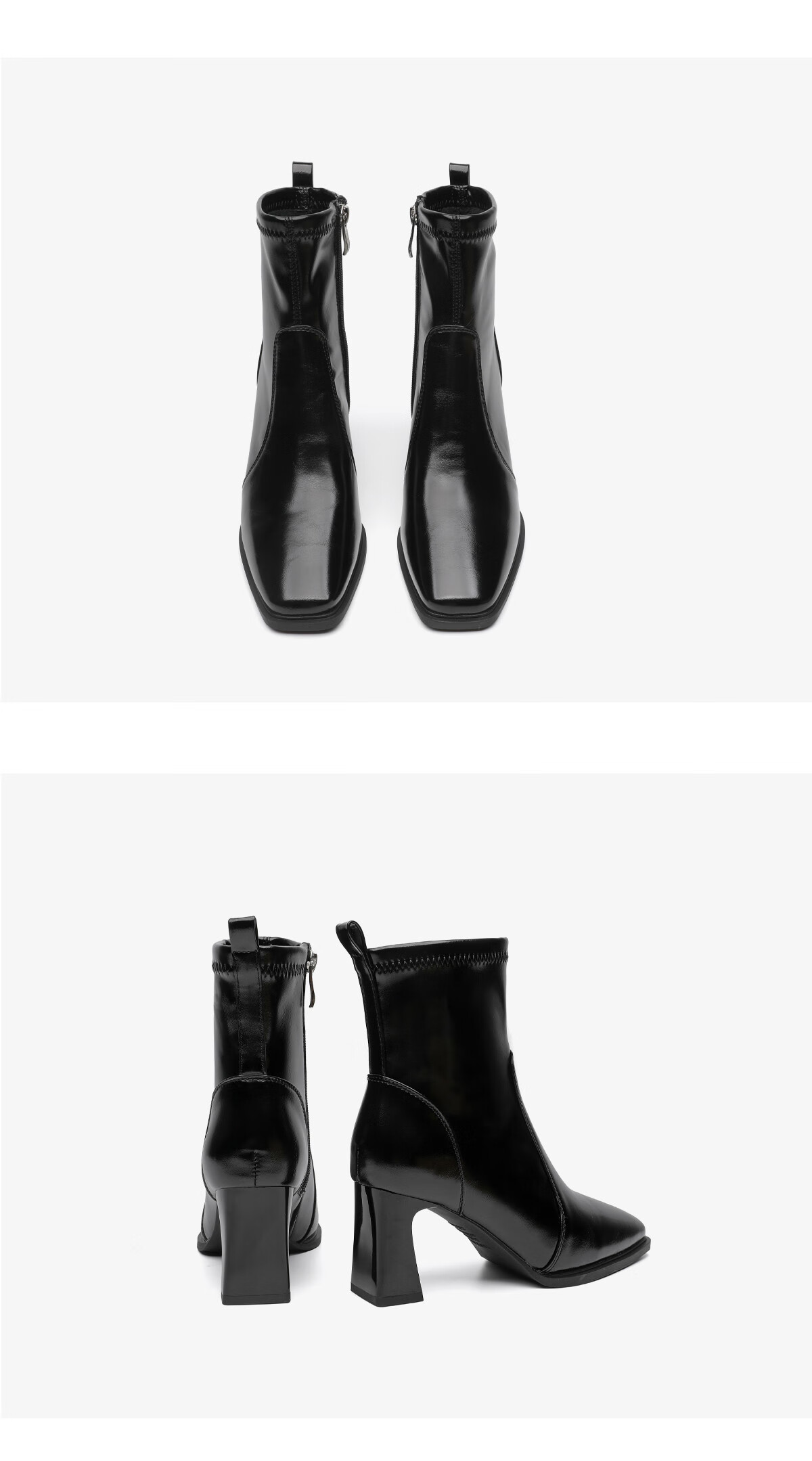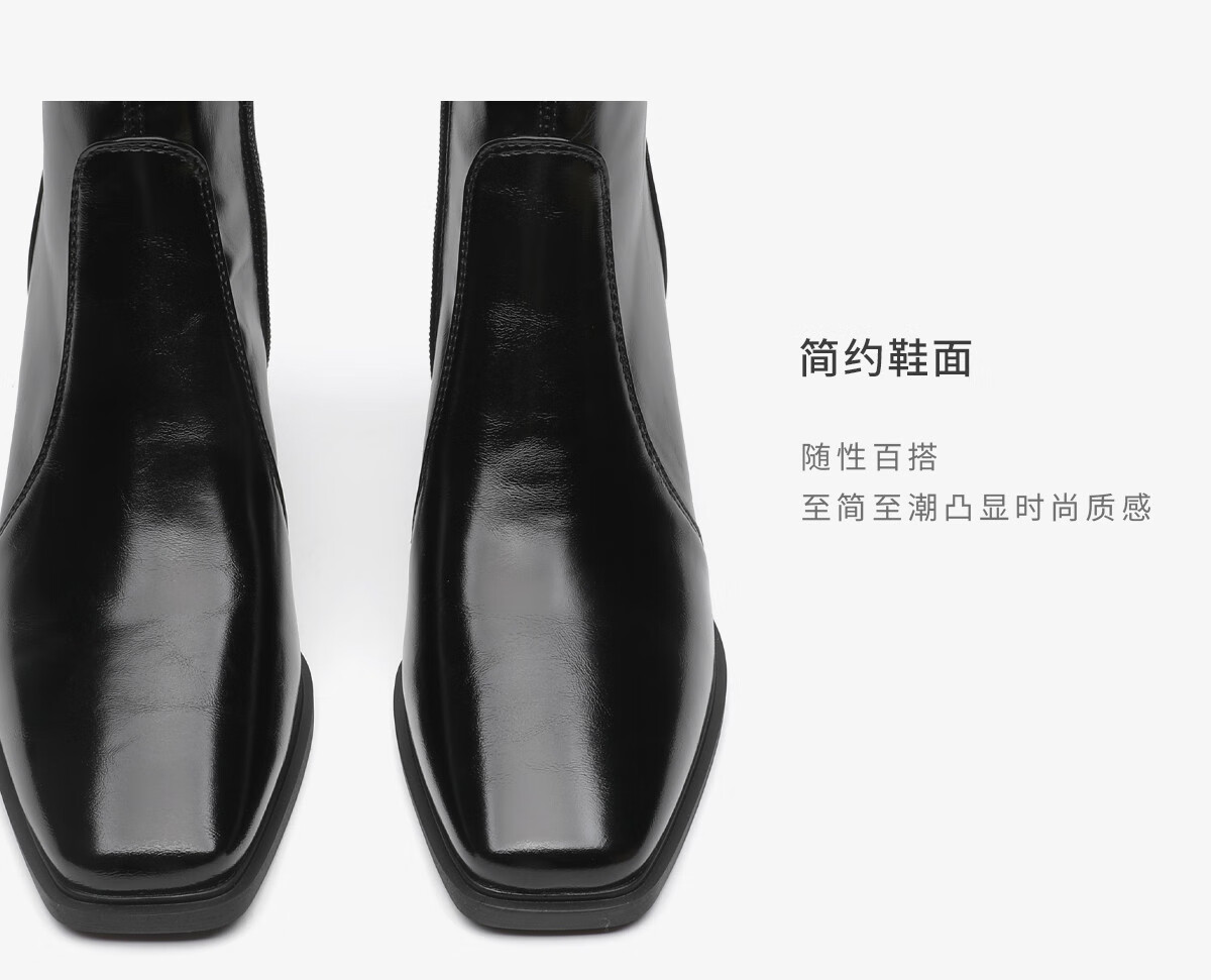 月芽儿方头短靴女2025新款冬季马丁靴黑色高跟鞋靴子百搭 绒里黑色01T 34