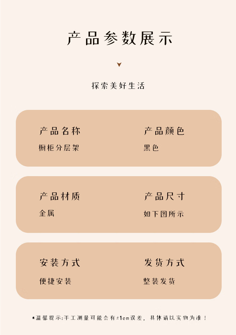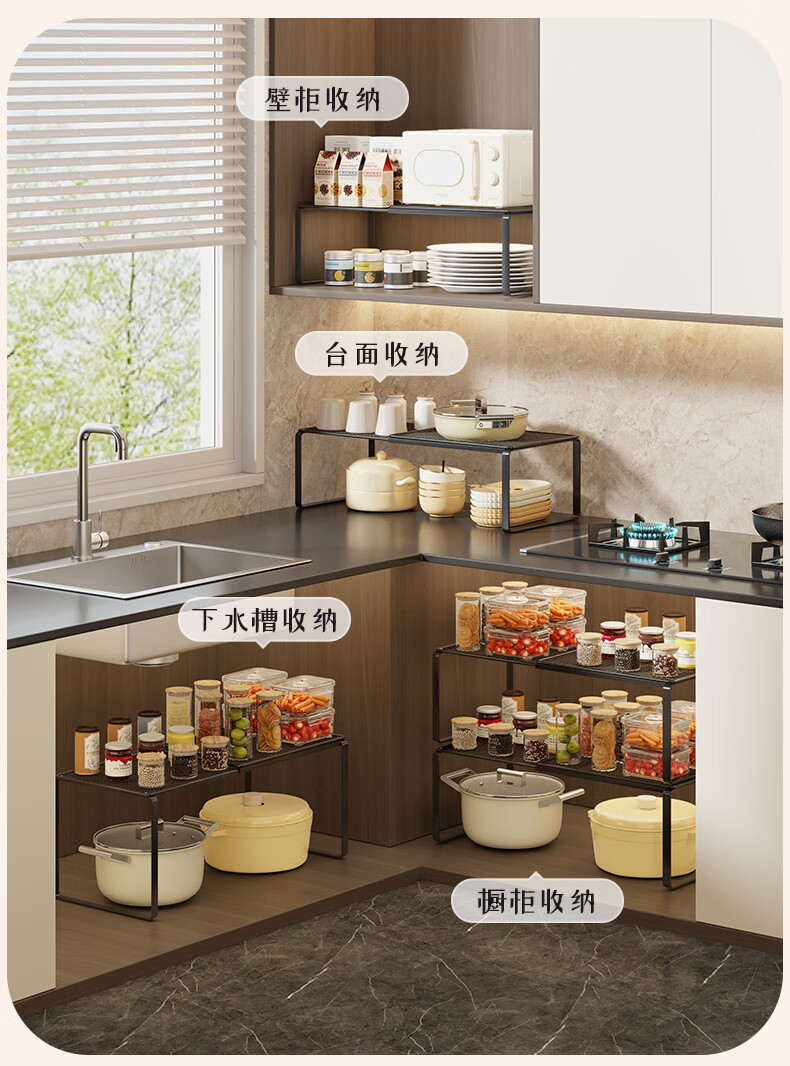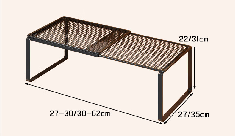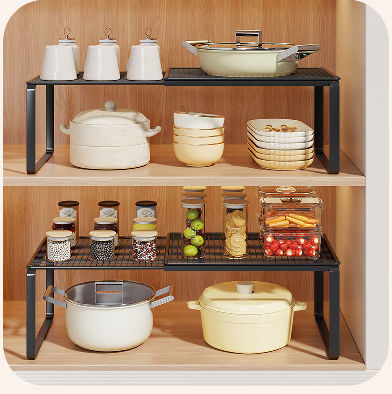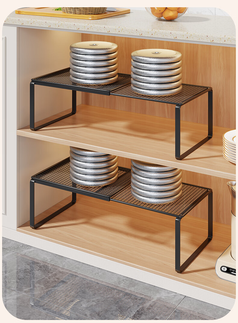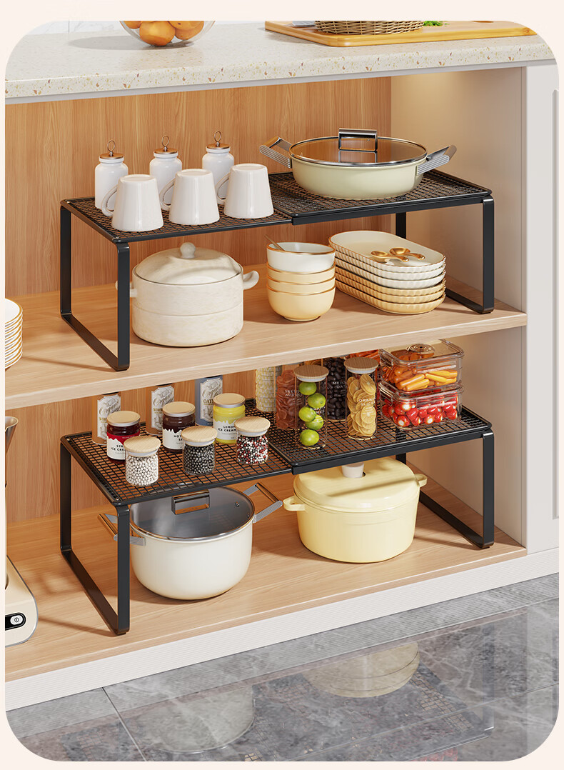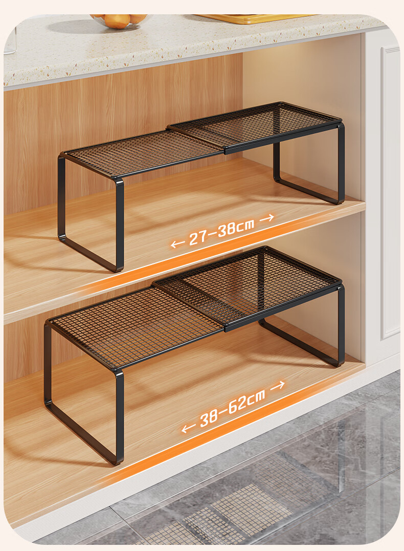 尔思家厨房置物架可伸缩橱柜内置分层架多功能调料置物架桌面碗碟收纳架 黑色-长27-38CM 宽27CM 高22CM 单层