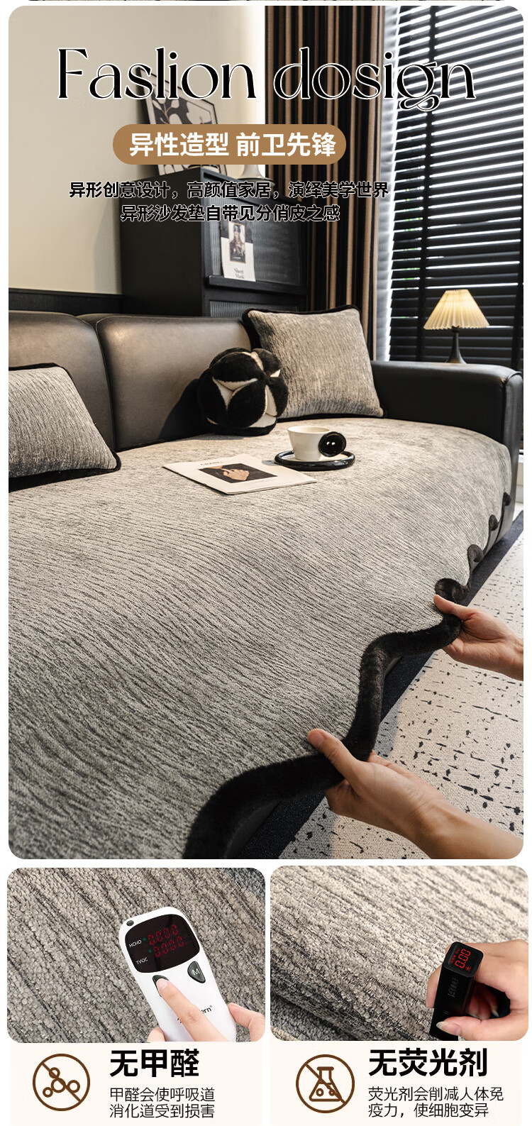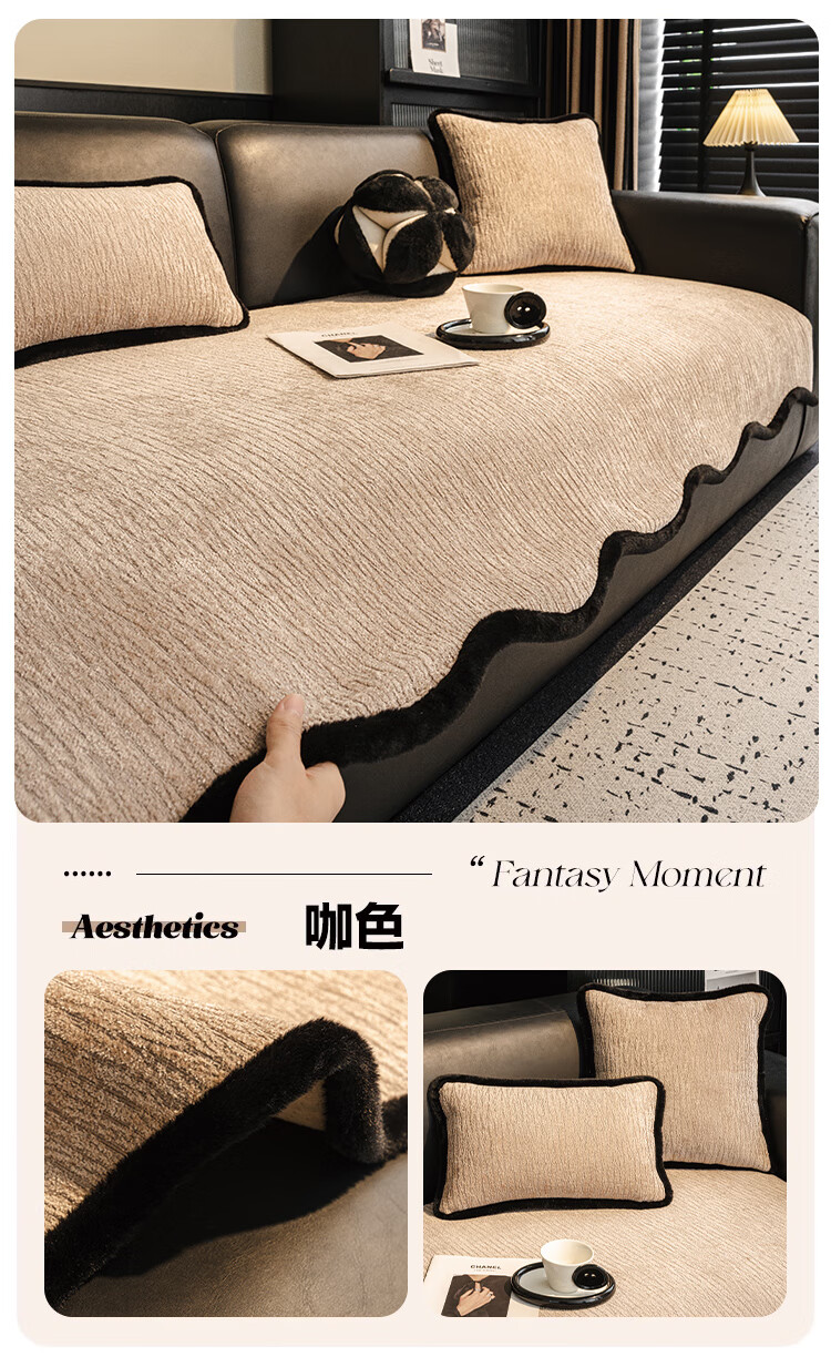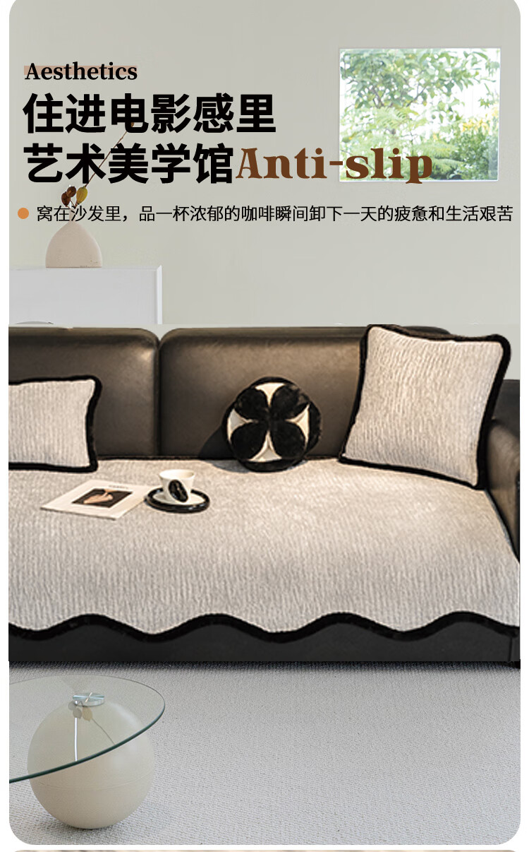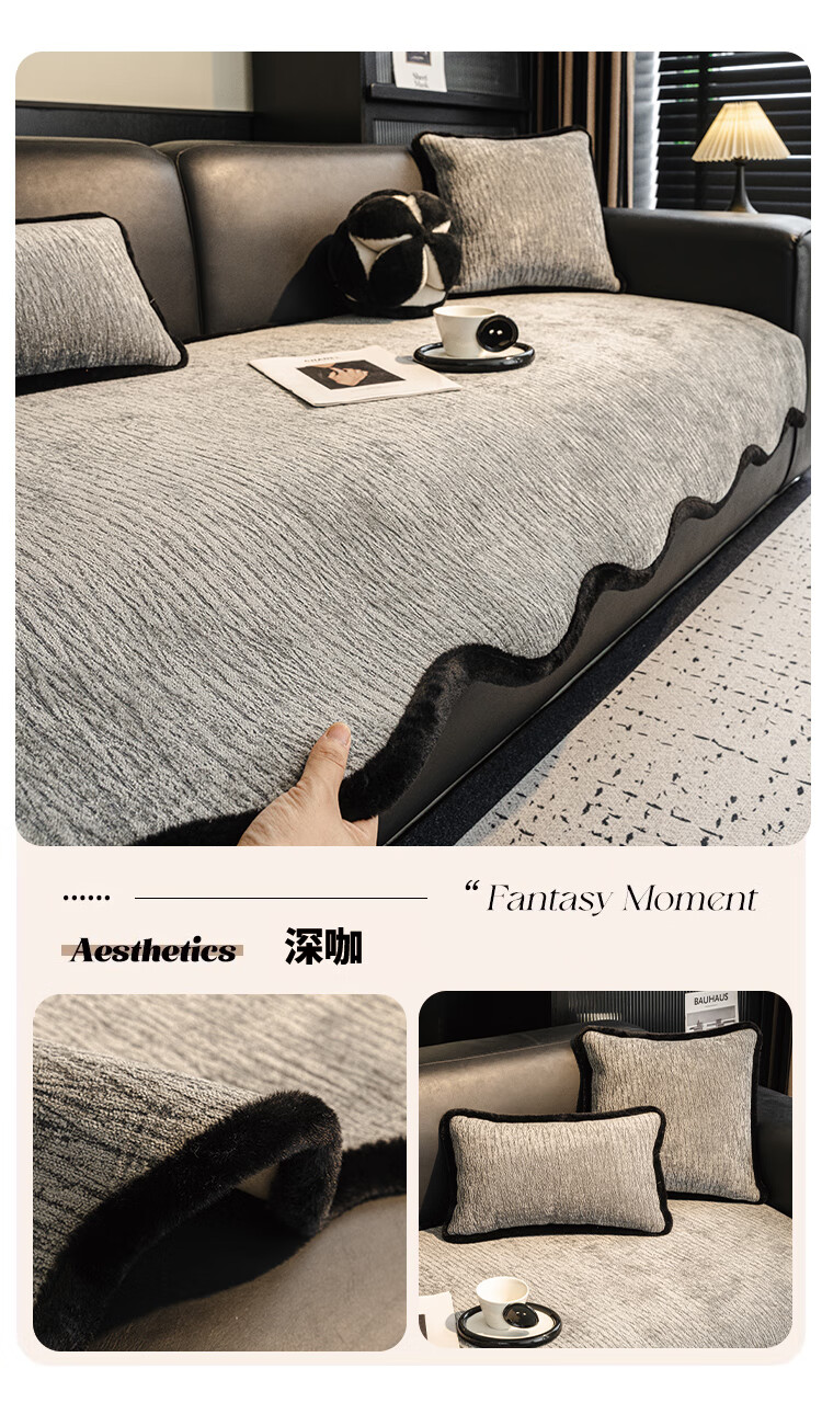 金拾美月雪尼尔异形沙发垫2026款四季通用固定防滑沙发套罩不规则盖布巾 异形温北-深灰 70cm*70cm