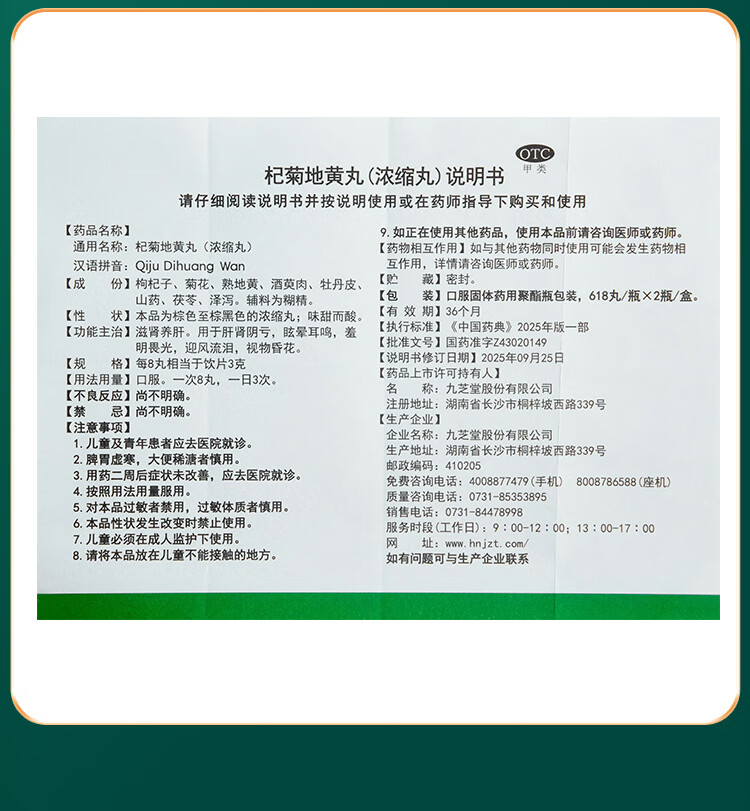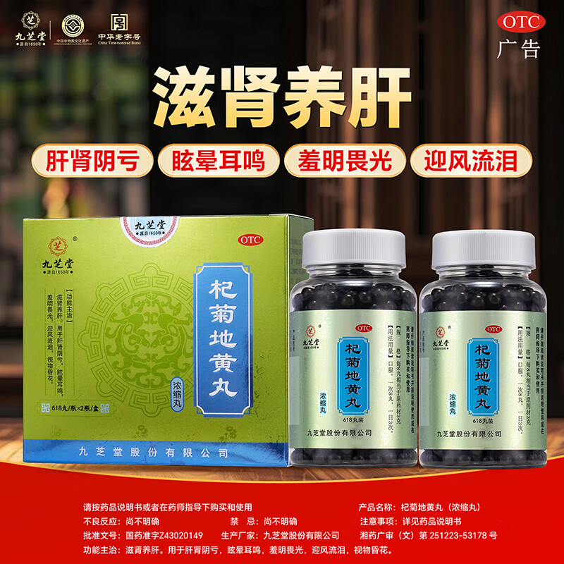 九芝堂杞菊地黄丸(浓缩丸) 618丸/瓶*2瓶/盒 京东自营杞菊地黄丸OTC补肾养肝明目肝肾阴亏眩晕耳鸣畏光流泪