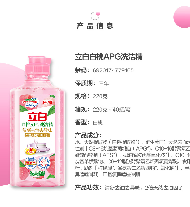 立白白桃APG洗洁精小苏打柠檬去油污果蔬清洗剂莓果洗洁精CPS 莓果洗洁精500g*2+50g