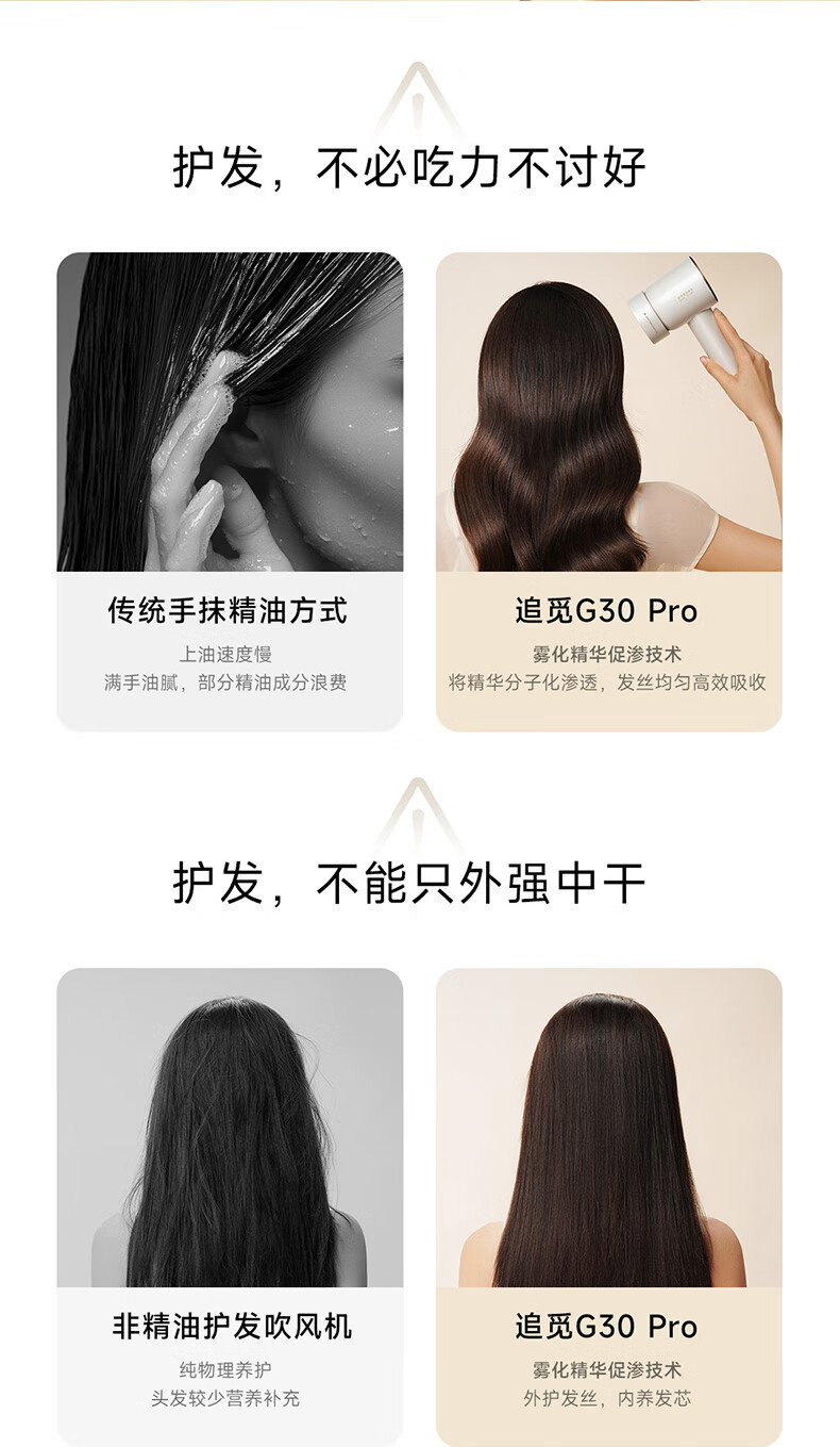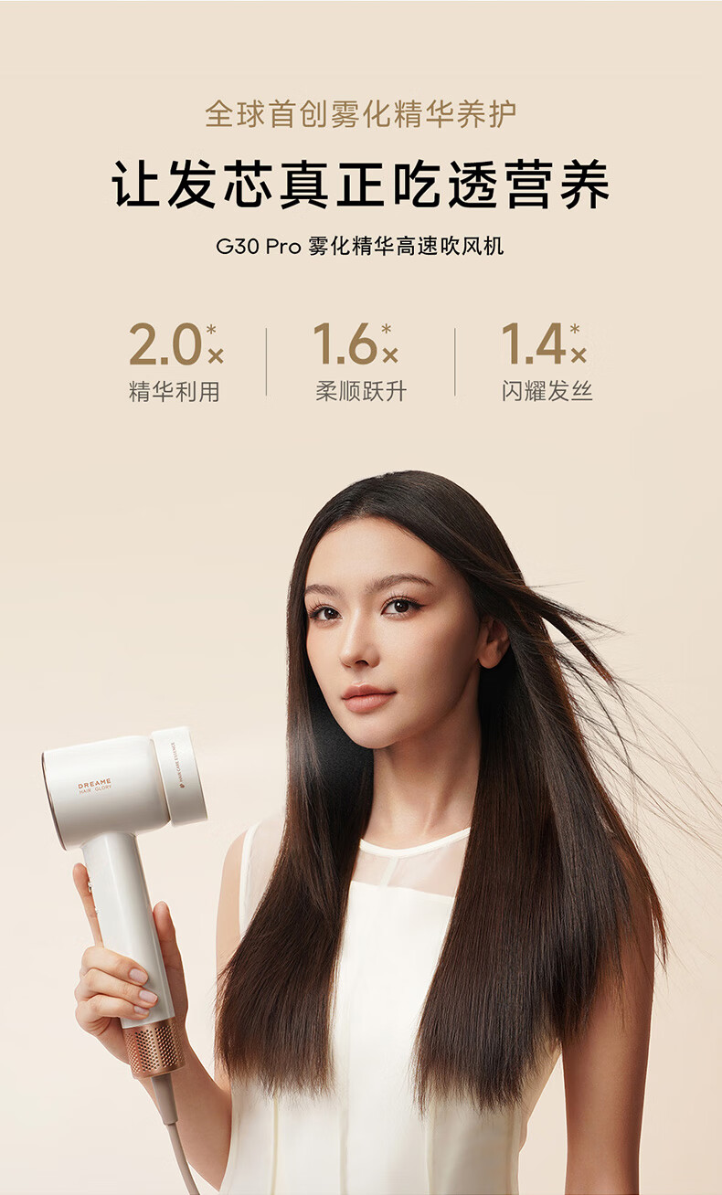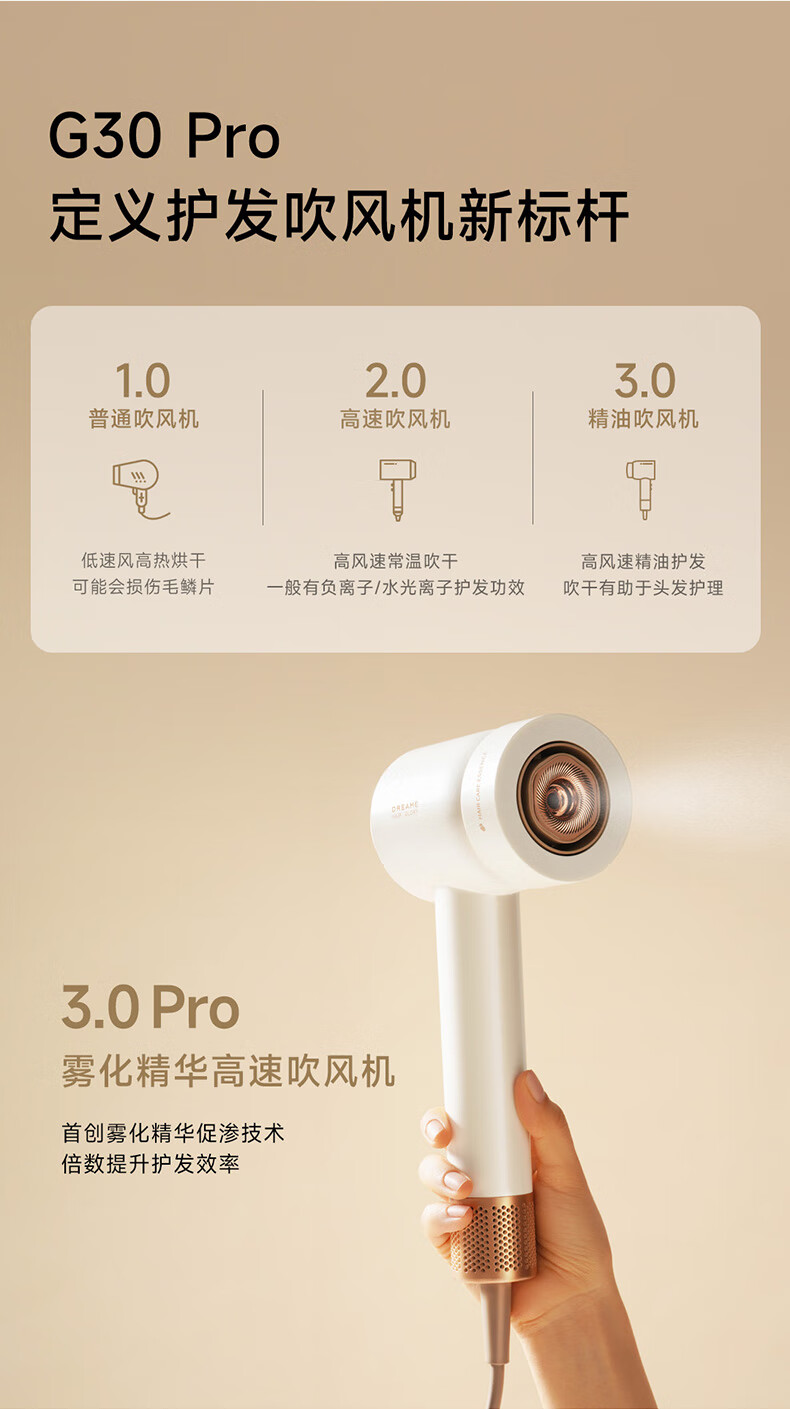 追觅韶光G30 PRO吹风机家用 大功率负离子吹风筒 精华雾化护发电吹风礼盒 浮光白AHD19 情人节送礼礼物