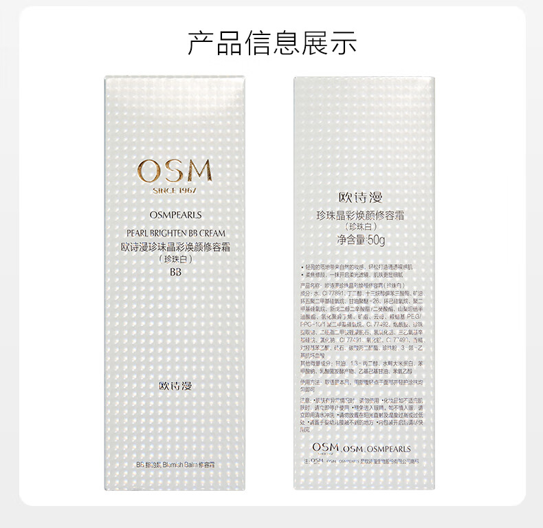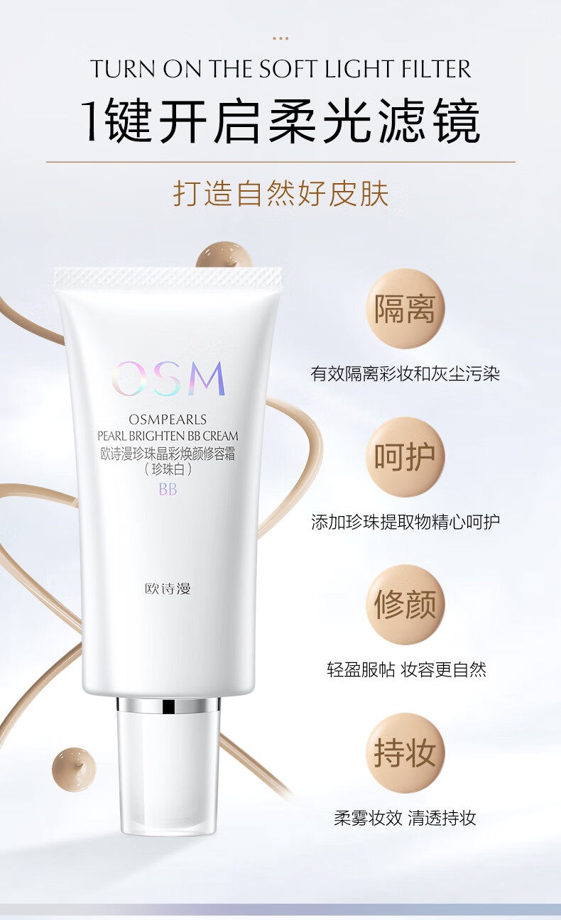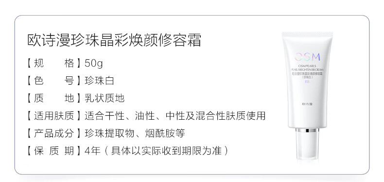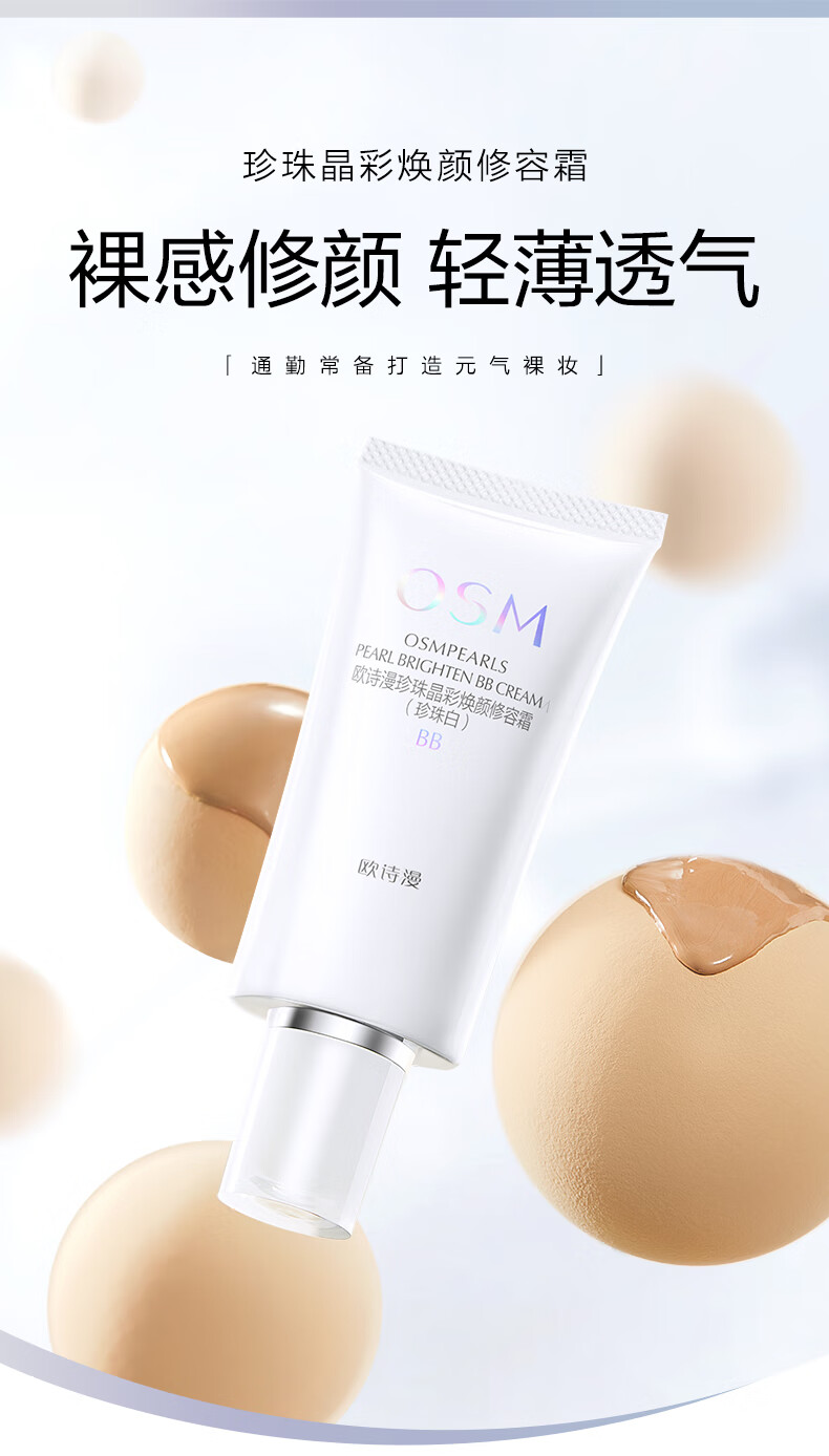 欧诗漫(OSM)珍珠晶彩焕颜修容BB霜50g保湿遮瑕持久裸妆提亮隔离霜新年礼物