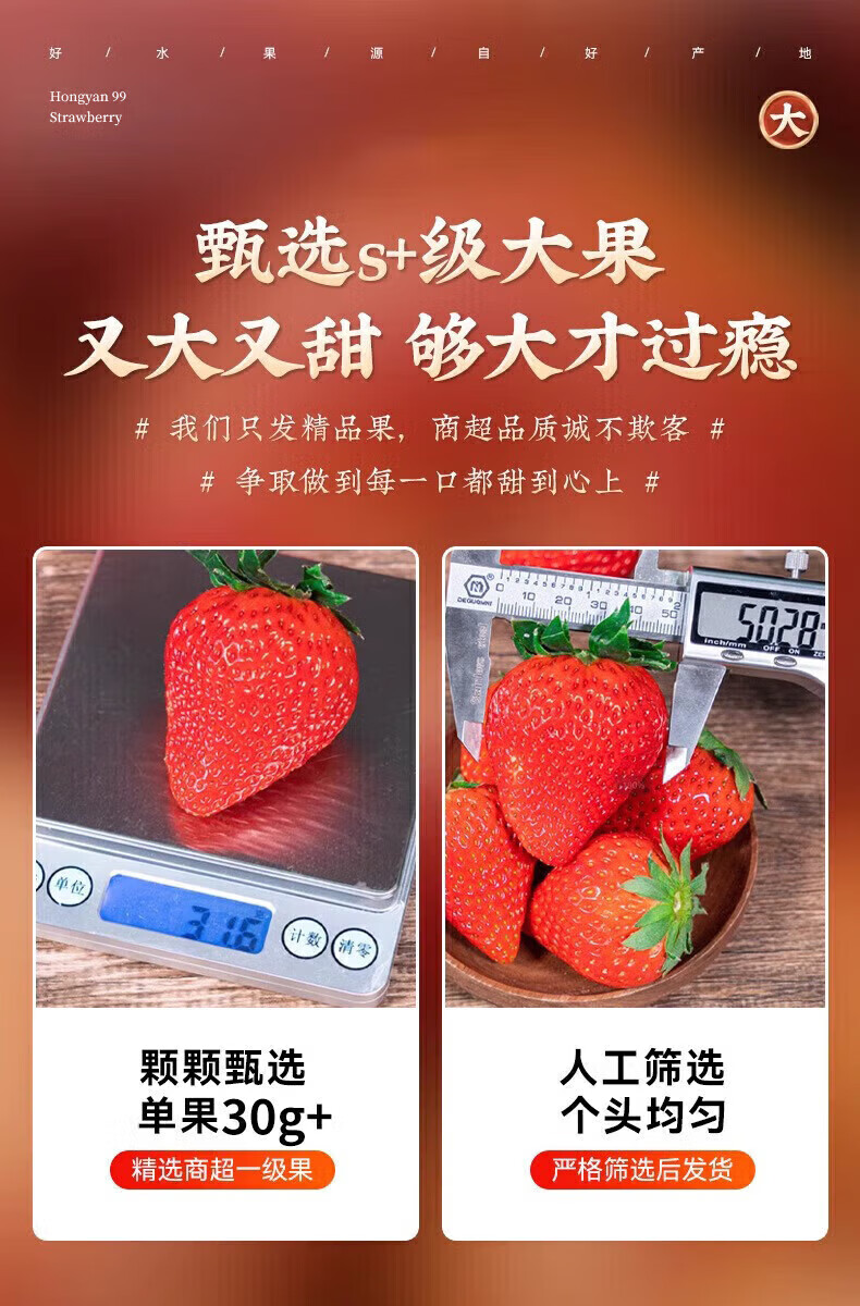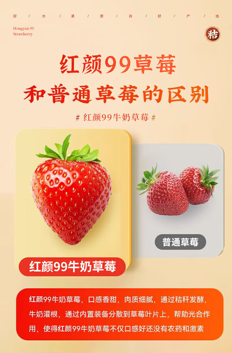 蒲恋大凉山红颜奶油草莓【多地次日达】非丹东99草莓新鲜水果礼盒礼品 S+精品好货【商超级品质】 【高性价比】2盒优选礼盒净重500g