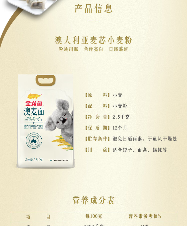 金龙鱼 面粉 中筋粉 澳大利亚麦芯粉5斤 100%进口小麦