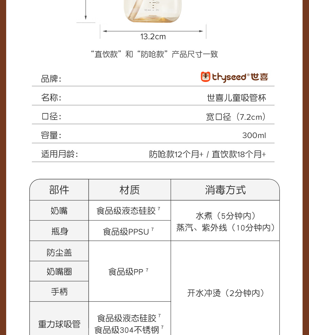 世喜直饮吸管杯儿童吸管杯直饮奶瓶1~3岁PPSU牛奶杯儿童水杯 【配件】吸管嘴(防呛)