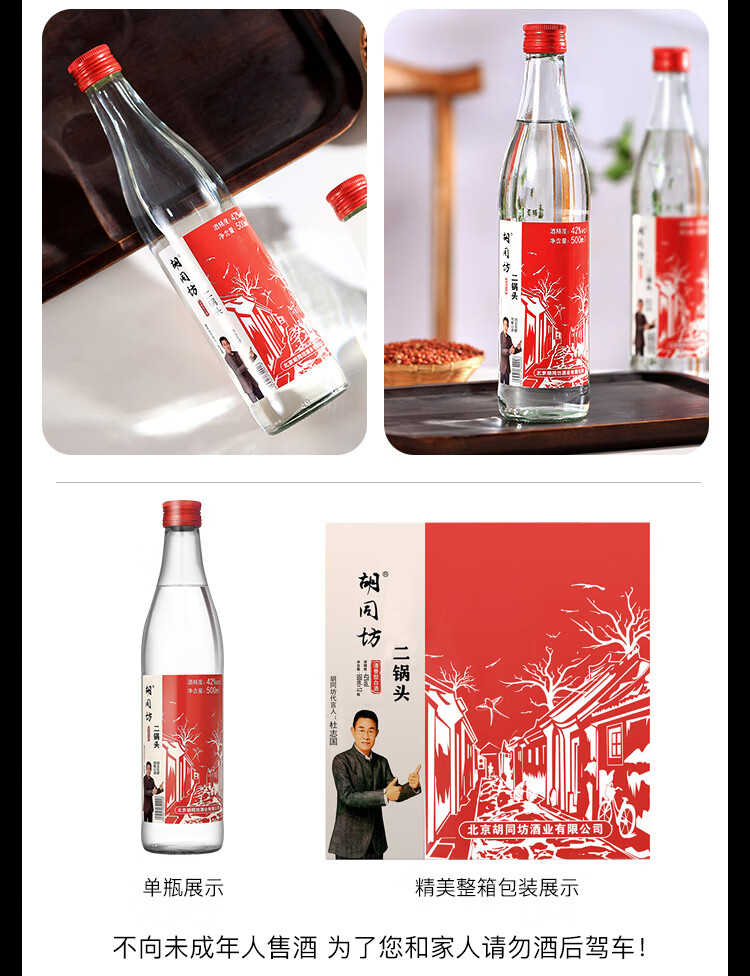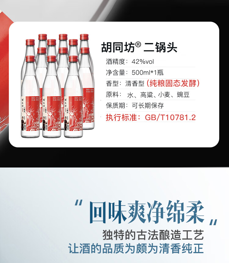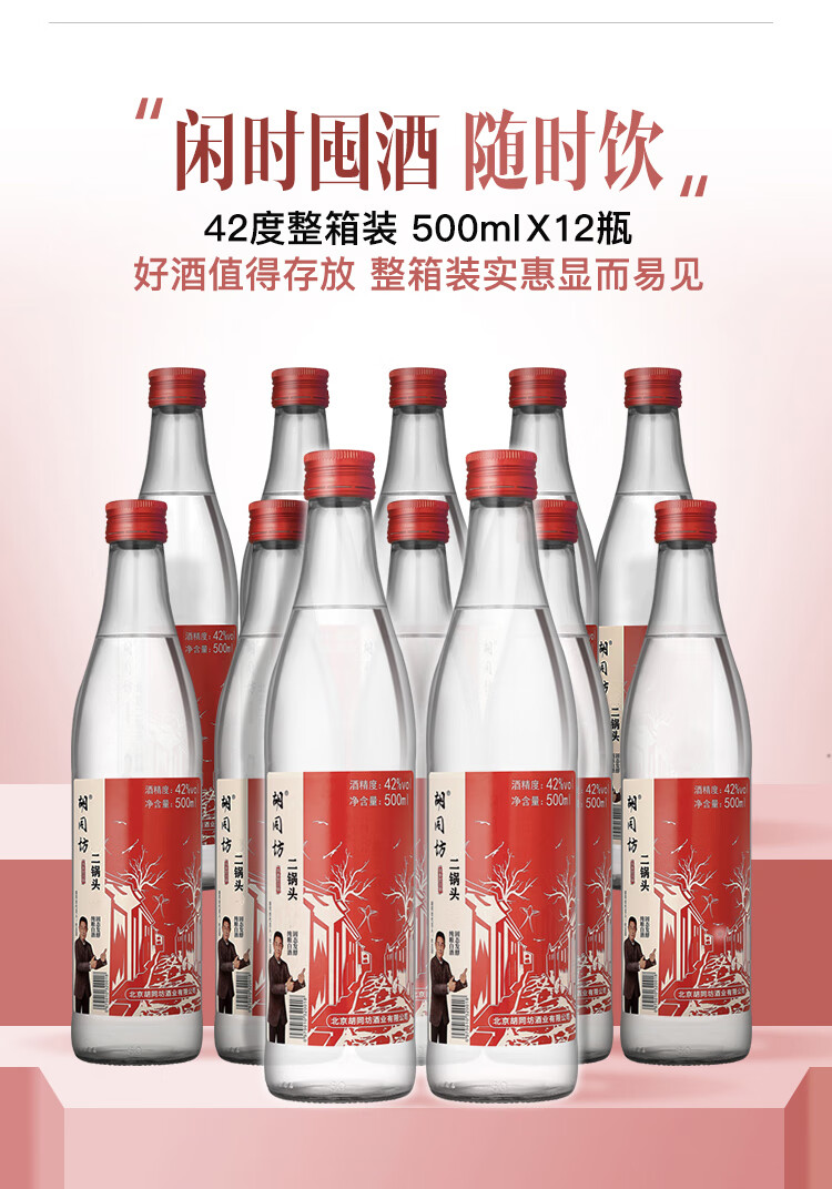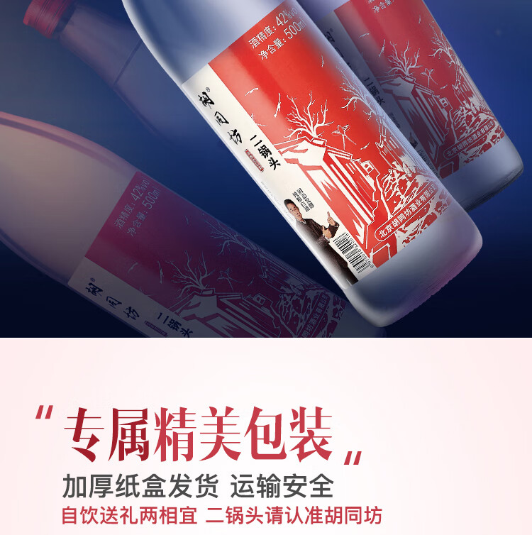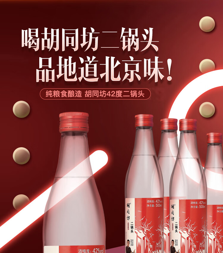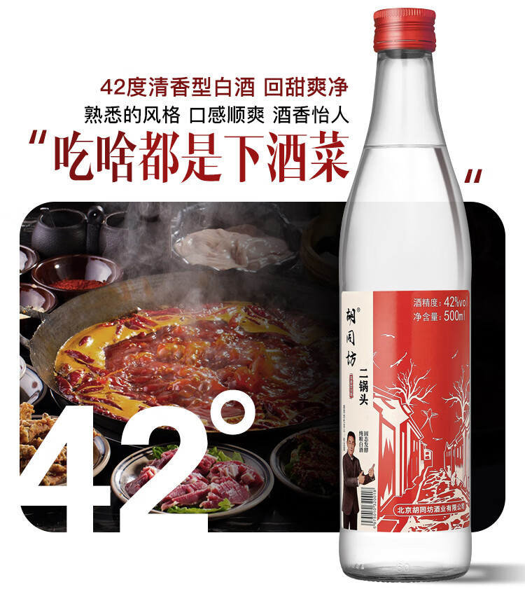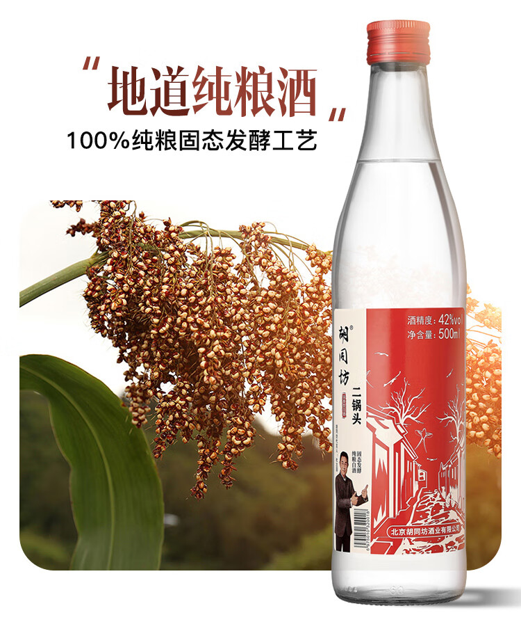 胡同坊 红标北京二锅头 清香型白酒 42度 500ml 单瓶装 热销