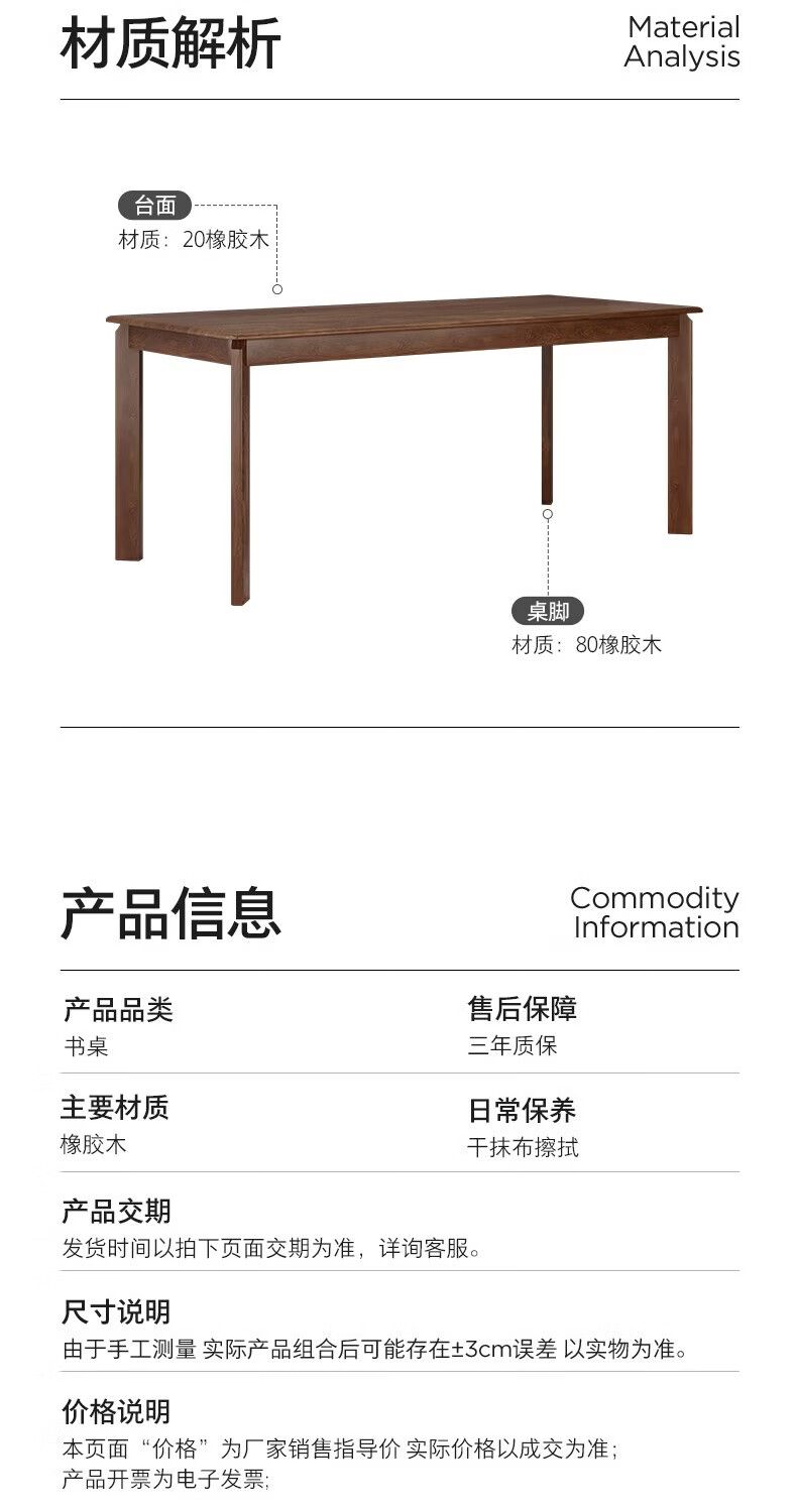 顾家家居实木书桌家用电脑桌学习桌书房办公桌书架一体组合写字桌工作台 【精选橡胶木】胡桃木色单桌140CM 【送货上门包安装】