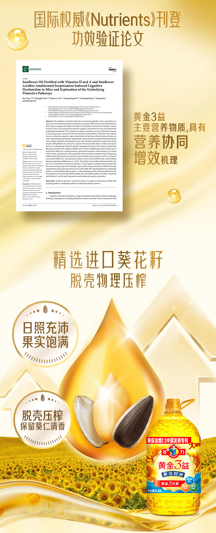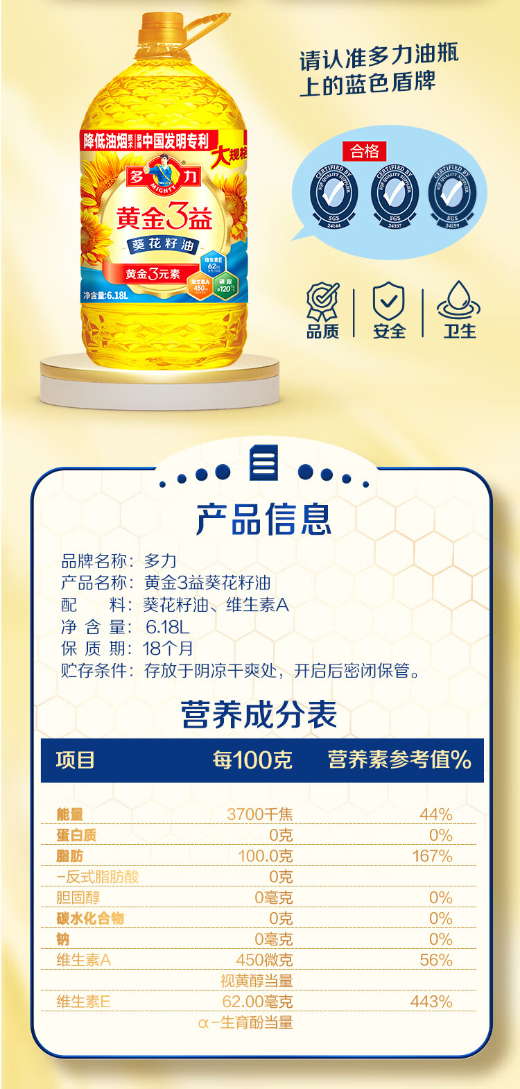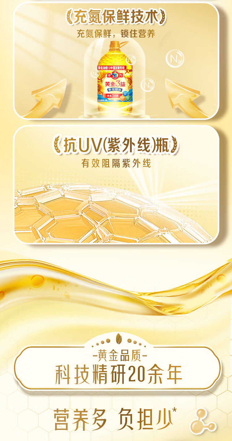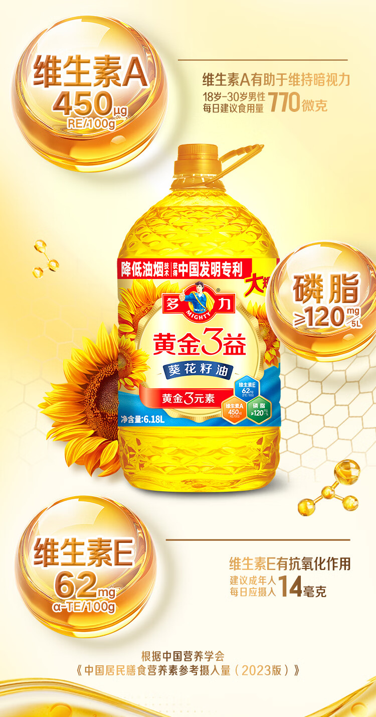 多力黄金3益压榨葵花籽油6.18L家宴大规格食用油年货热卖送礼佳品