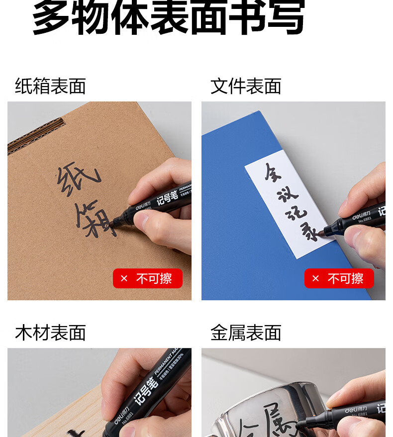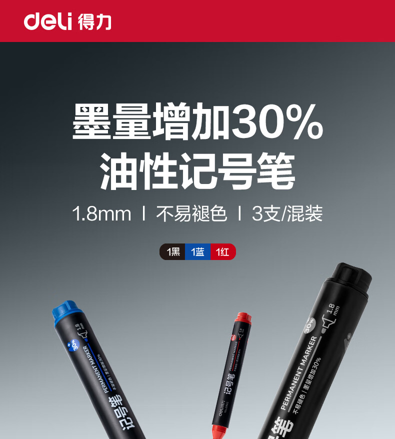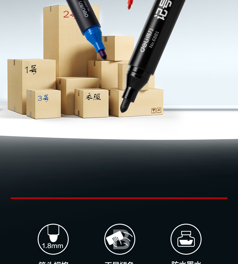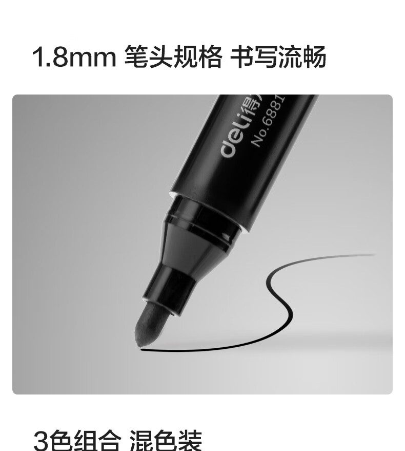 得力(deli)粗头6881记号笔 油性大头物流家庭快递签字办公文具马克笔记号笔 混色3支/盒 SK150