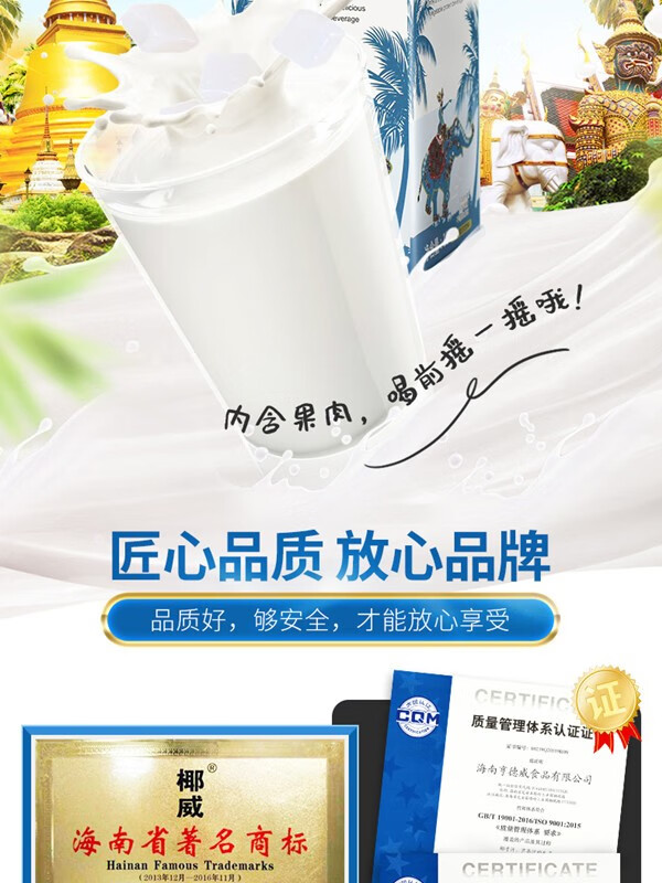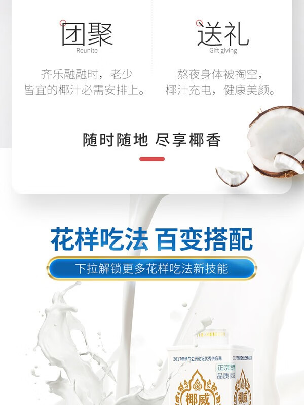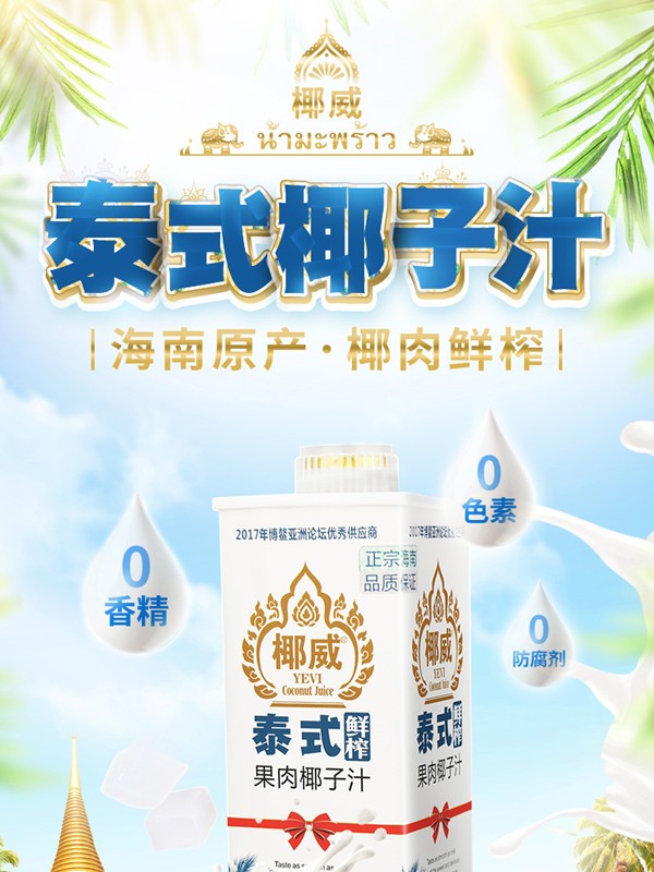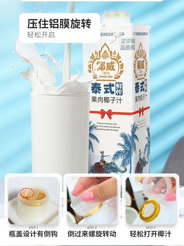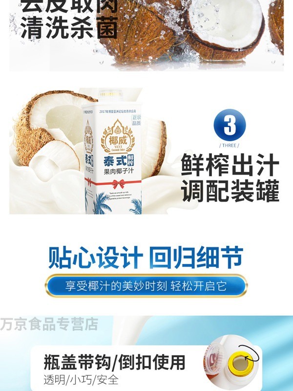 椰威 正宗海南原产 泰式鲜榨 海南椰子汁椰果 果肉椰子汁 鲜椰肉 【喜庆款】鲜榨椰汁1L*6瓶