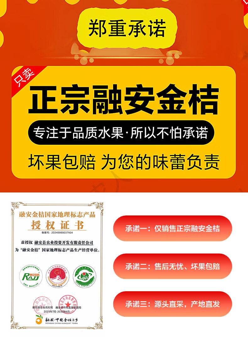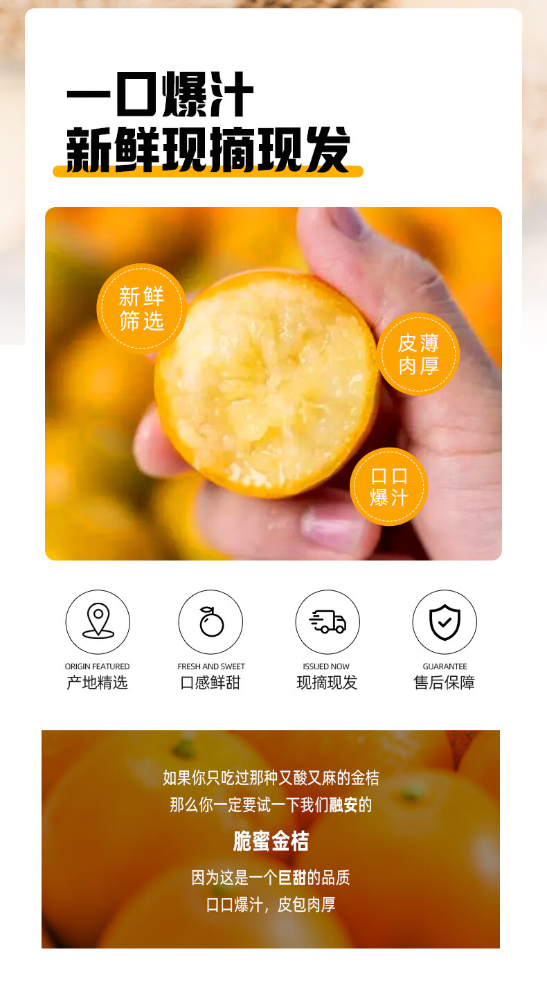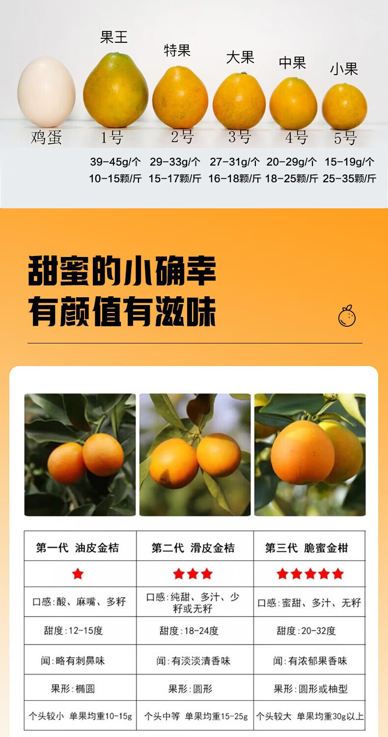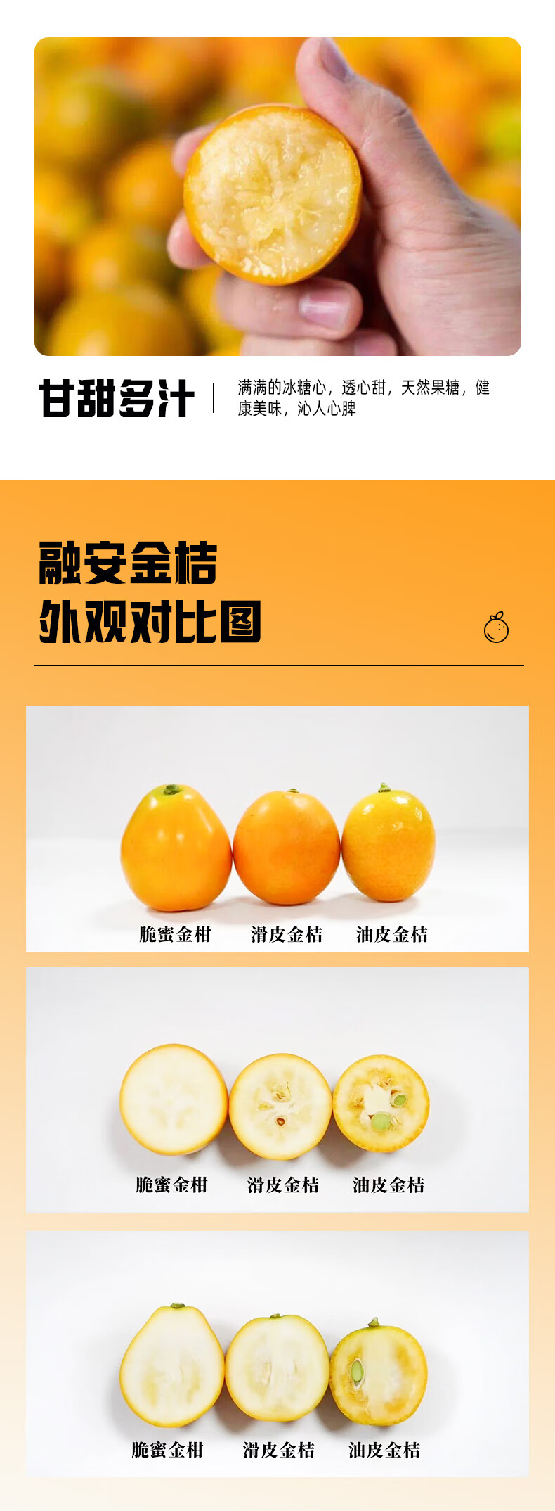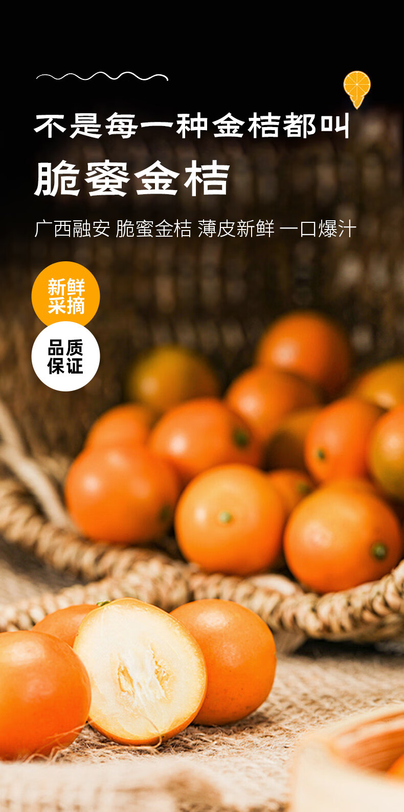 融安金桔旗舰店正宗广西脆蜜金桔第三代脆蜜金柑小金桔子新鲜水果礼盒装 伴手礼盒 滑皮净1.8斤 单果23g+【独立包装】无手提袋