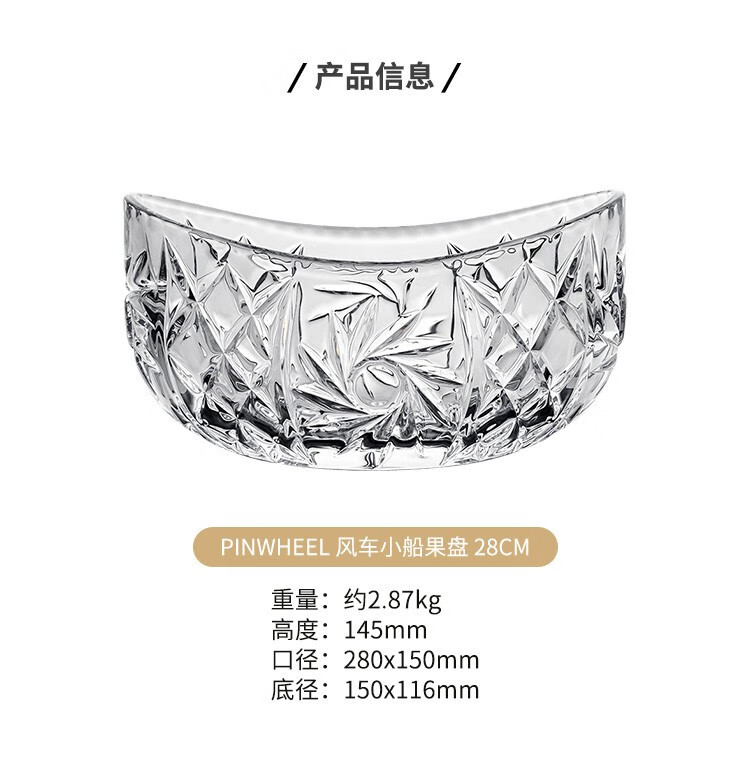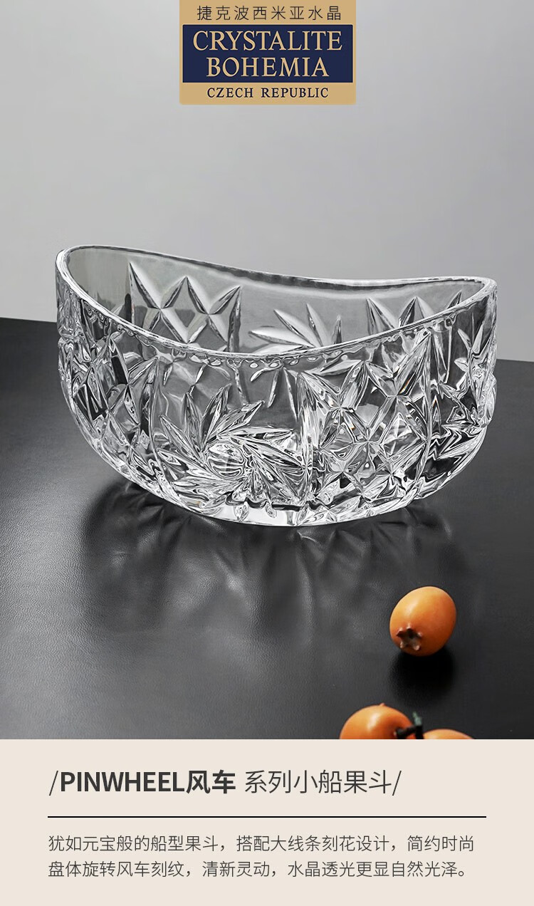 BOHEMIA捷克进口波希米亚水晶玻璃果盘元宝果斗果盆水果盘干果盘 风车小船果斗