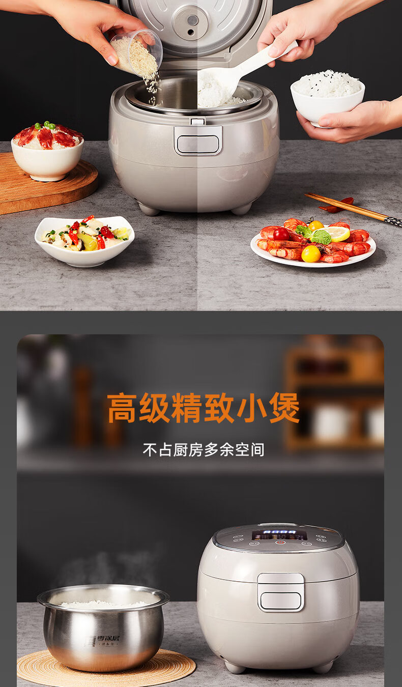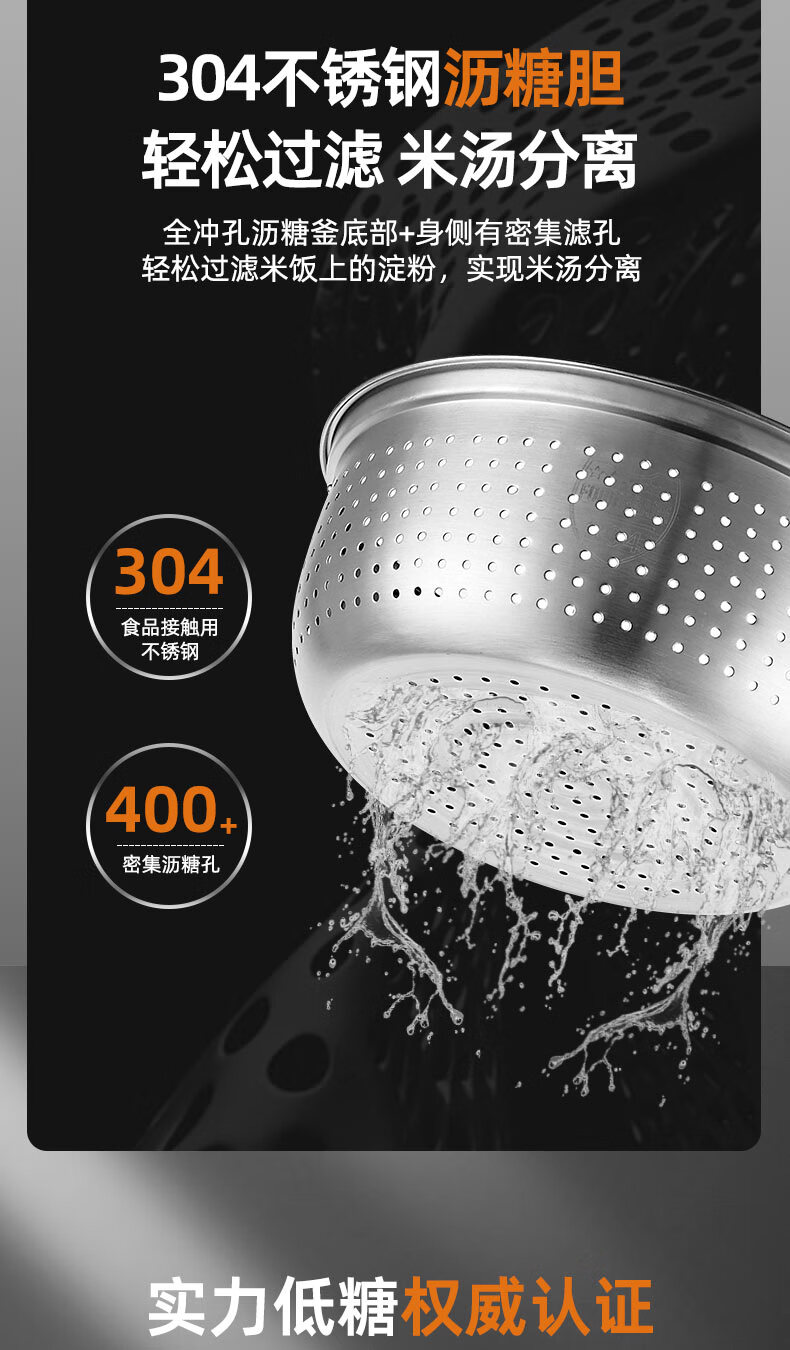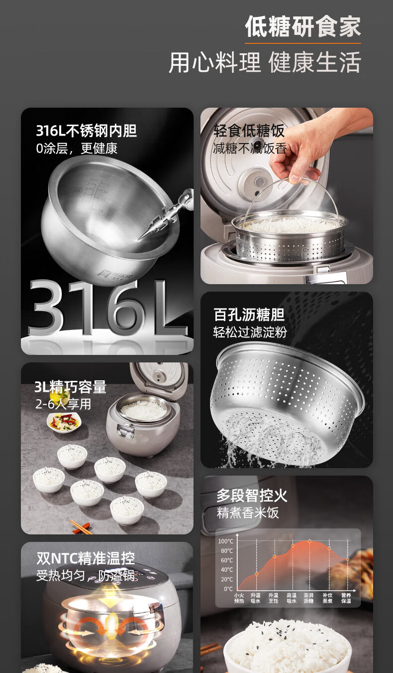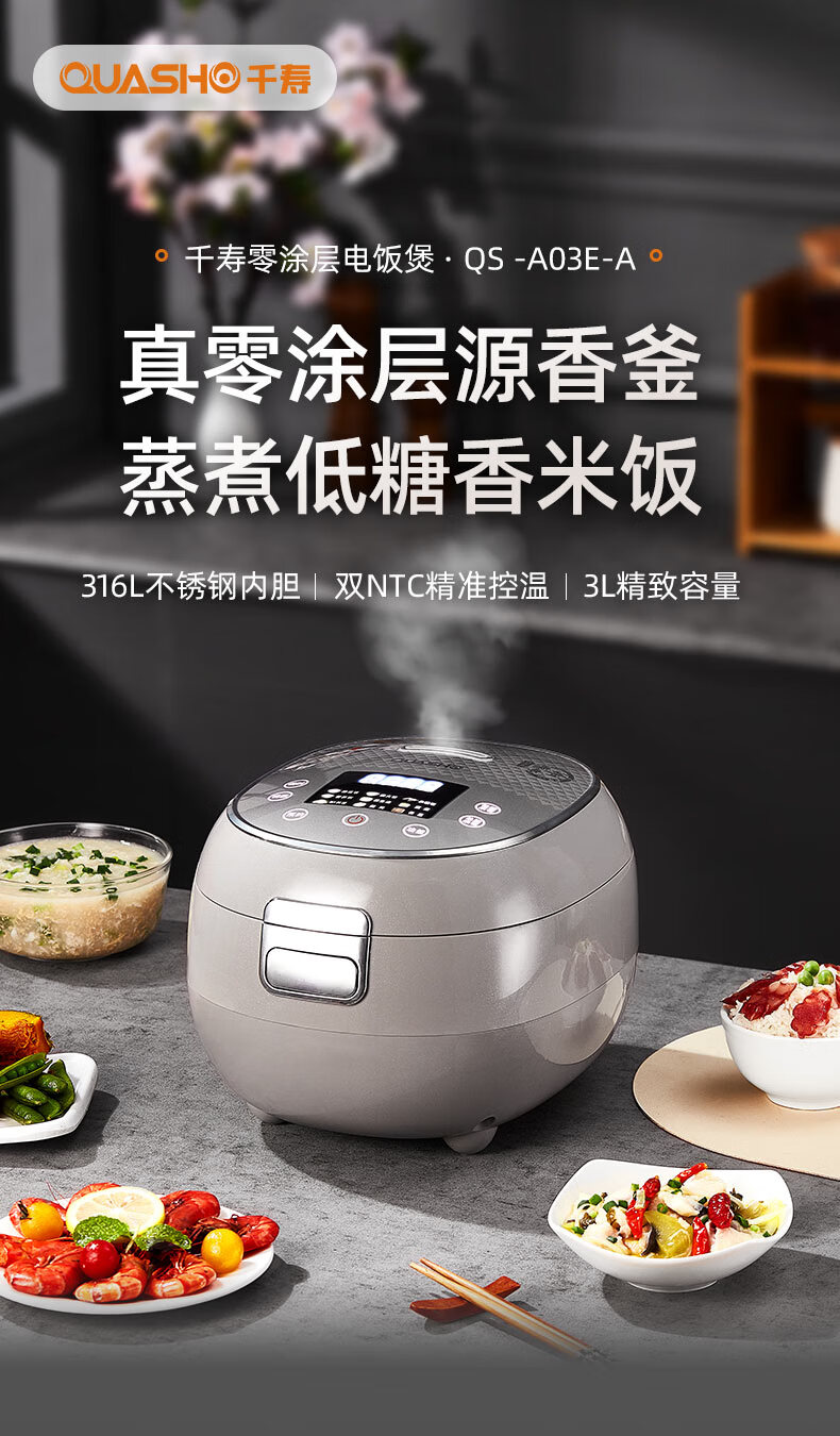千寿QUASH0 低糖电饭煲 0涂层 柴火饭煲316不锈钢球釜内胆 1-2-3-4个人家用3L沥米饭锅控降减糖电饭锅 红色 升级304不锈钢内盖 3L 1-4人适用 【316L球釜内胆】